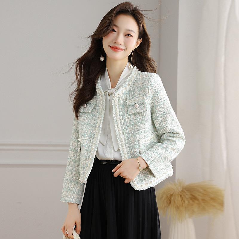 Abrigo corto holgado y ajustado para mujer, elegante, combinable con todo, estilo coreano, otoño e invierno de 2024, con cuello redondo