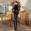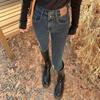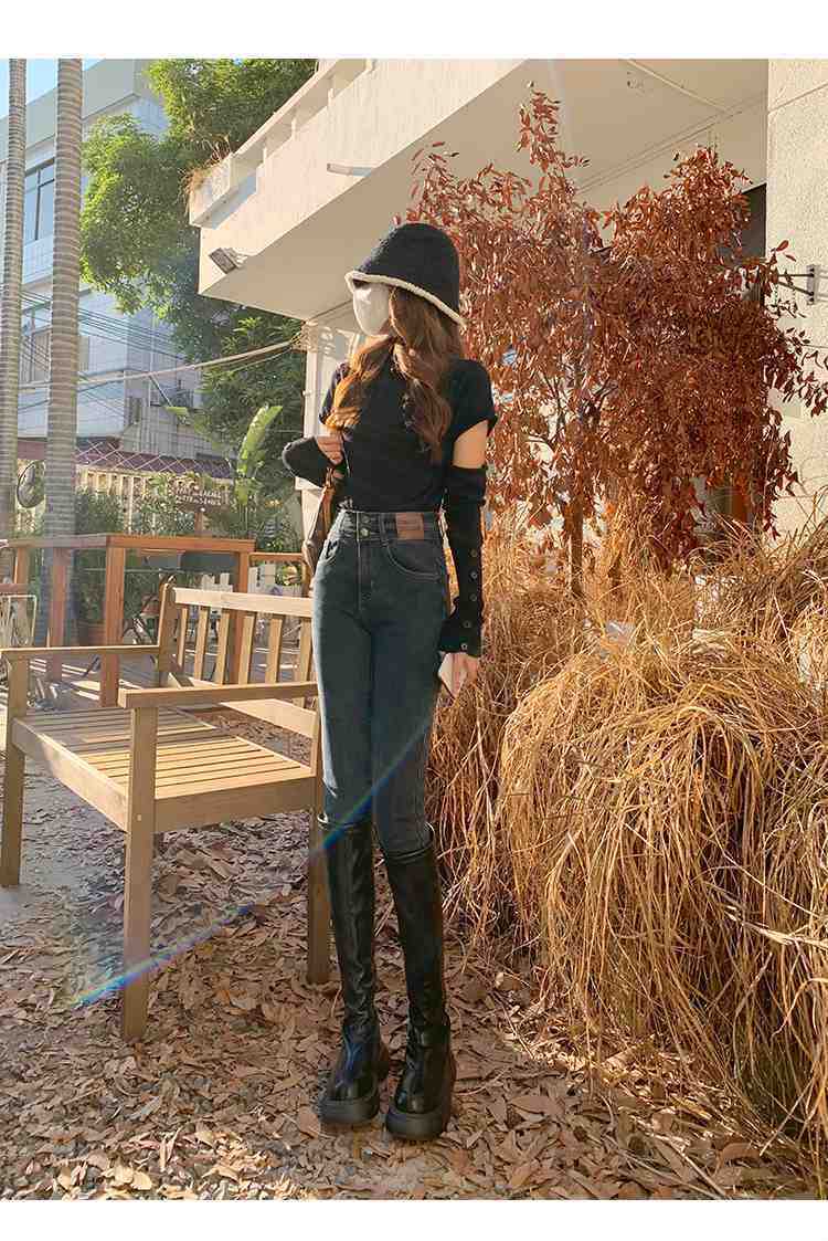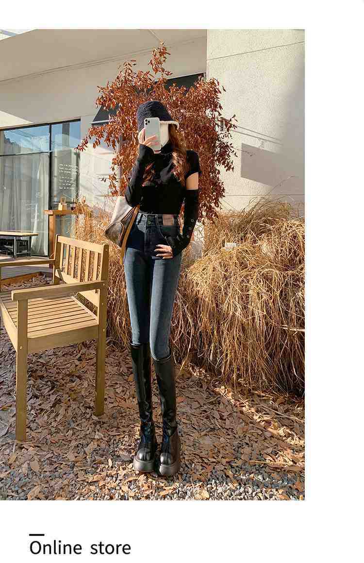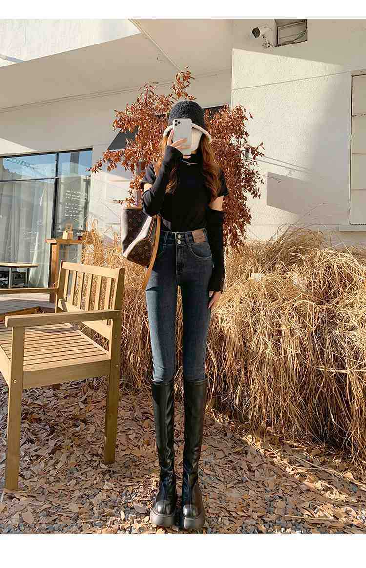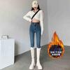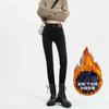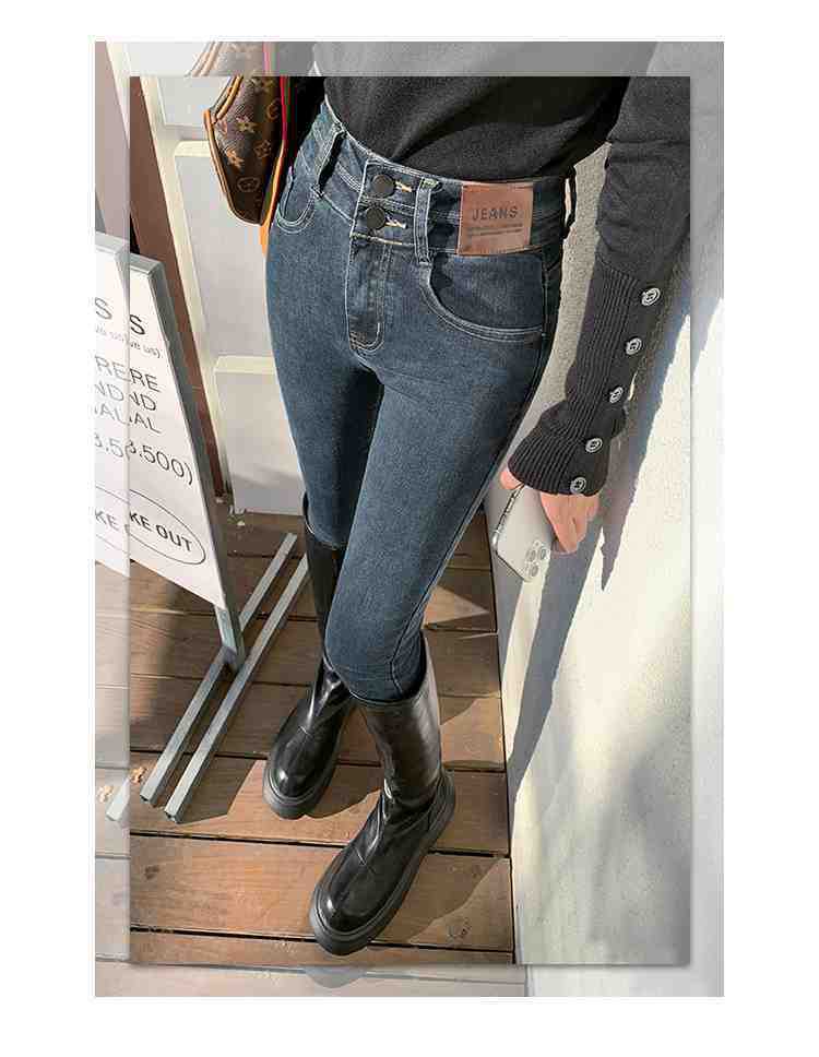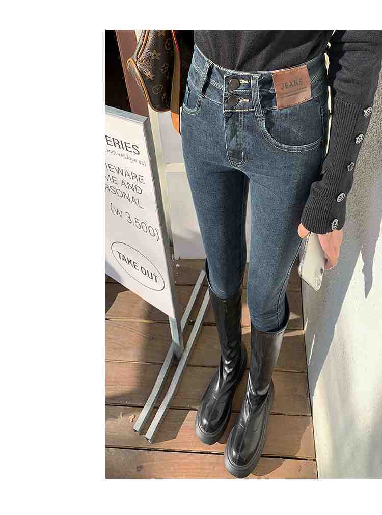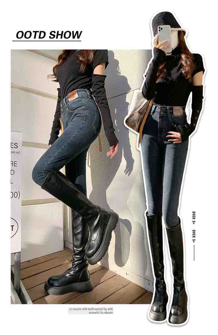 Vaqueros ajustados de cintura alta con forro polar para mujer, otoño e invierno 2023, nuevos pantalones pitillo ajustados elásticos en azul y gris.