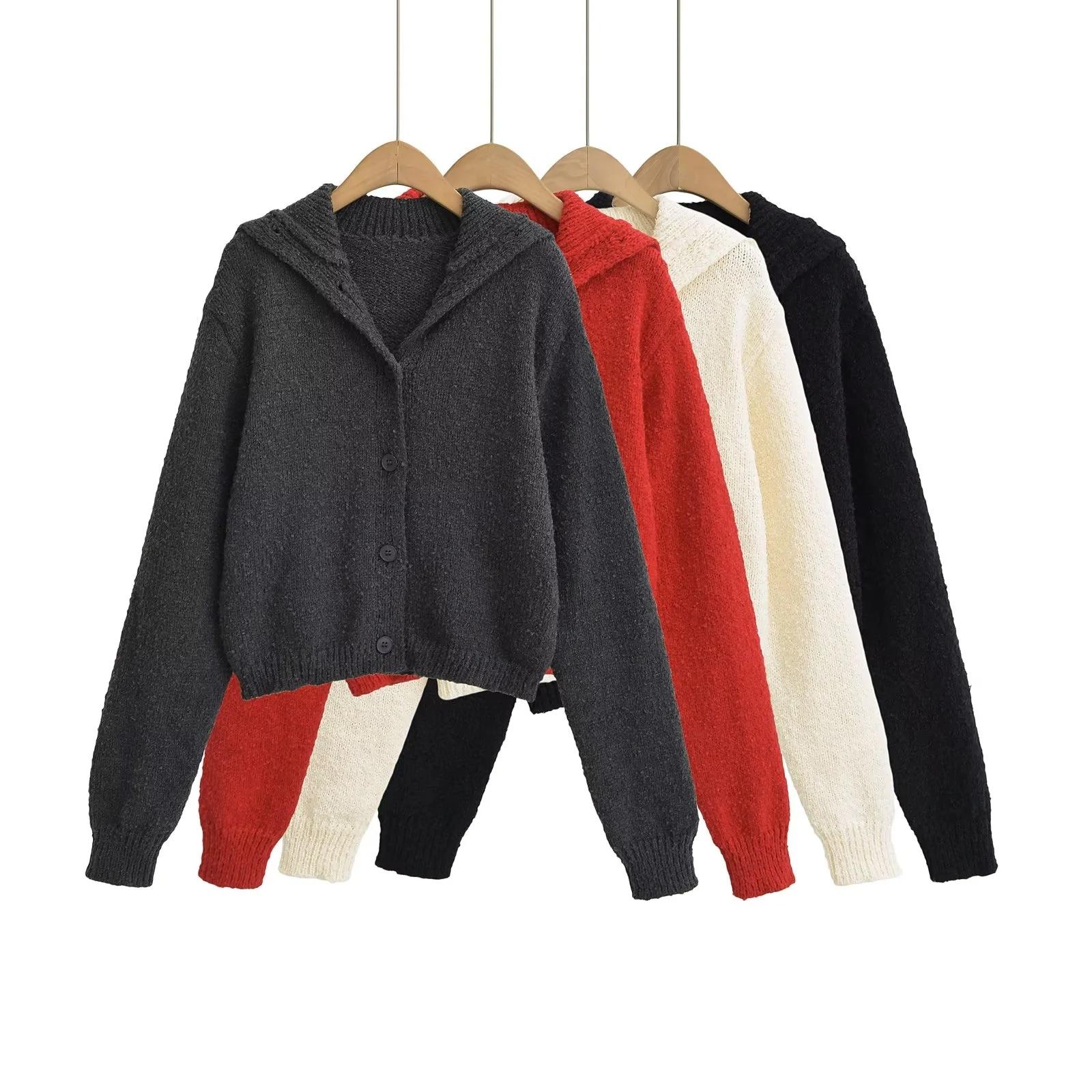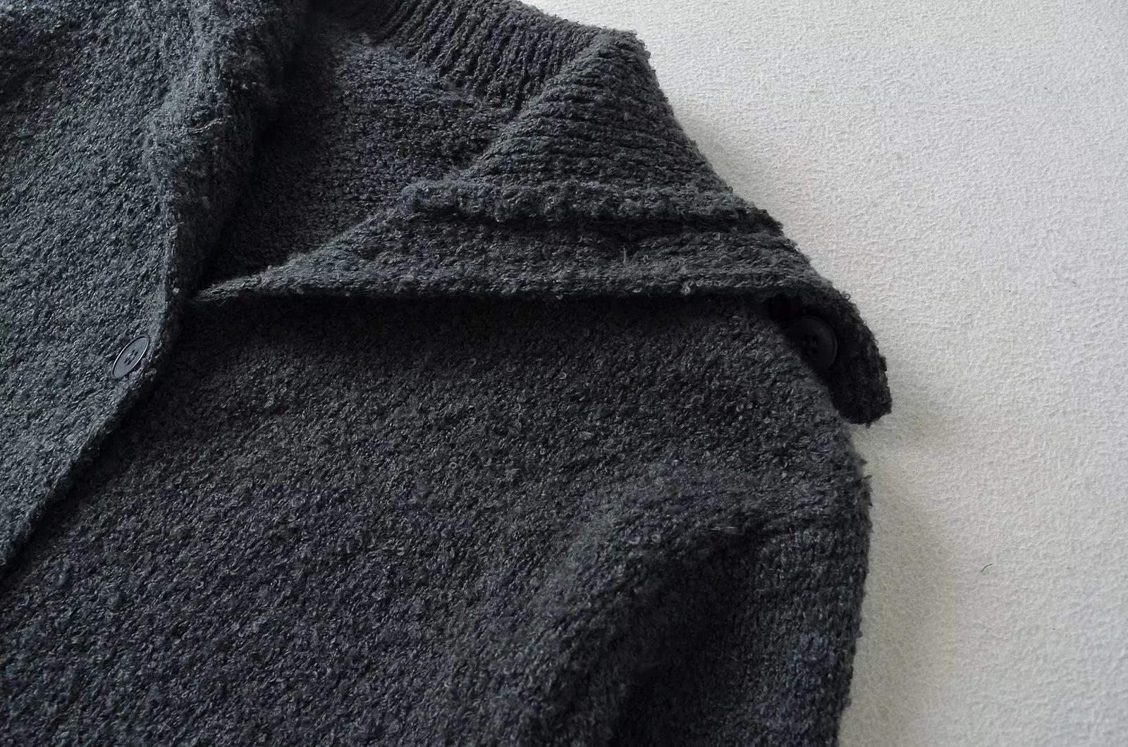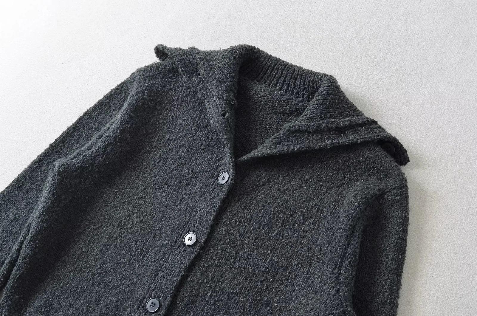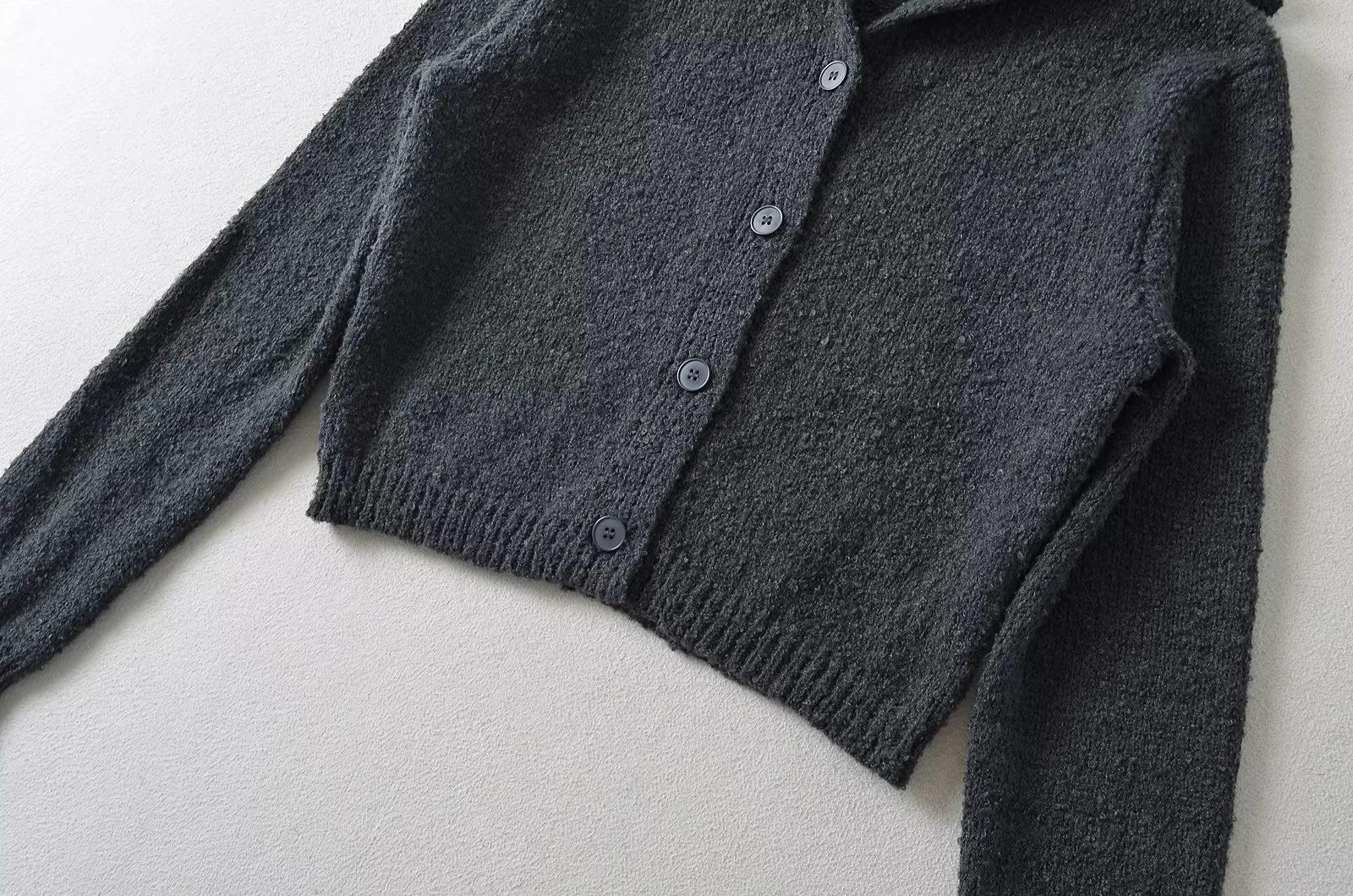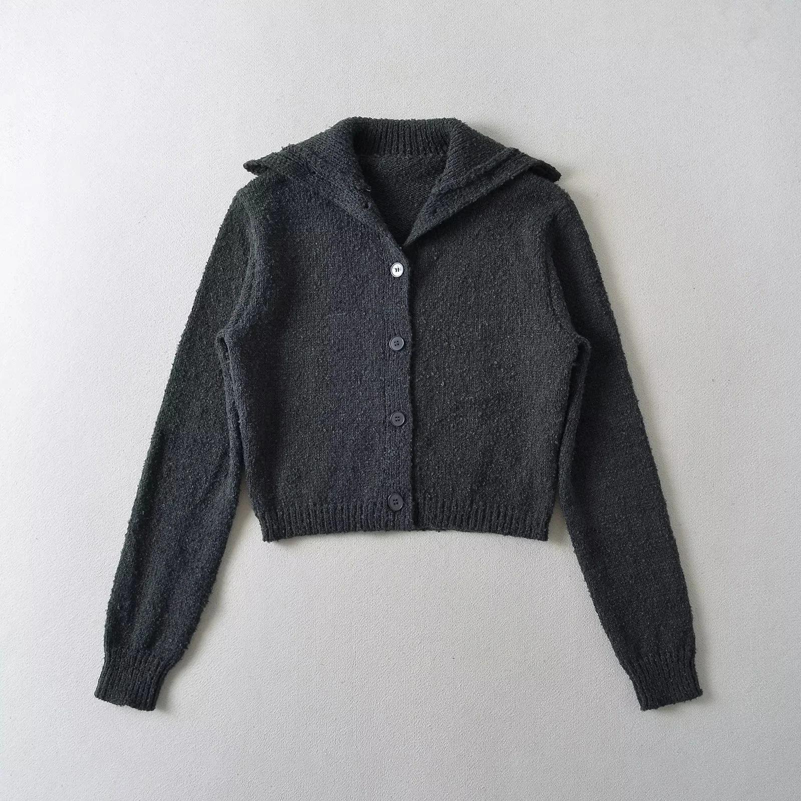 Suéter de punto corto informal de estilo holgado con solapa grande y botonadura sencilla para mujer, otoño e invierno, 24 unidades