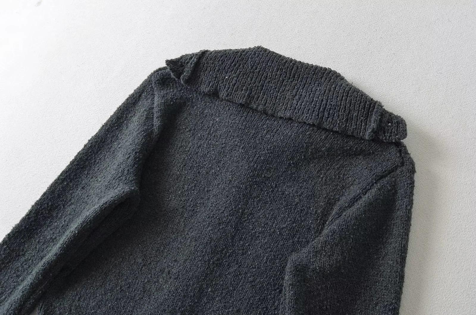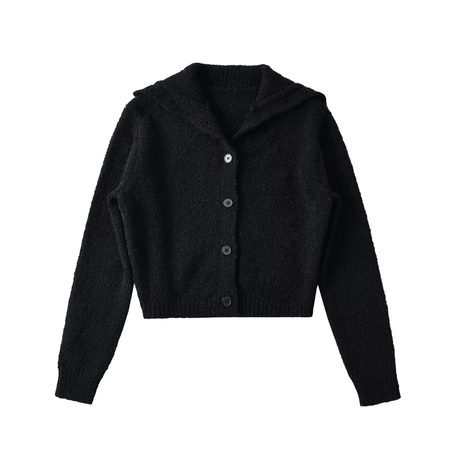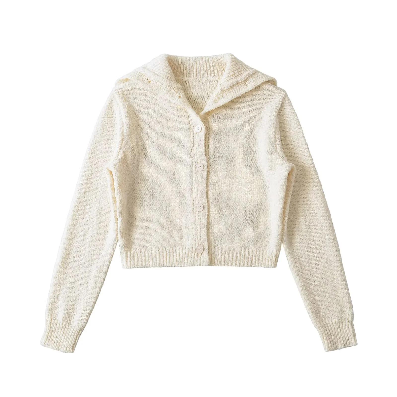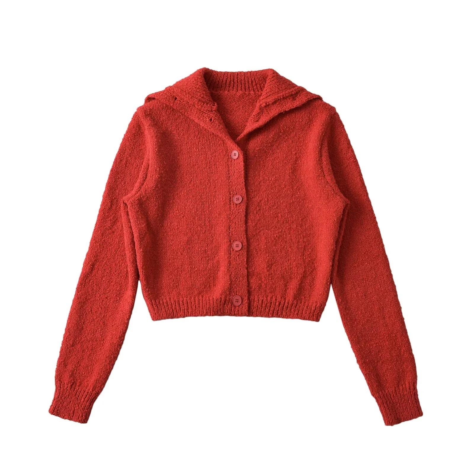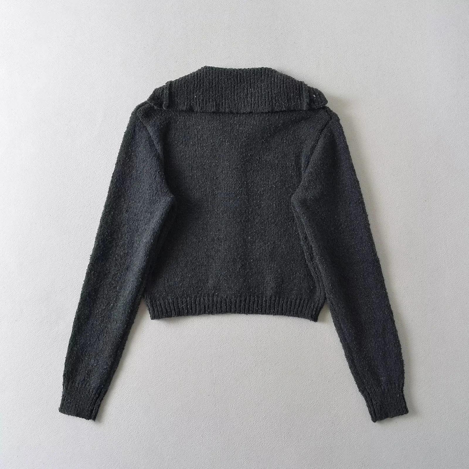 Suéter de punto corto informal de estilo holgado con solapa grande y botonadura sencilla para mujer, otoño e invierno, 24 unidades
