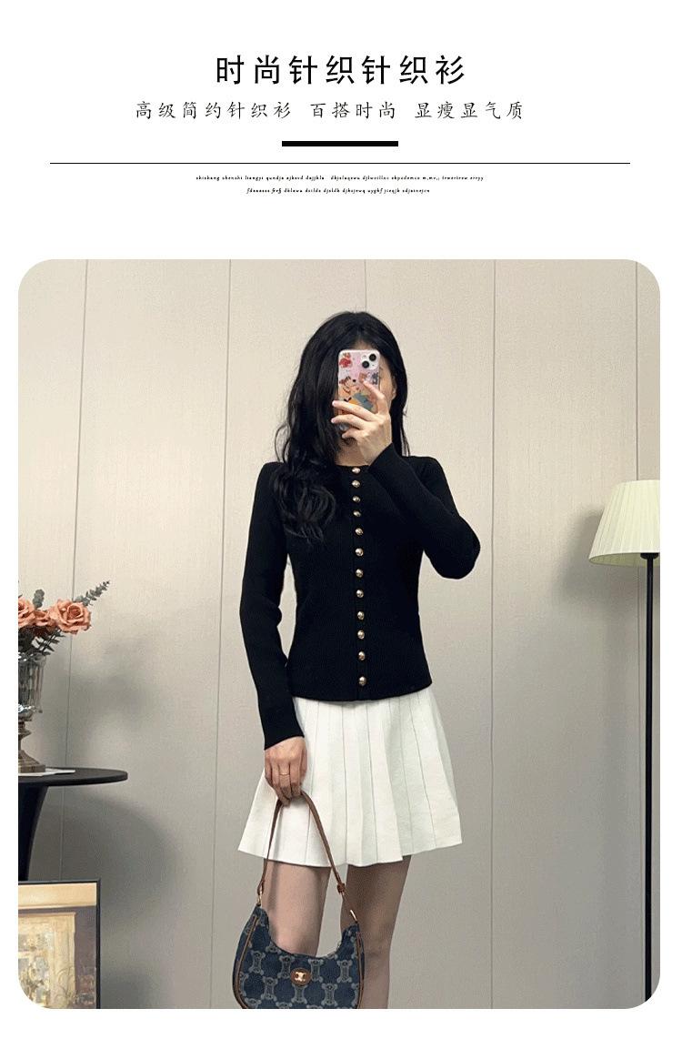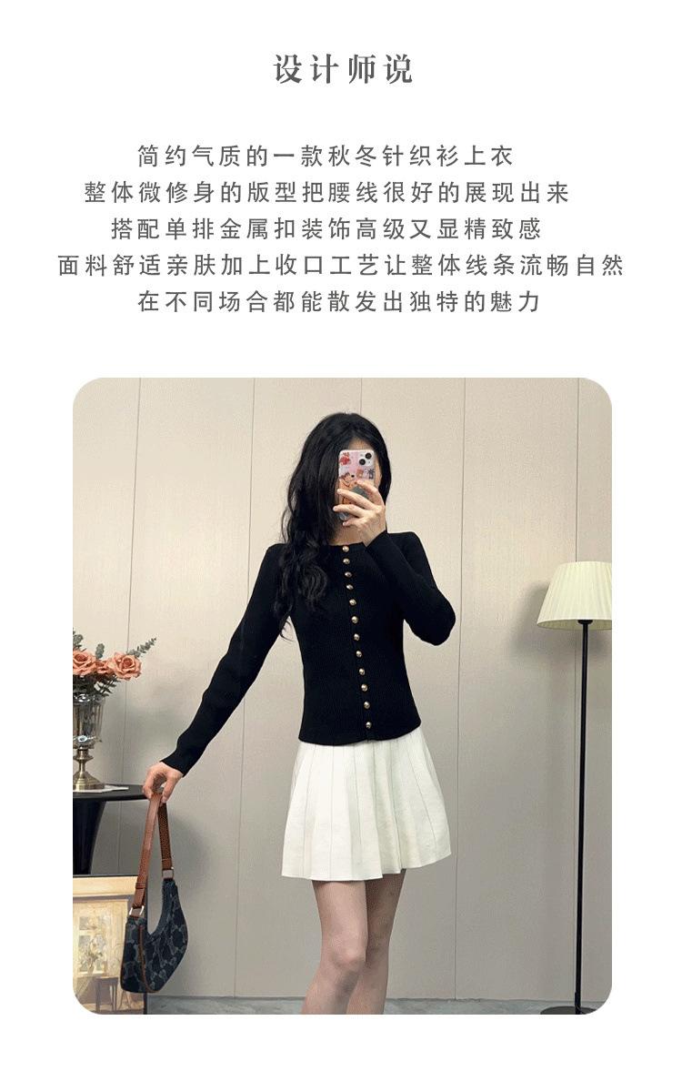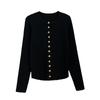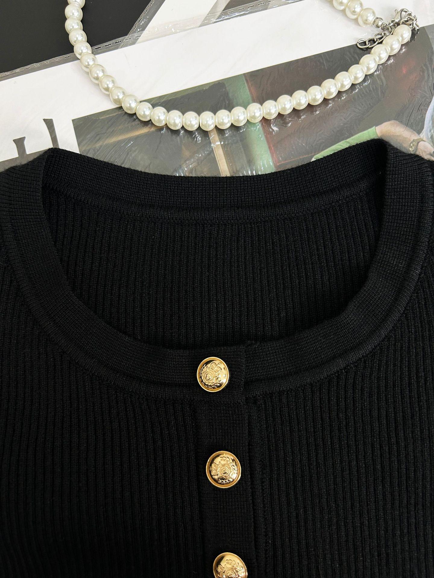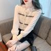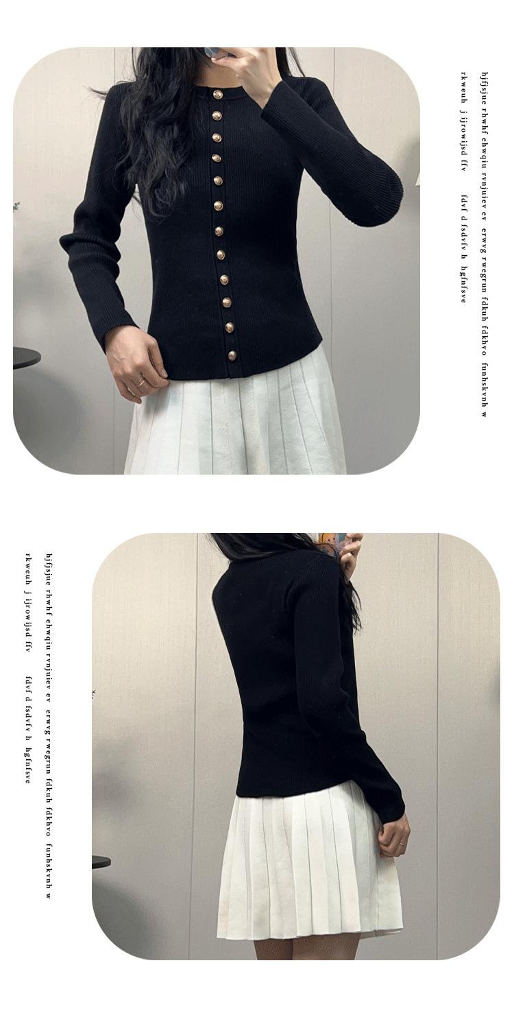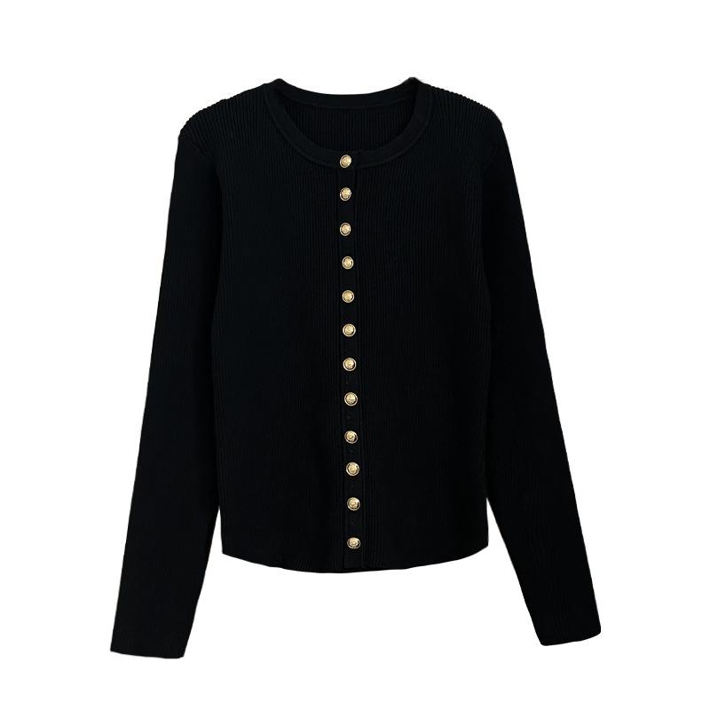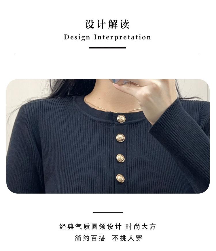 Primavera Nueva Moda Hebilla Metálica Cuello Redondo Tejido de Punto 2025 Top Versátil de Manga Larga para Mujer de Alta Gama