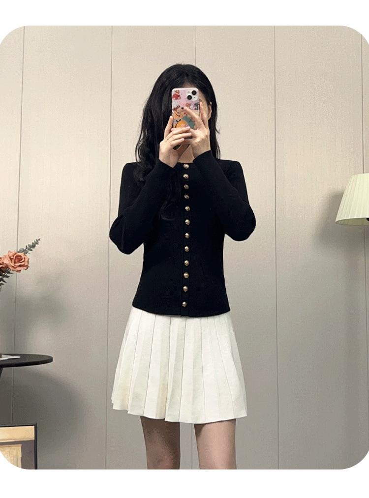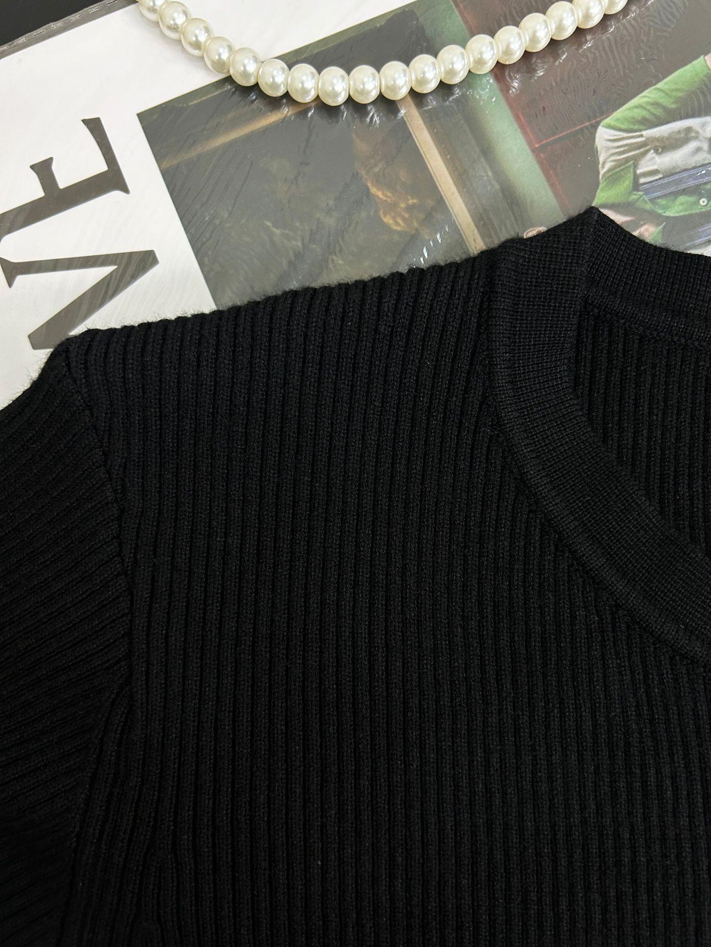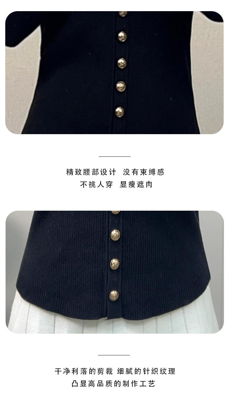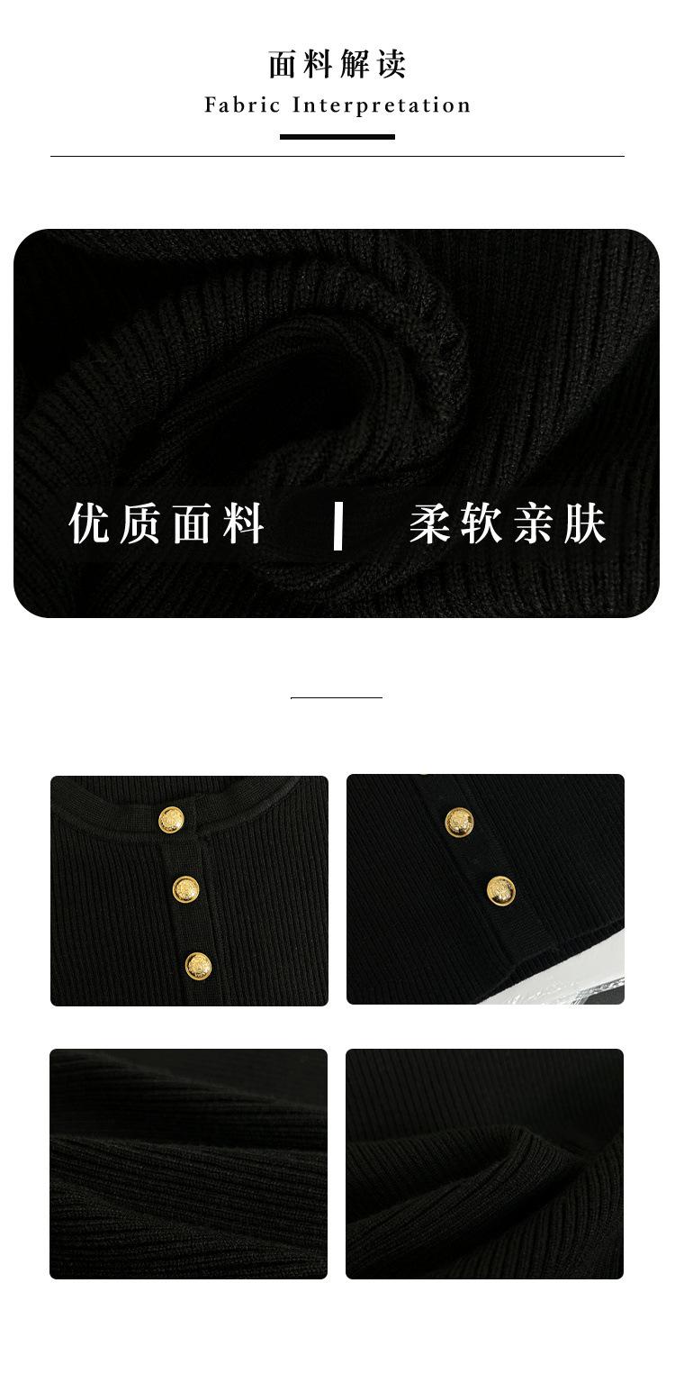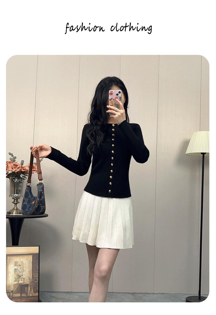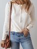 Primavera Nueva Moda Hebilla Metálica Cuello Redondo Tejido de Punto 2025 Top Versátil de Manga Larga para Mujer de Alta Gama