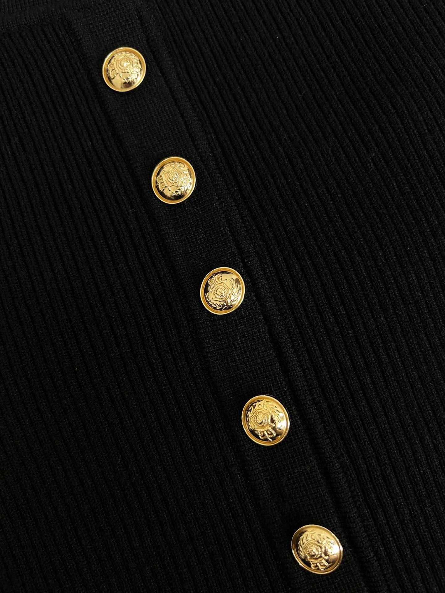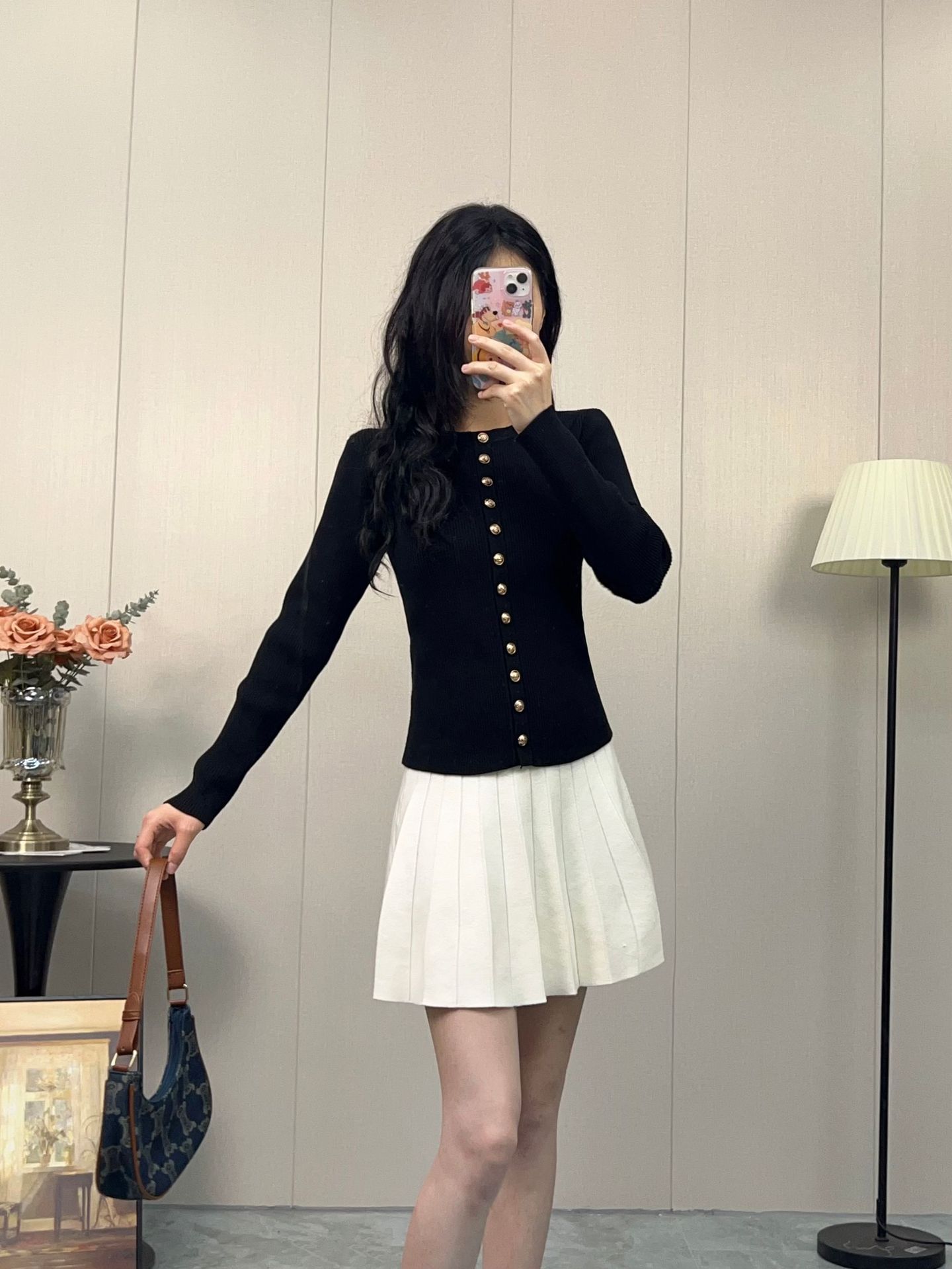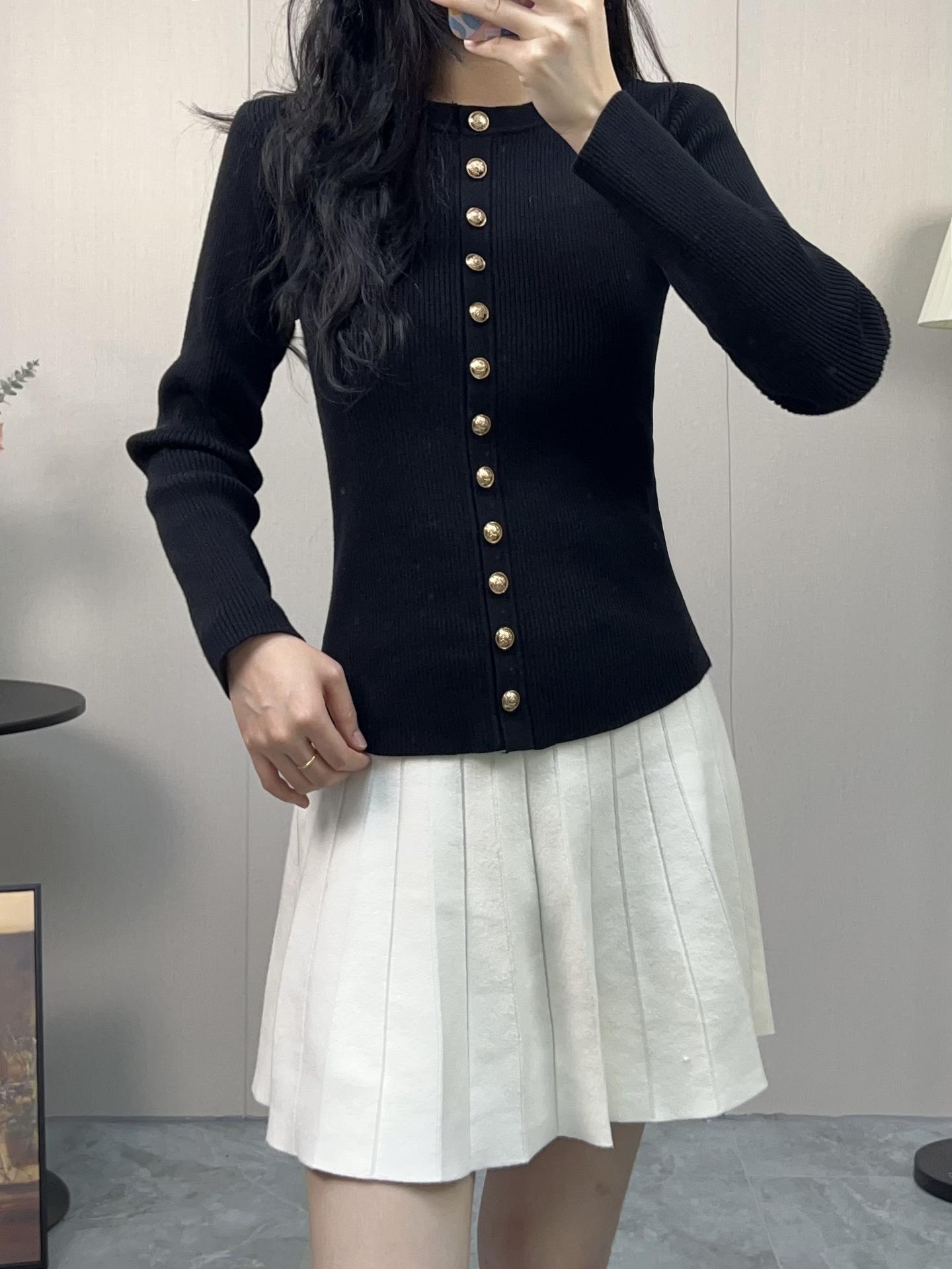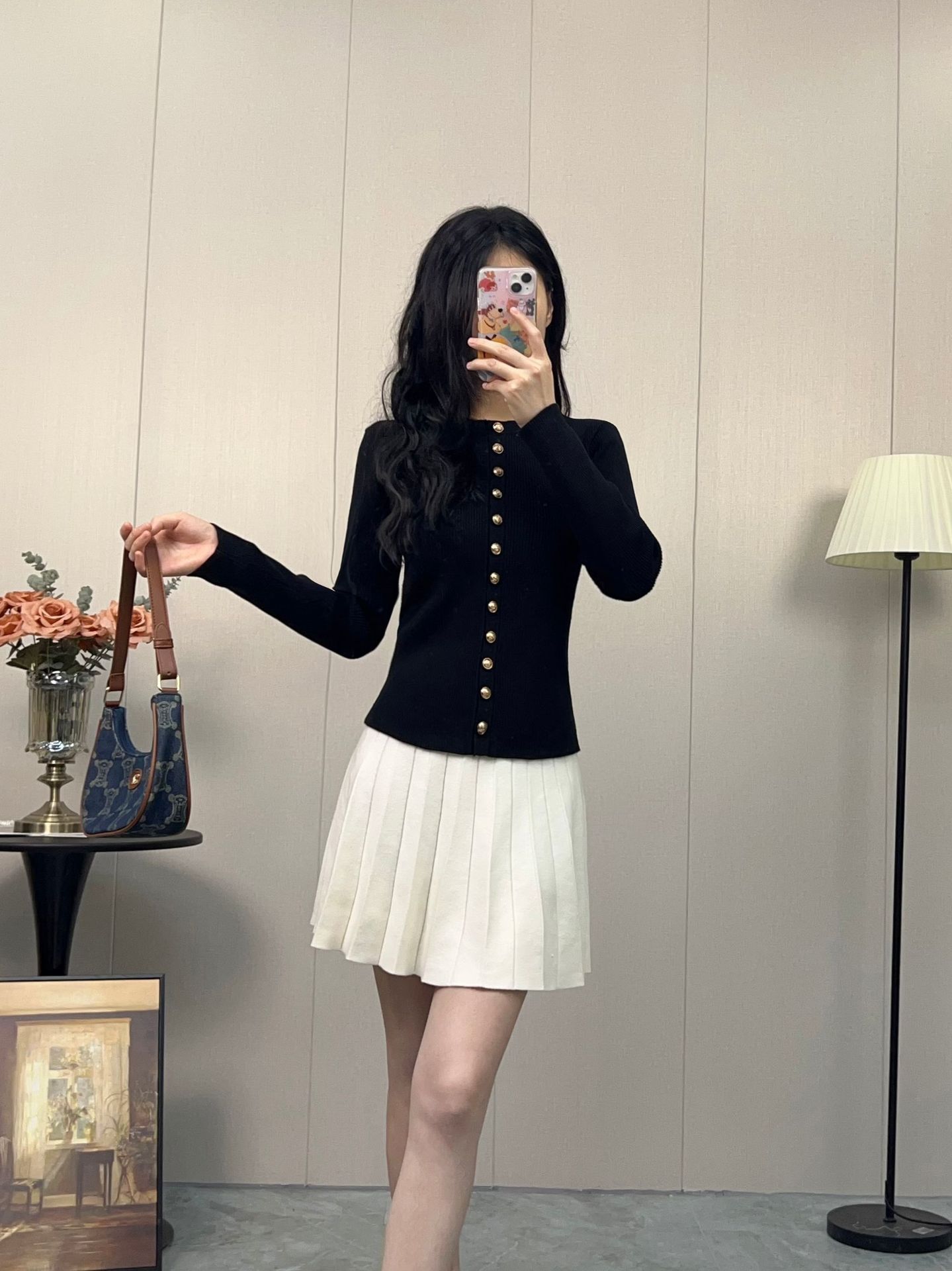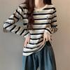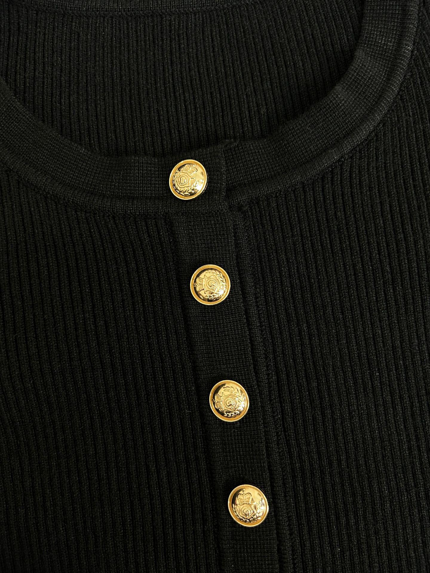 Primavera Nueva Moda Hebilla Metálica Cuello Redondo Tejido de Punto 2025 Top Versátil de Manga Larga para Mujer de Alta Gama