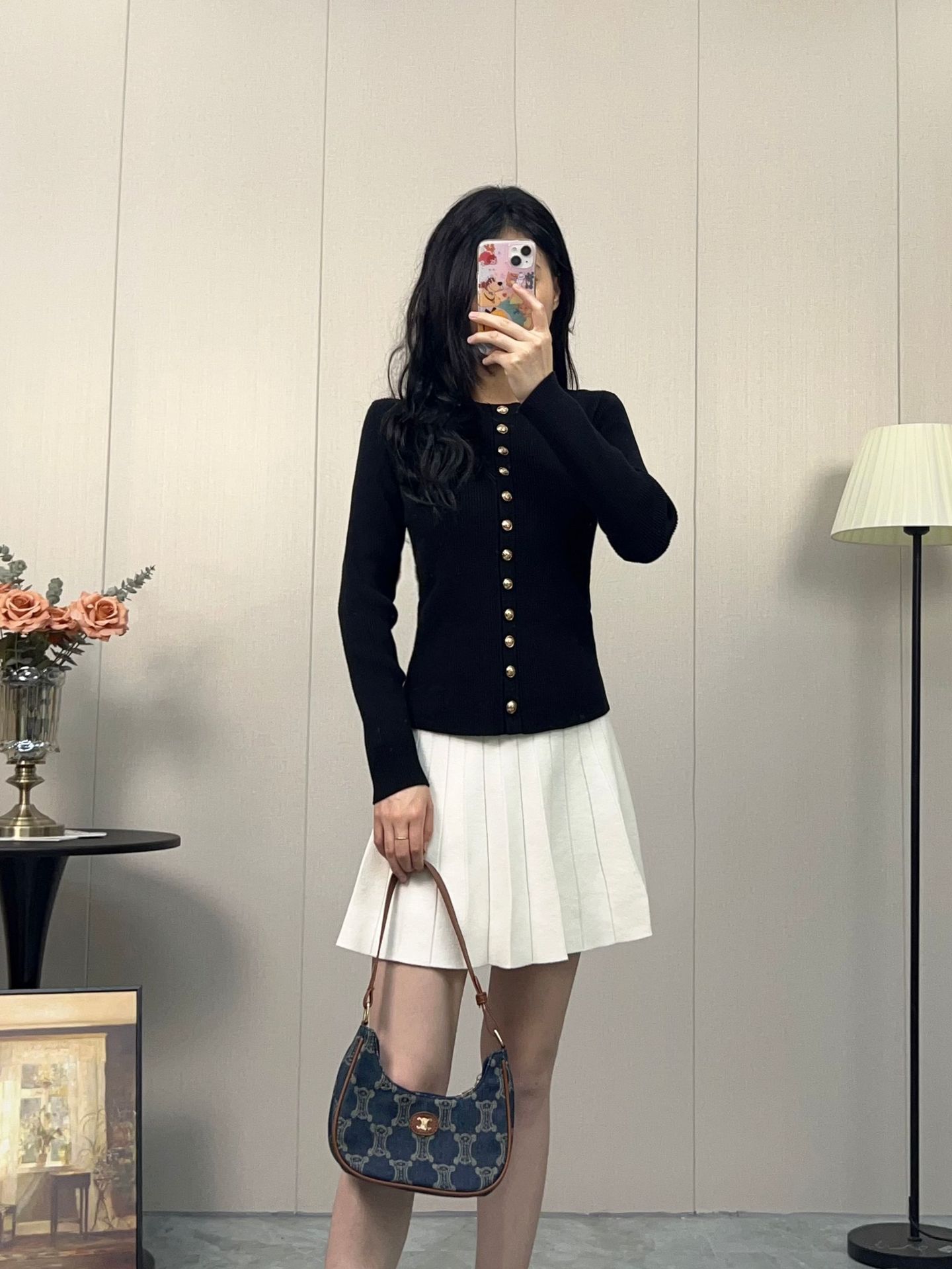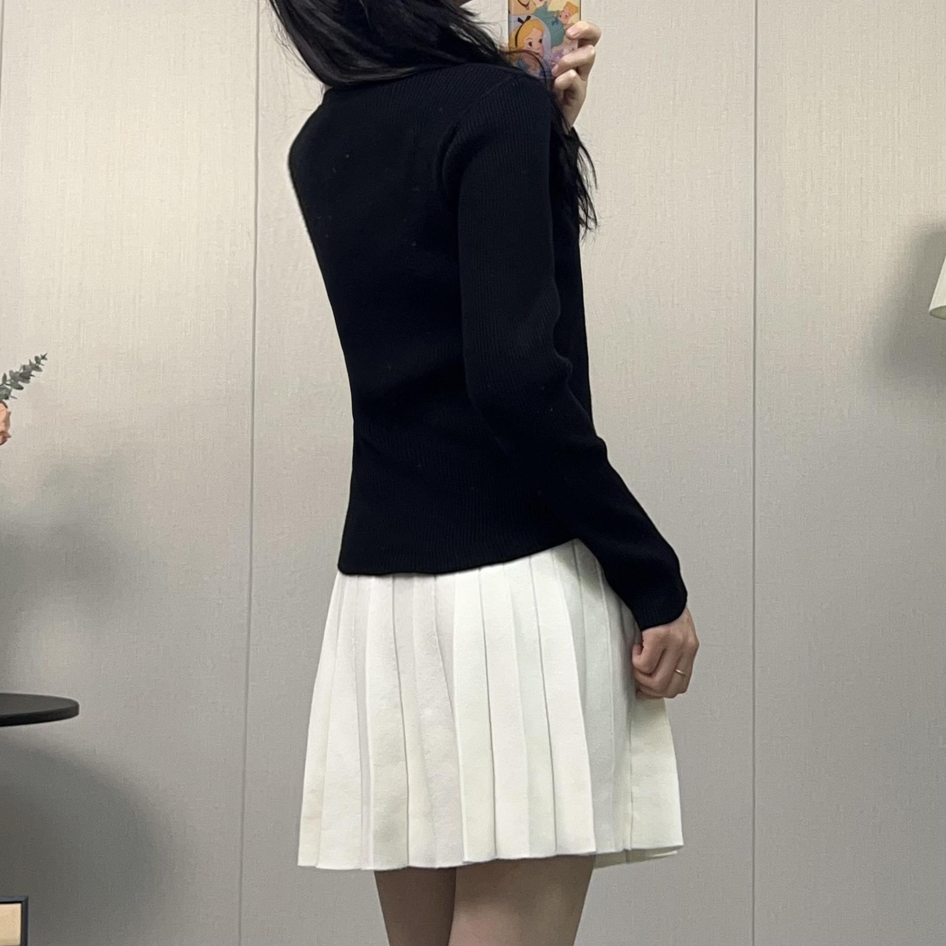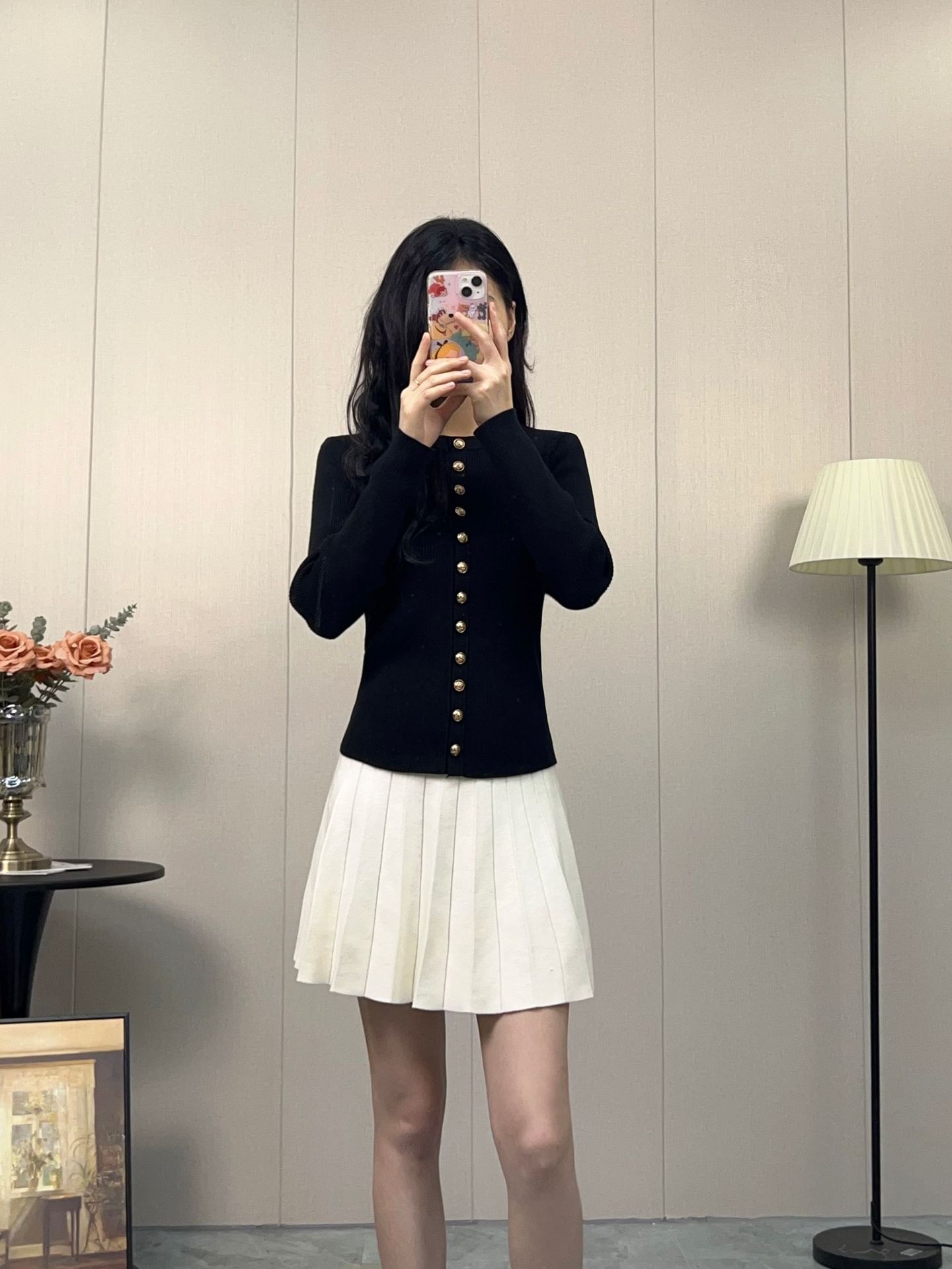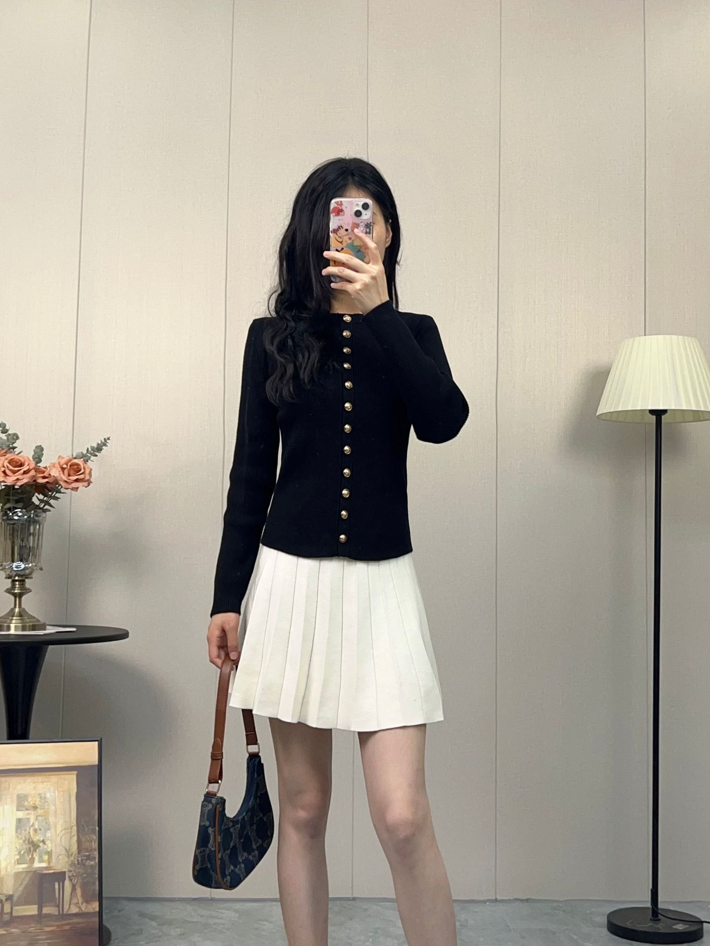 Primavera Nueva Moda Hebilla Metálica Cuello Redondo Tejido de Punto 2025 Top Versátil de Manga Larga para Mujer de Alta Gama