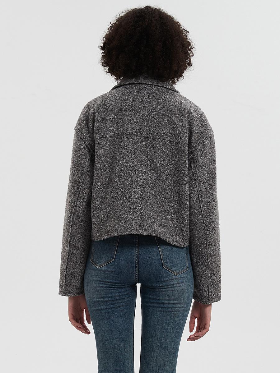 Ropa de mujer al por mayor transfronteriza estilo europeo y americano moda chaqueta con solapa otoño e invierno nuevo abrigo de lana gris decorativo con bolsillo grande