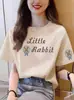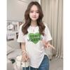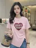 Camiseta de algodón para mujer, de manga corta, diseño nuevo de verano 2024, holgada, plisada y ajustada con hombros descubiertos.