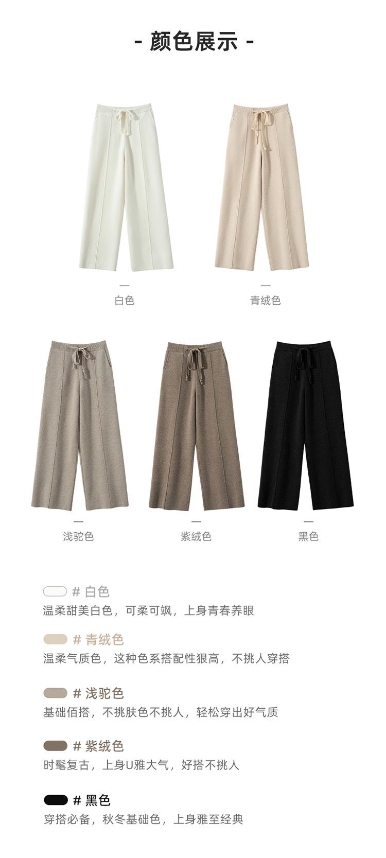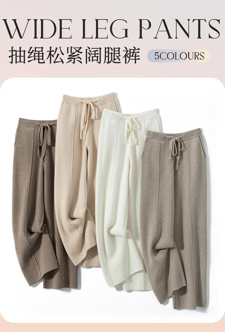 Pantalones de Punto de Cachemira de Pierna Ancha para Otoño e Invierno 2024 para Mujer, Ropa Exterior Suelta, Pantalones Rectos de Alta Elasticidad, Pantalones Casuales de Cachemira para Mujer