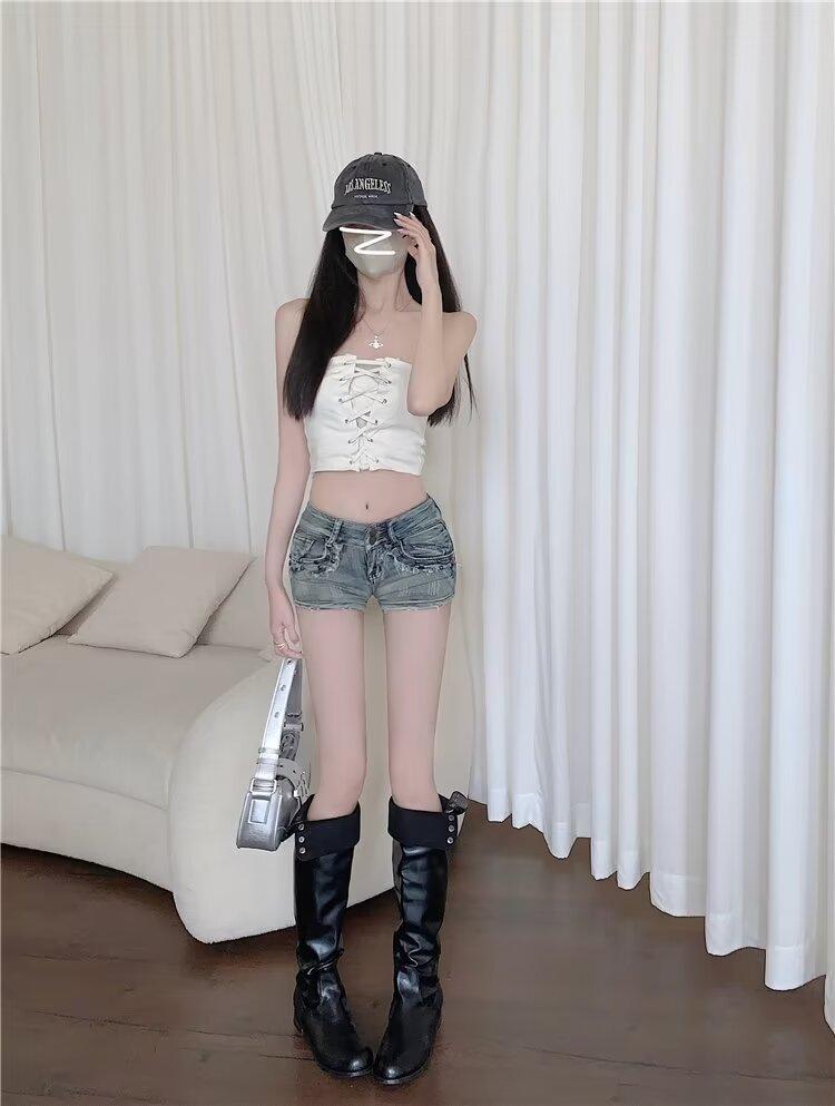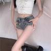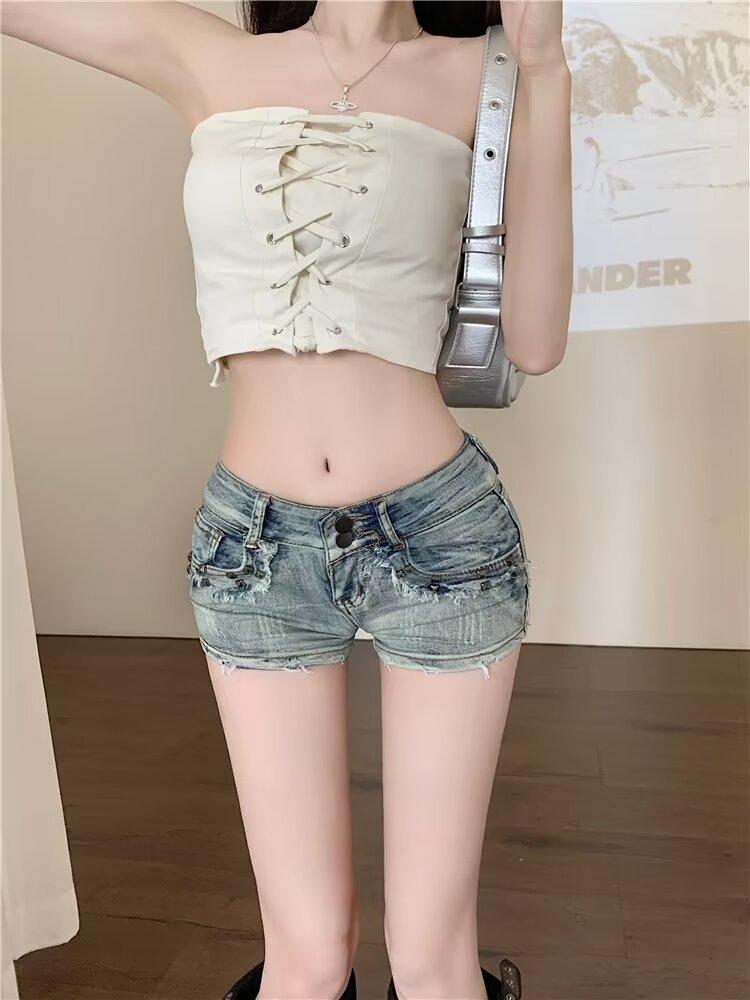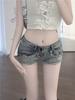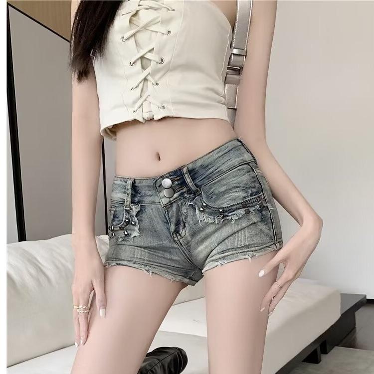 Pantalones cortos vaqueros rectos de cintura alta con remaches para mujer, estilo americano, ajustados, retro, ajustados, de pierna ancha, 2024