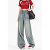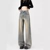 Vaqueros vintage de pierna ancha para mujer, otoño 2024, nuevos, cintura alta, sueltos, adelgazantes, rectos, largos, con aberturas.