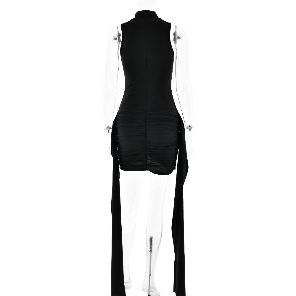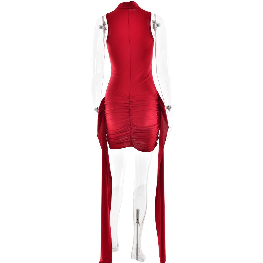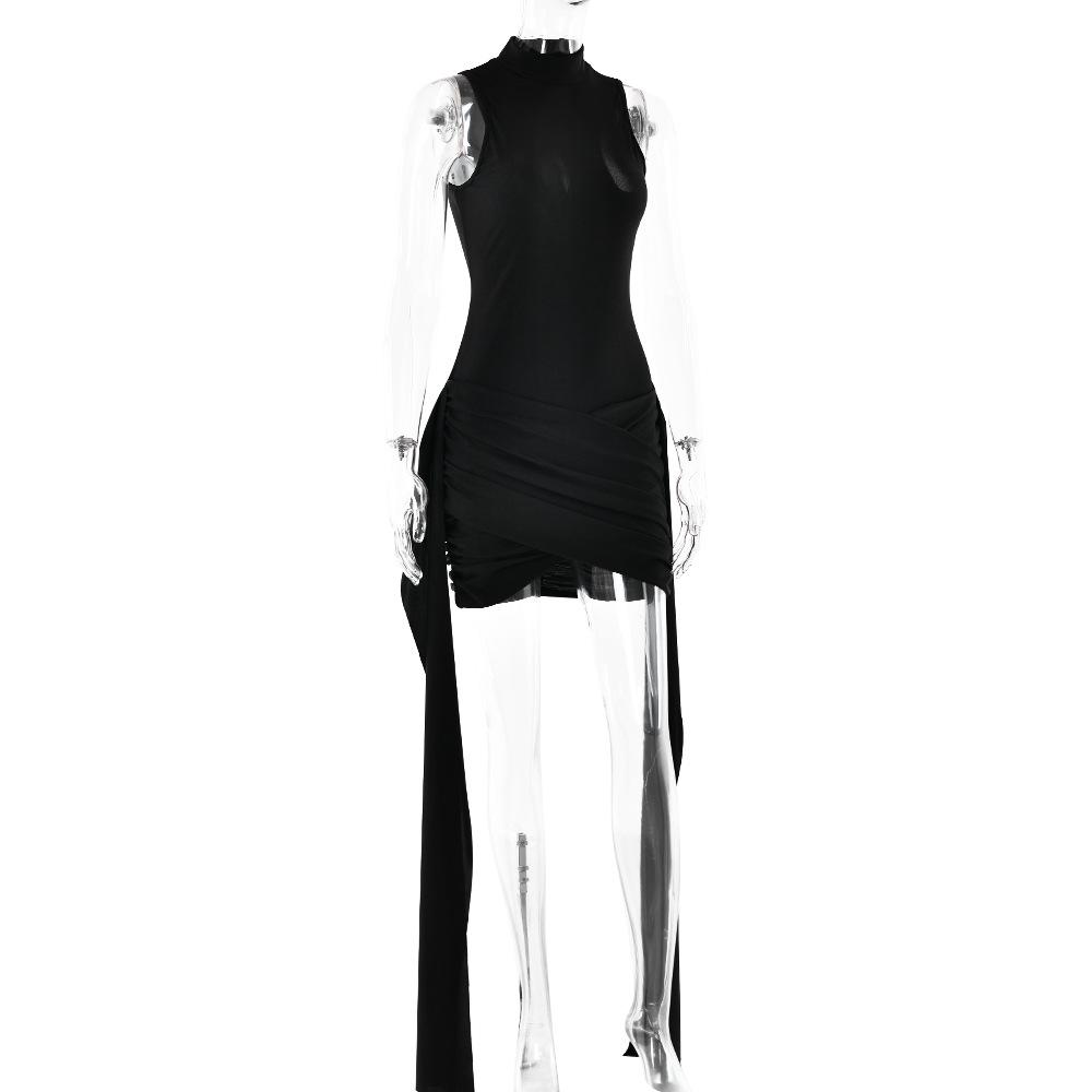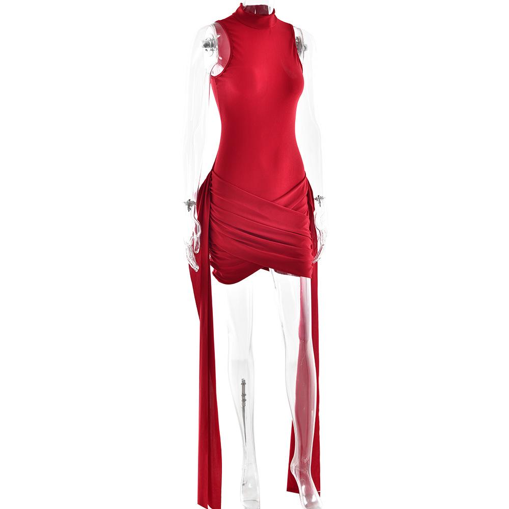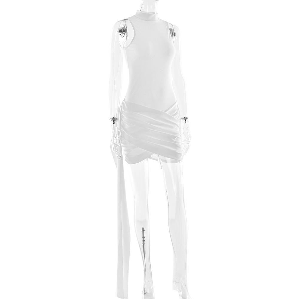 Vestido nuevo de verano de estilo europeo y americano, superventas, sexy, elegante, de color puro, cuello redondo, sin mangas, falda de tiras ajustada a la cadera