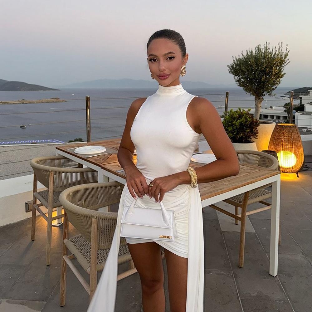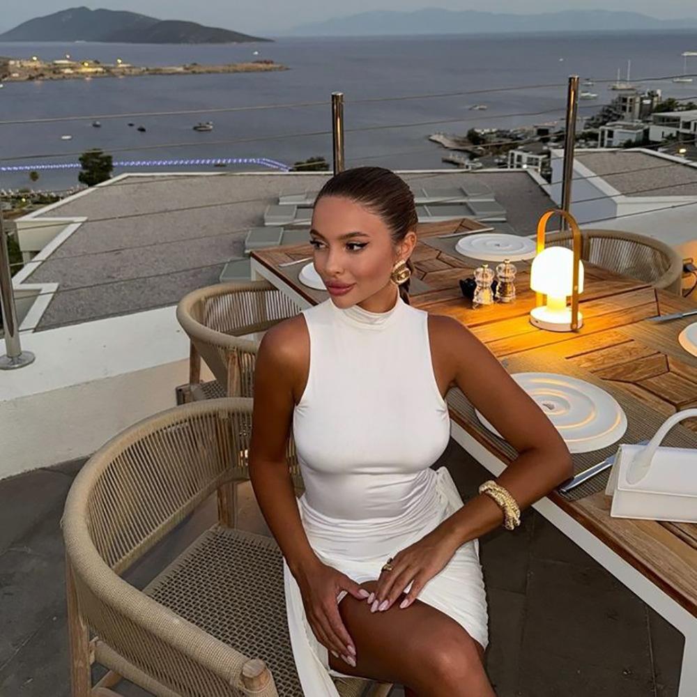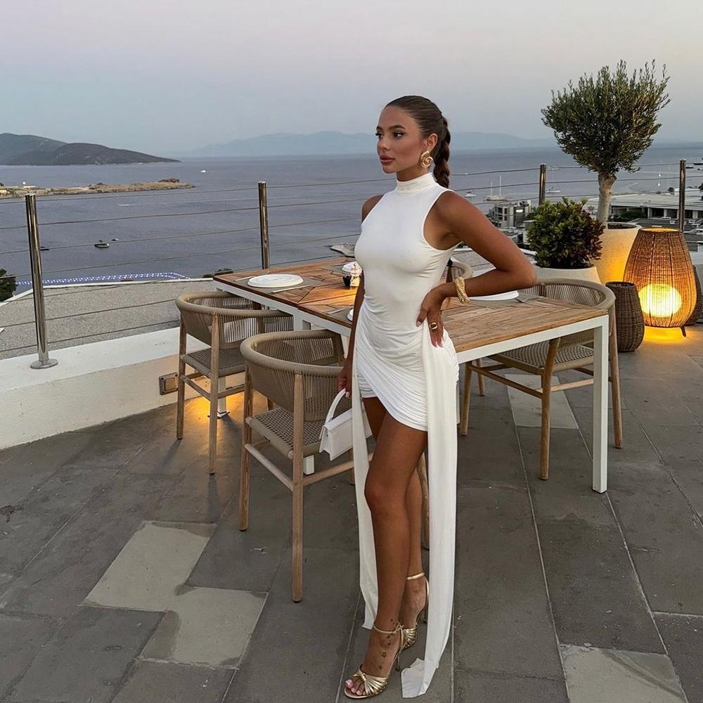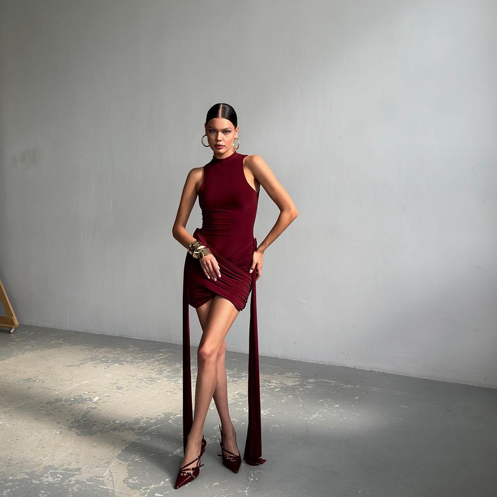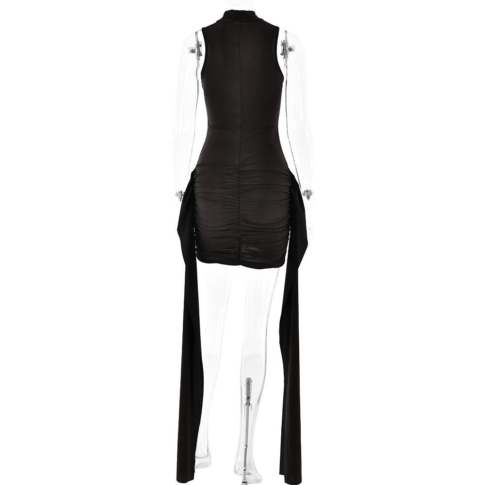 Vestido nuevo de verano de estilo europeo y americano, superventas, sexy, elegante, de color puro, cuello redondo, sin mangas, falda de tiras ajustada a la cadera