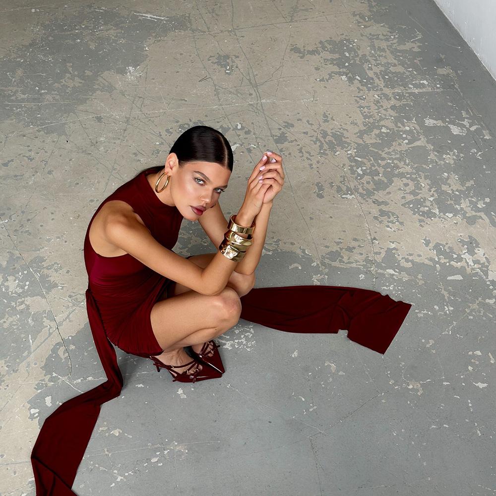 Coffee color, Black, White, Wine red, Made of elastic satin fabric, round neck sleeveless design, ribbon desig...