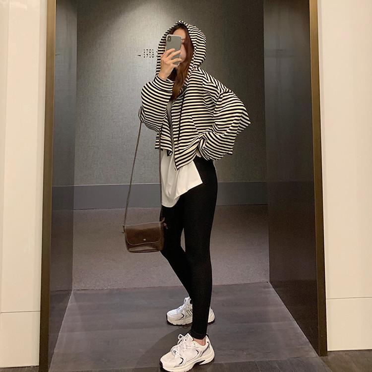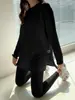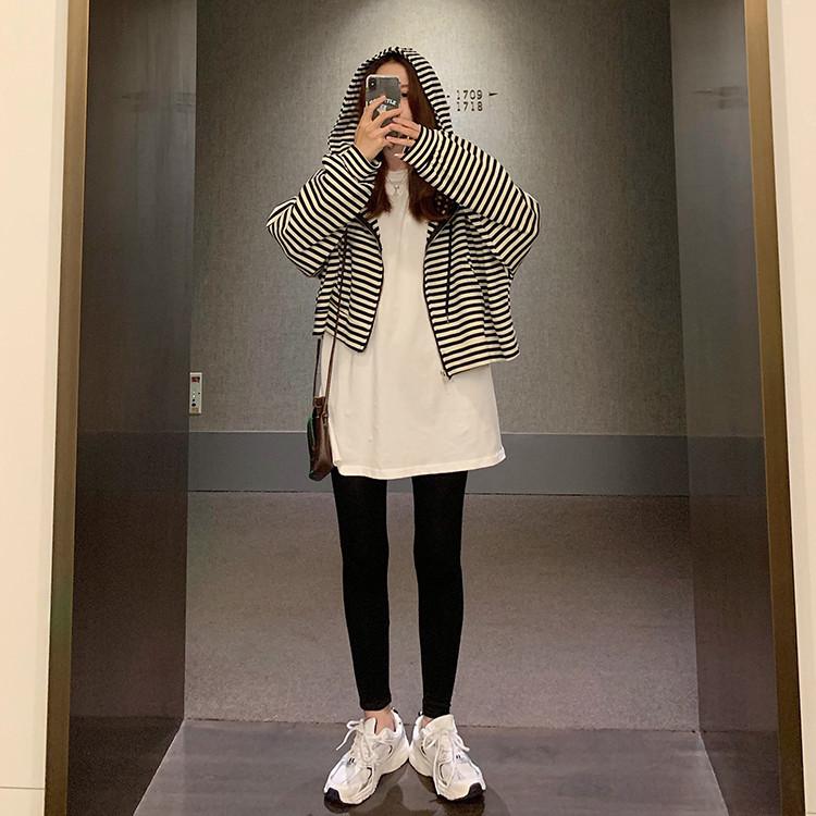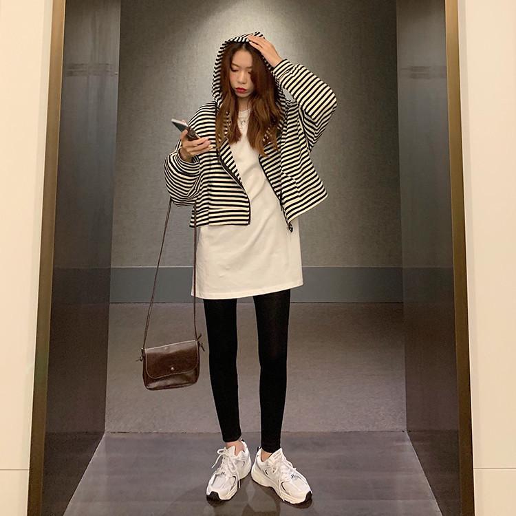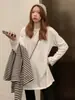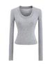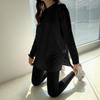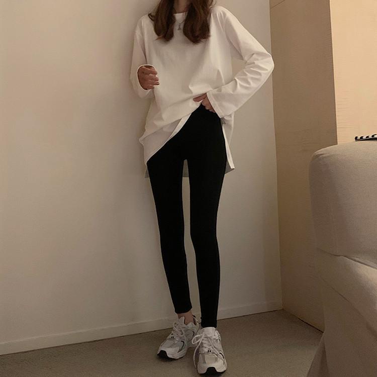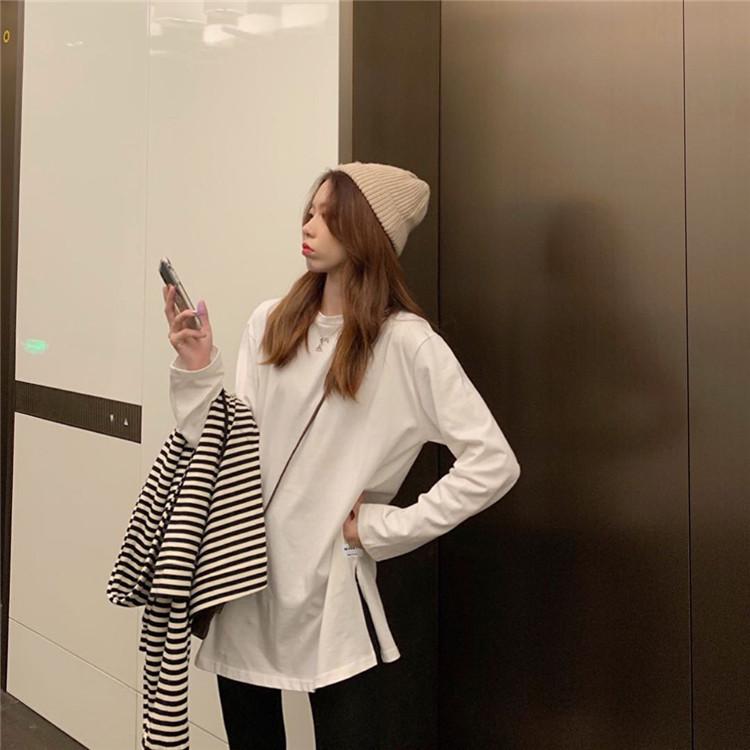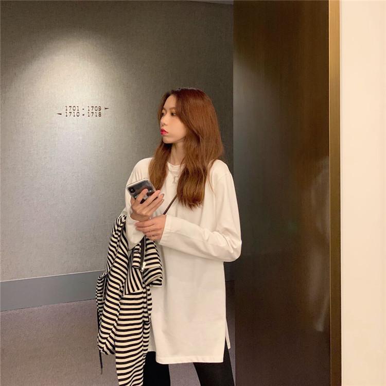 Playera Blanca de Algodón Puro con Abertura de Manga Larga Cuello Redondo Largo Medio Camiseta Base para Mujer con Top de Talla Grande que Cubre el Trasero para Otoño