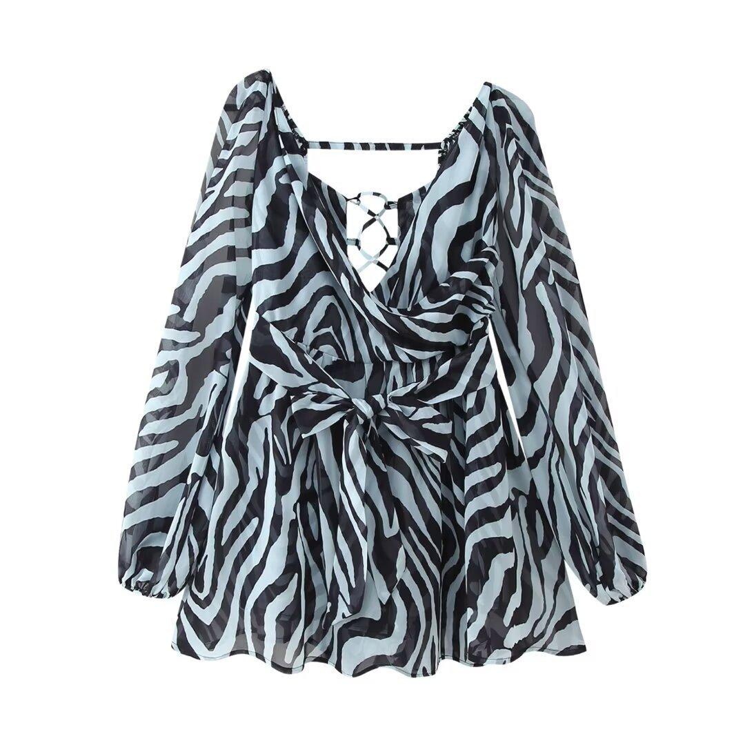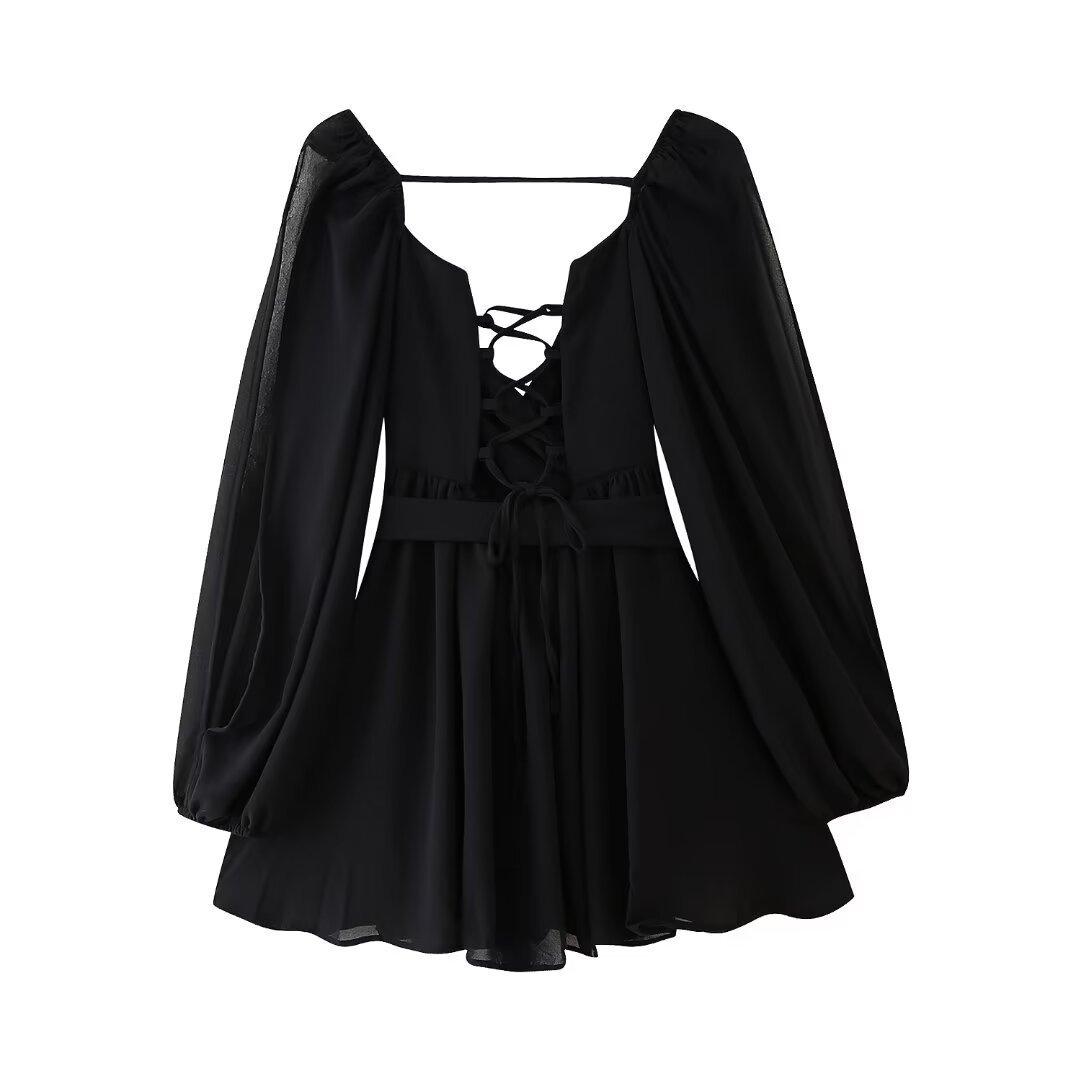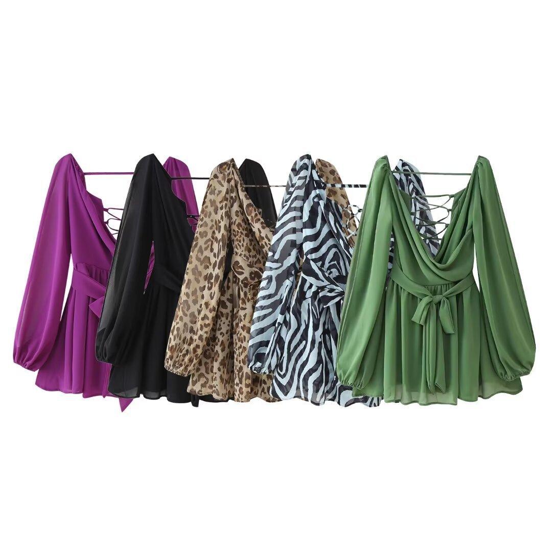 Comercio exterior transfronterizo Ropa de mujer europea y americana Verano 2024 Nuevo vestido con cordones y temperamento de cuello de una sola palabra
