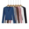 Ropa de mujer de estilo europeo y americano transfronterizo 2025 nuevo cárdigan sexy de encaje transparente con cuello en V y mangas largas con cordones