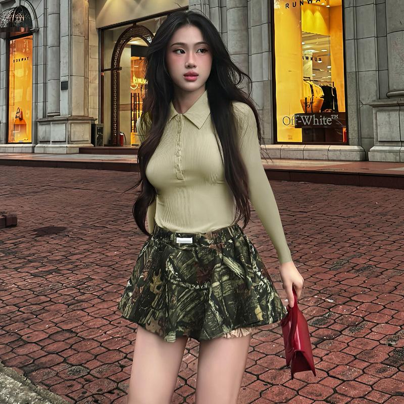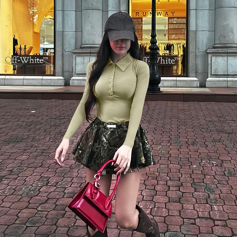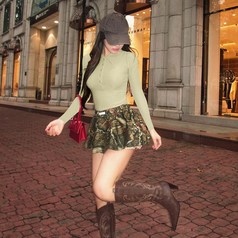 Camiseta de manga larga con cuello tipo polo de Spice Girls para mujer, estilo europeo y americano, otoño e invierno de 2024, elegante y ajustada.