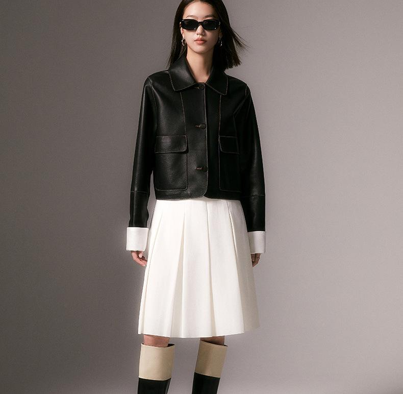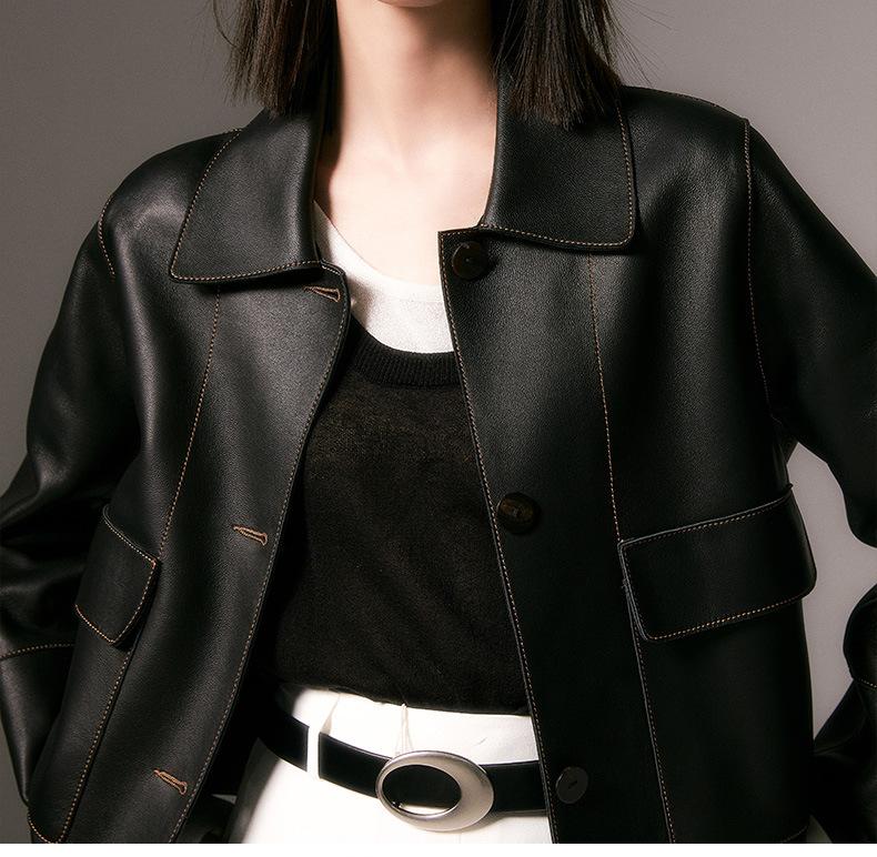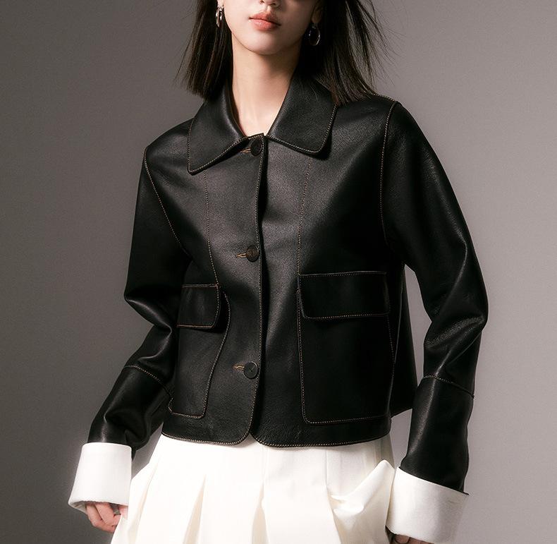 Haining Nuevo Estilo Lujo Importado 100% Piel de Oveja Abrigo Corto para Mujer Otoño e Invierno Sentido de Alta Gama