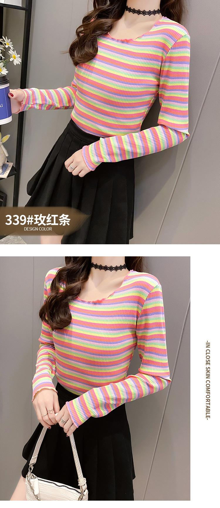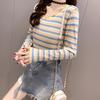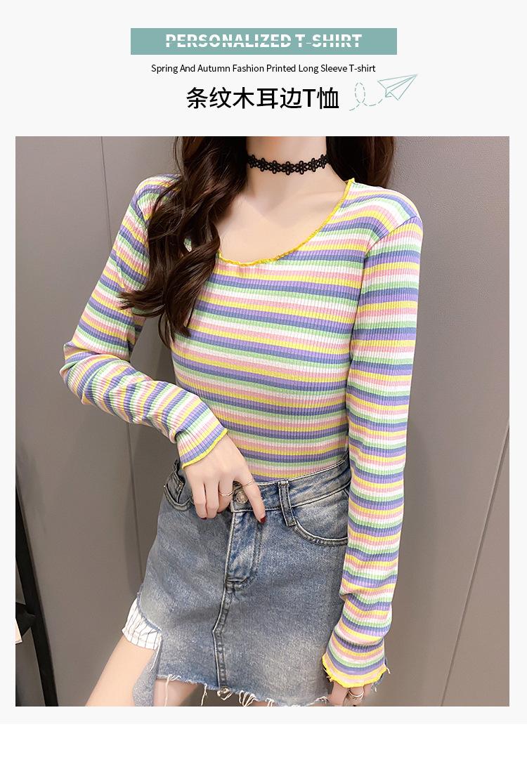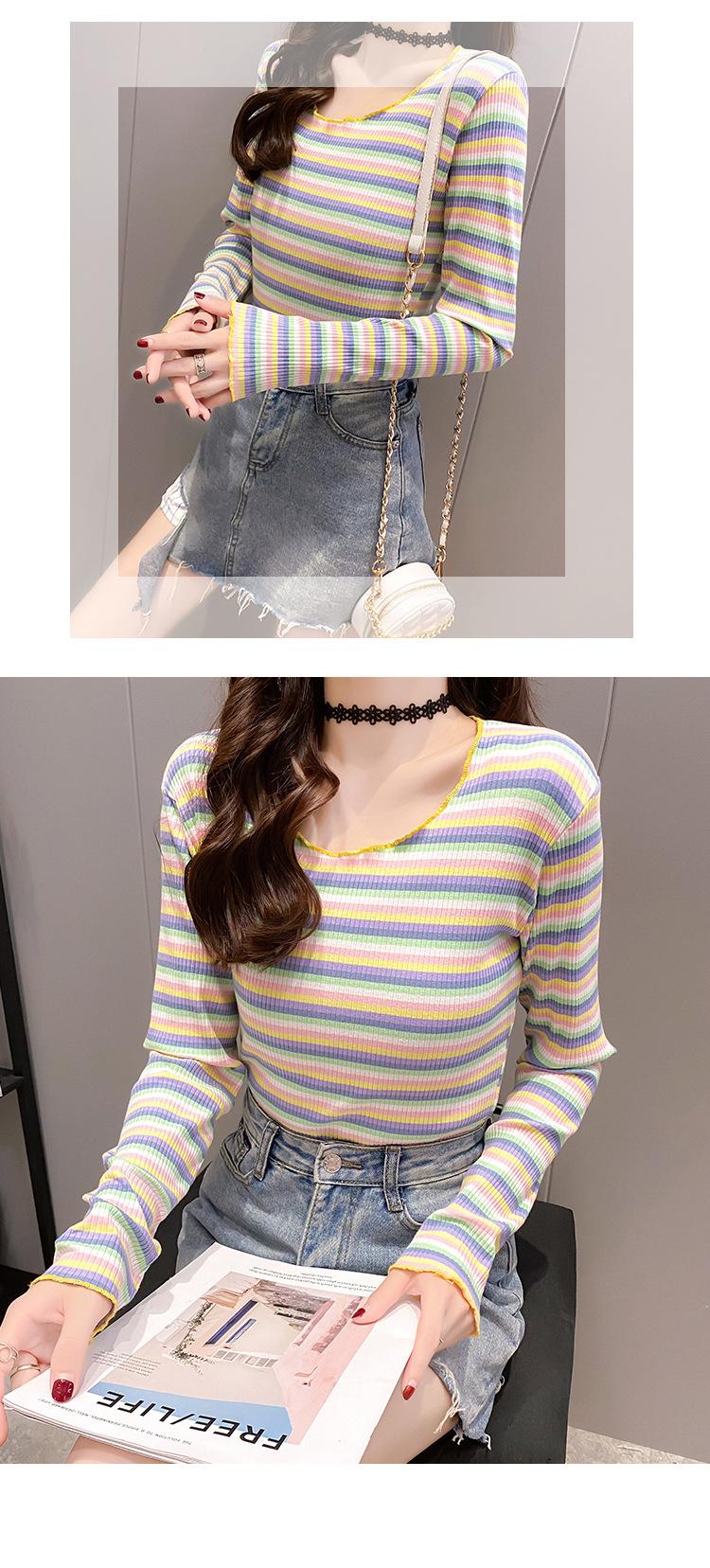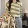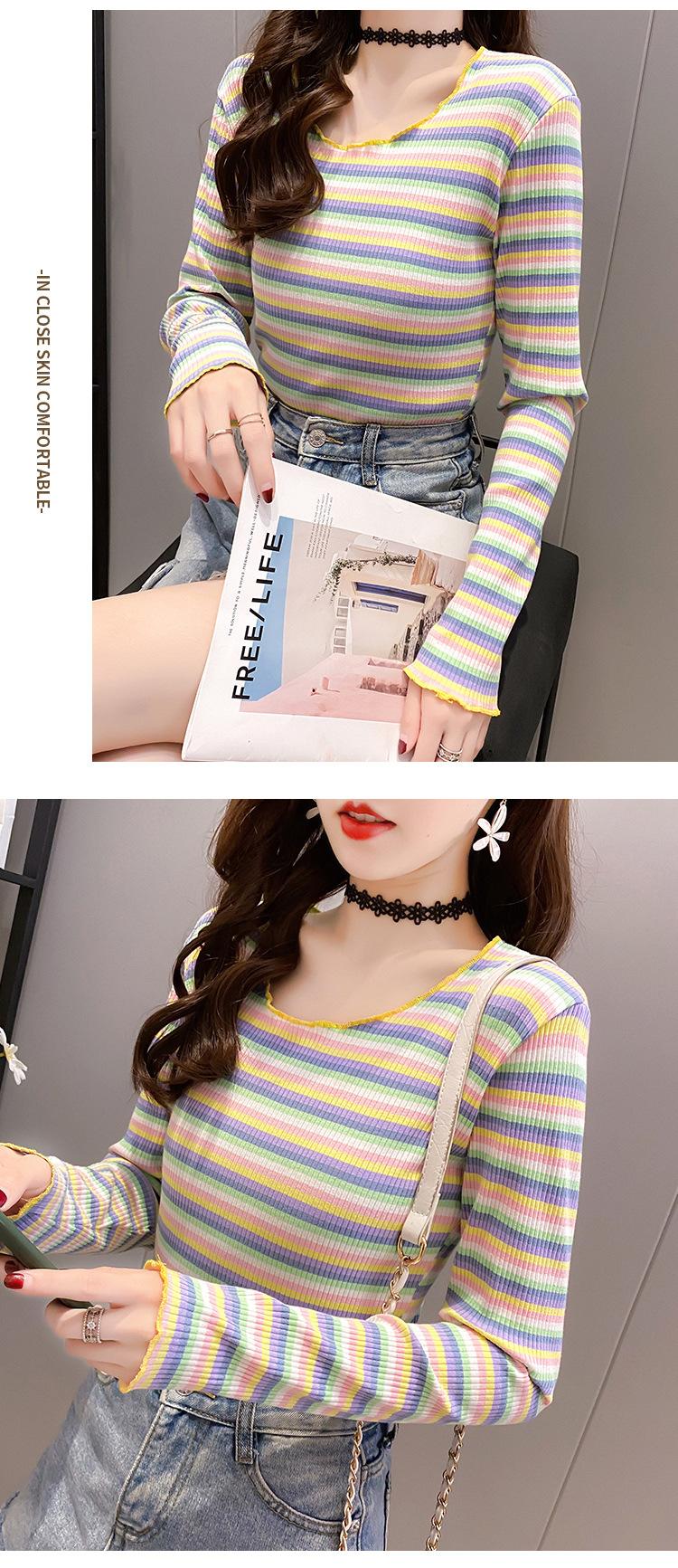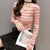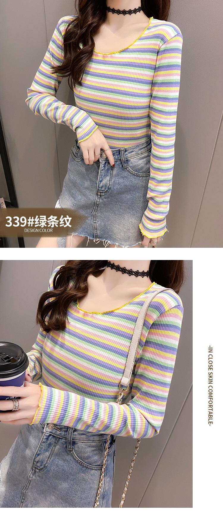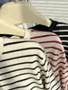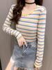 Camiseta de manga larga a rayas de algodón para mujer, camisa básica de primavera y otoño 2024, nueva camiseta ajustada, adelgazante, de moda, combinable y elegante.