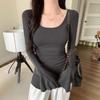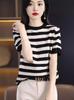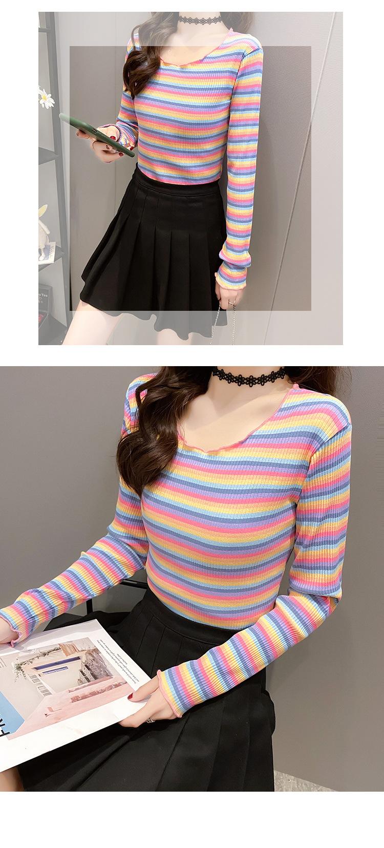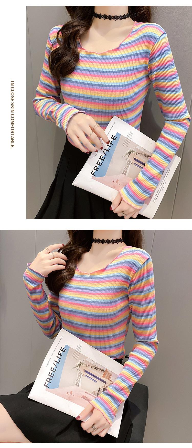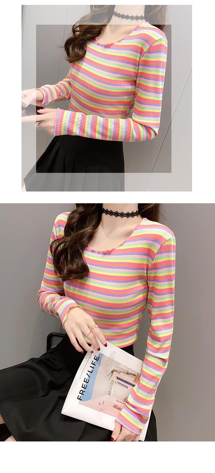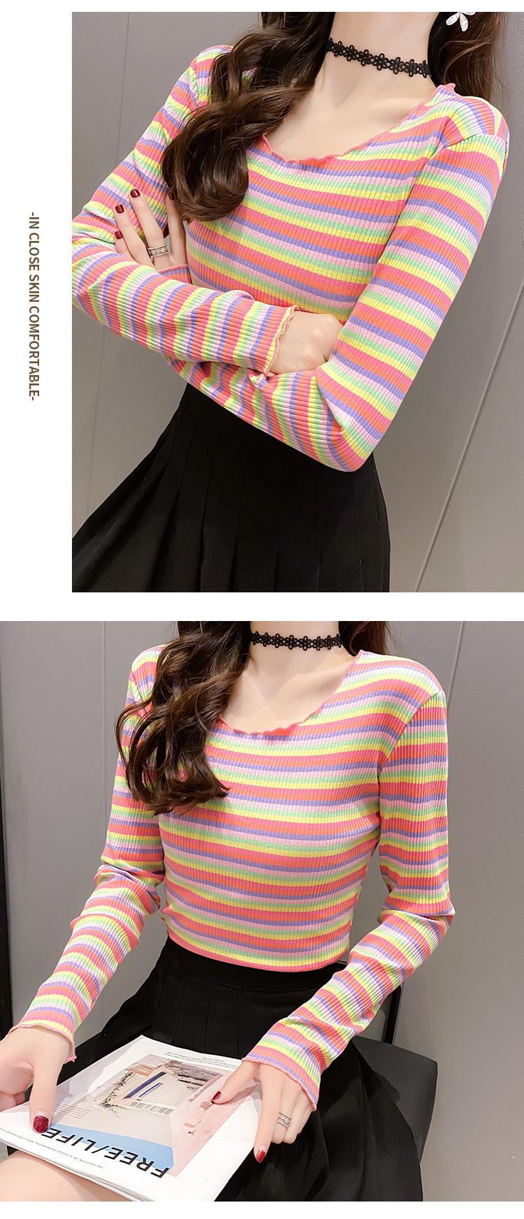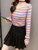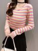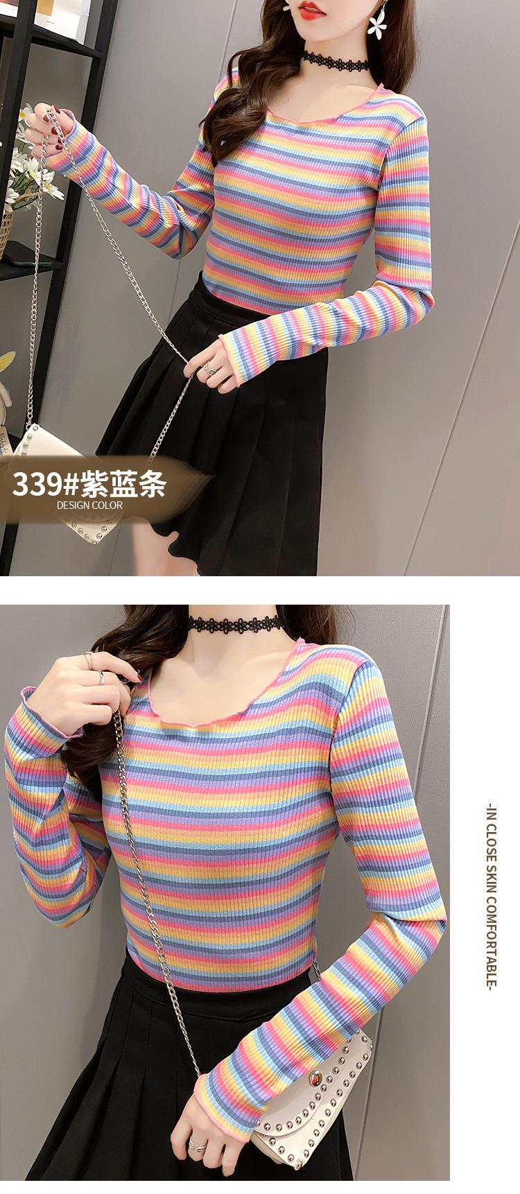 Camiseta de manga larga a rayas de algodón para mujer, camisa básica de primavera y otoño 2024, nueva camiseta ajustada, adelgazante, de moda, combinable y elegante.