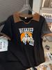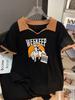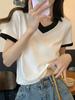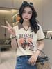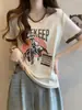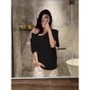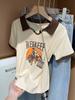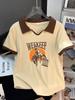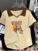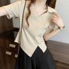 Camiseta holgada de manga corta para mujer, diseño nuevo de verano, camiseta de cuello en V con hombros descubiertos y cuello polo de algodón.