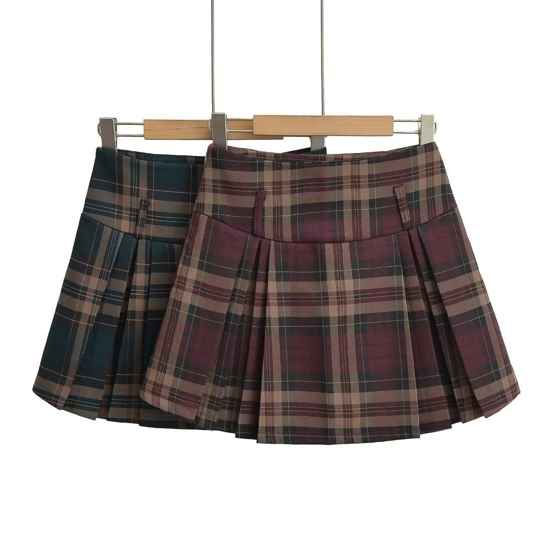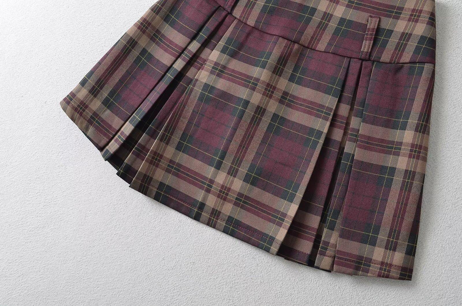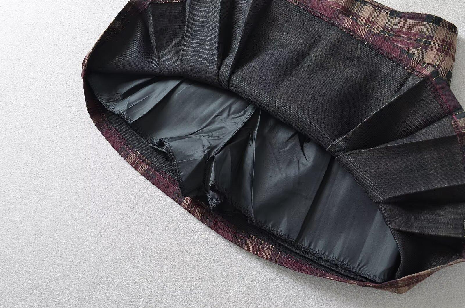 A861-24 Otoño Nuevo Estilo Francés Estilo Universitario Falda Corta Plisada de Cintura Alta Línea A Falda Retro con Forro