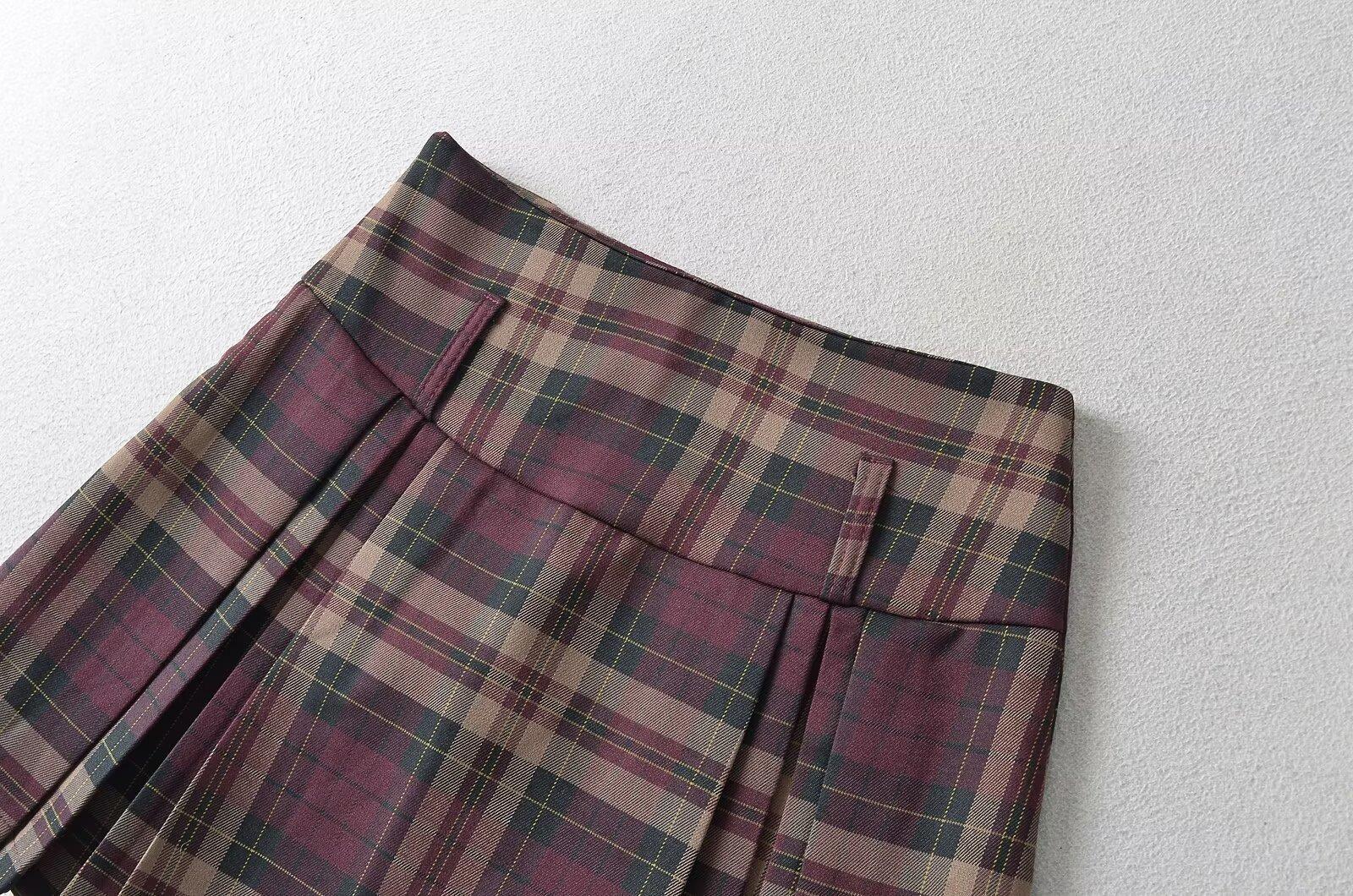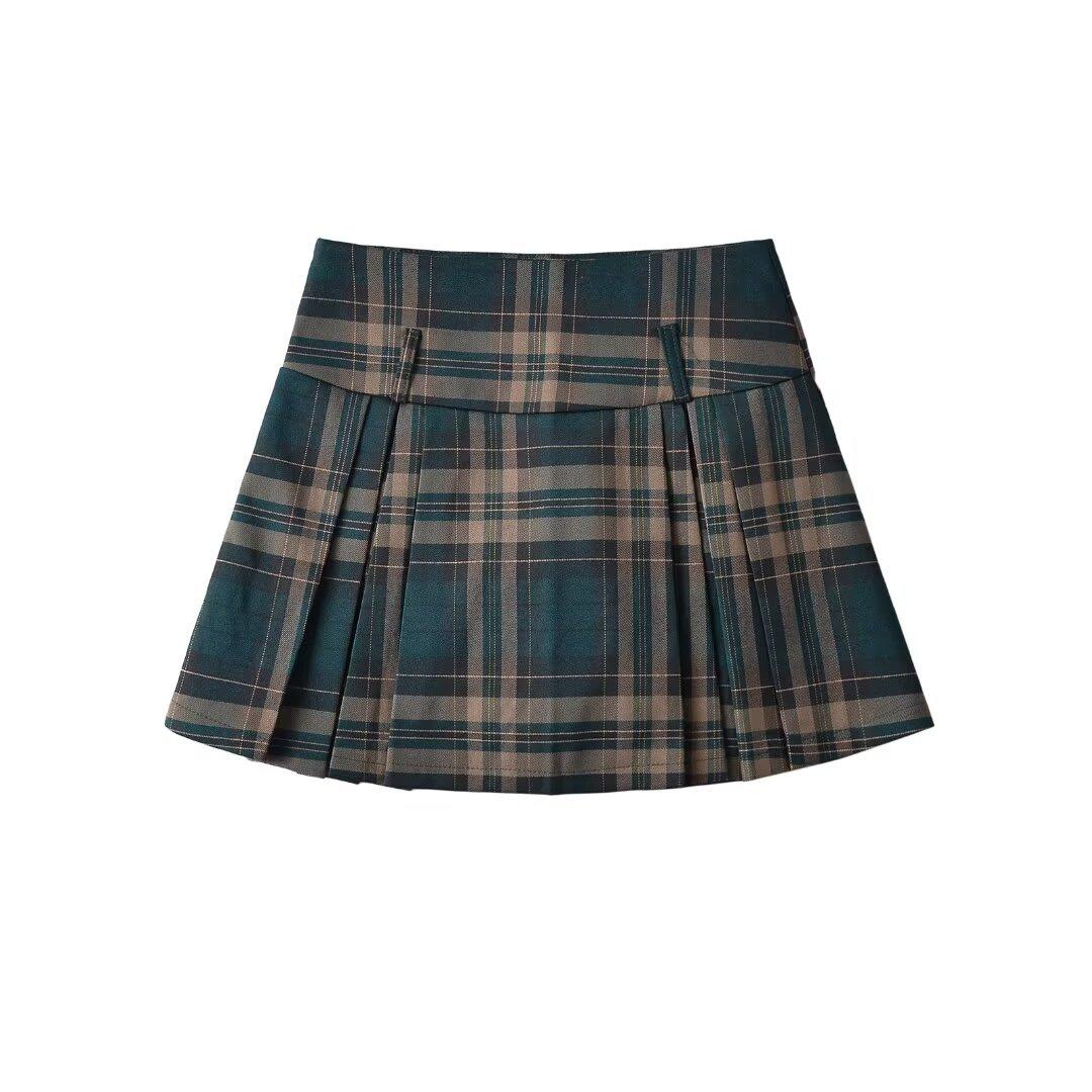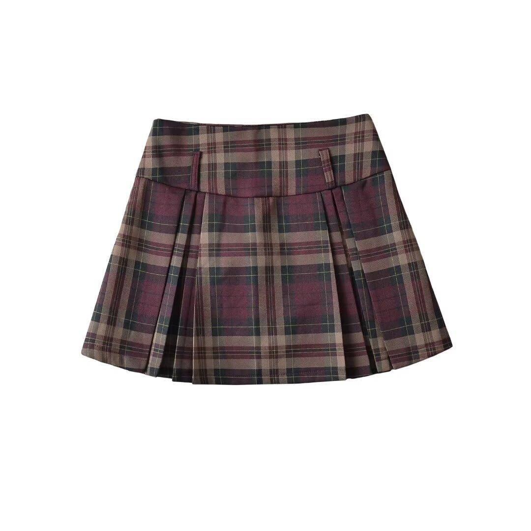 A861-24 Otoño Nuevo Estilo Francés Estilo Universitario Falda Corta Plisada de Cintura Alta Línea A Falda Retro con Forro