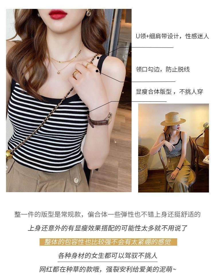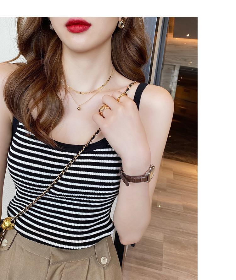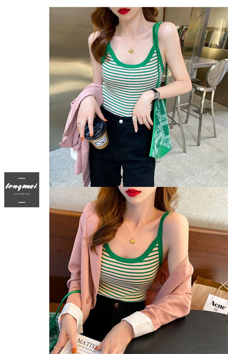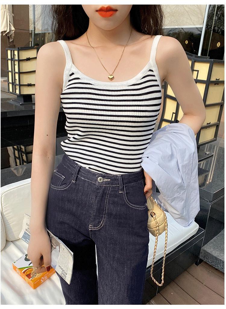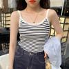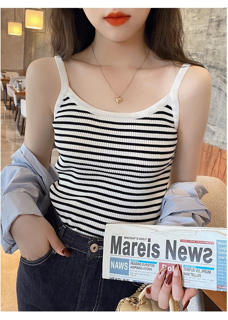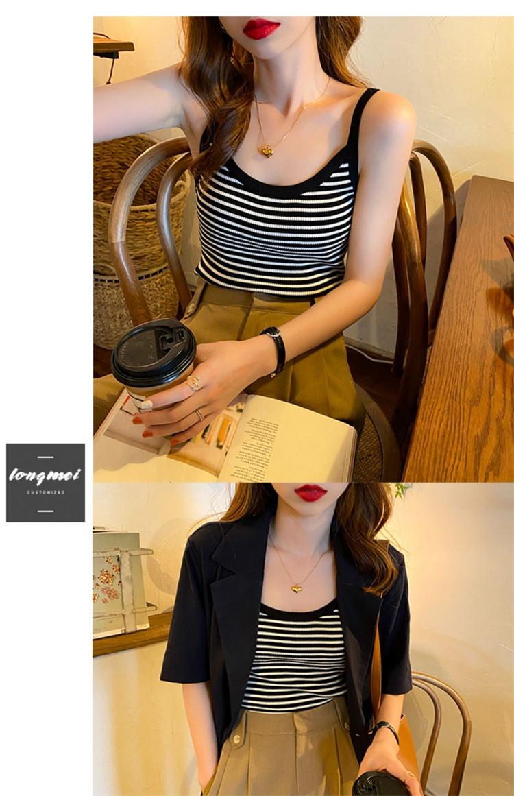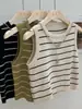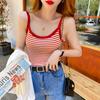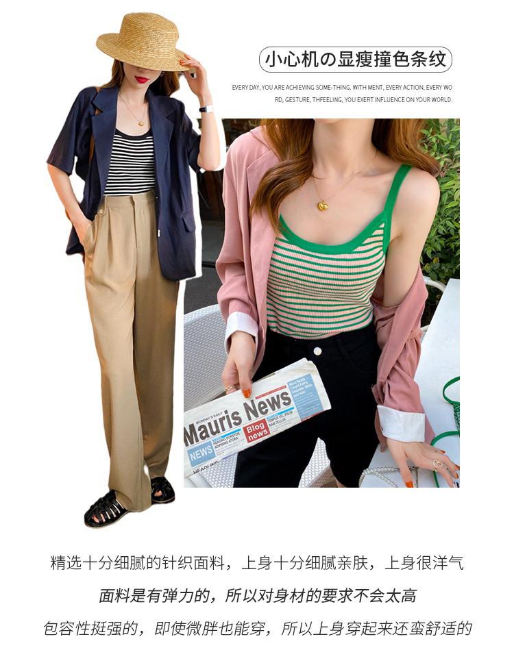 Chaleco exterior corto de seda de hielo de punto a rayas con tirantes pequeños para mujer, base interior de verano, corte entallado, sin mangas, estilo picante.