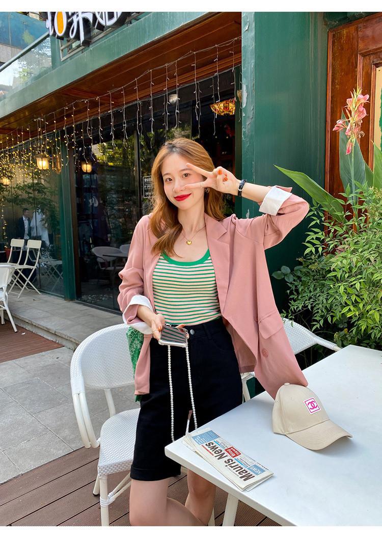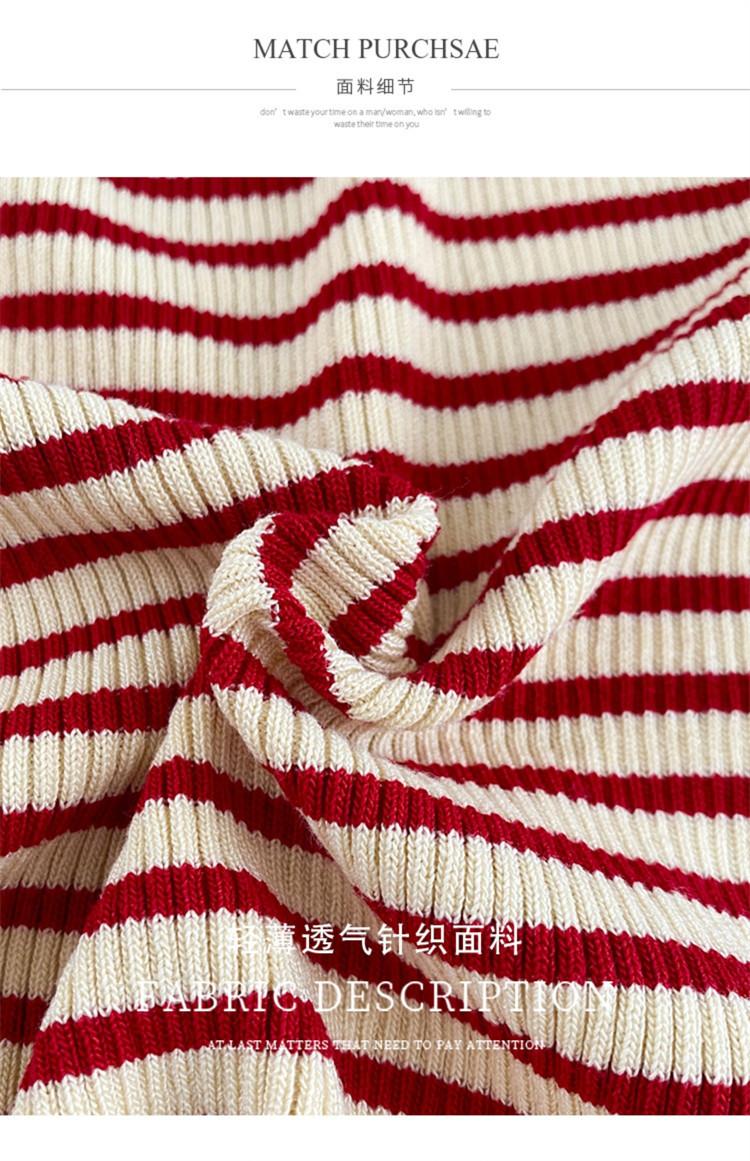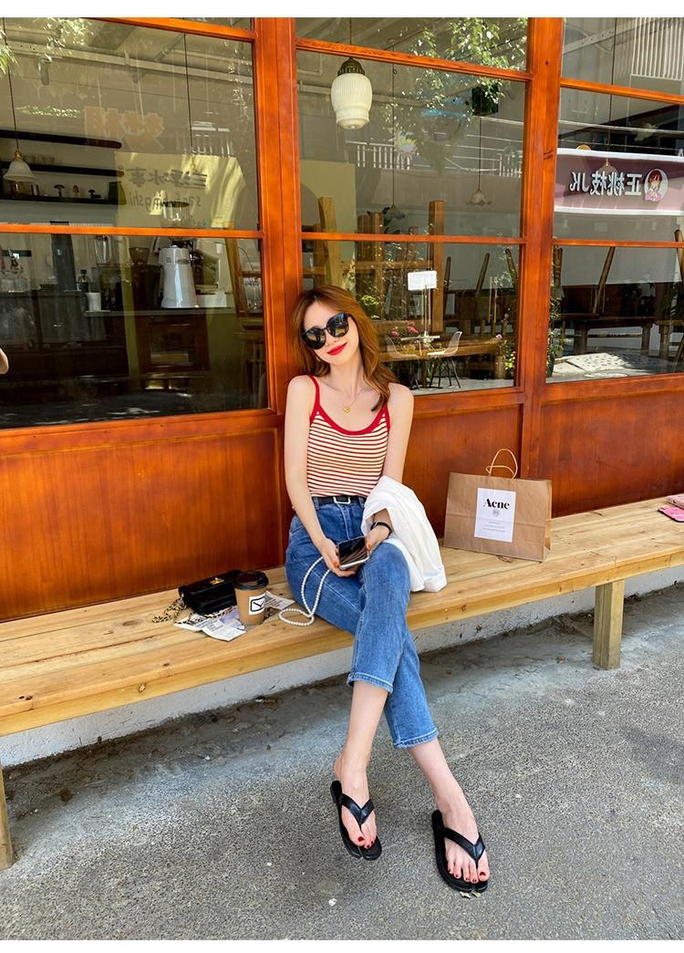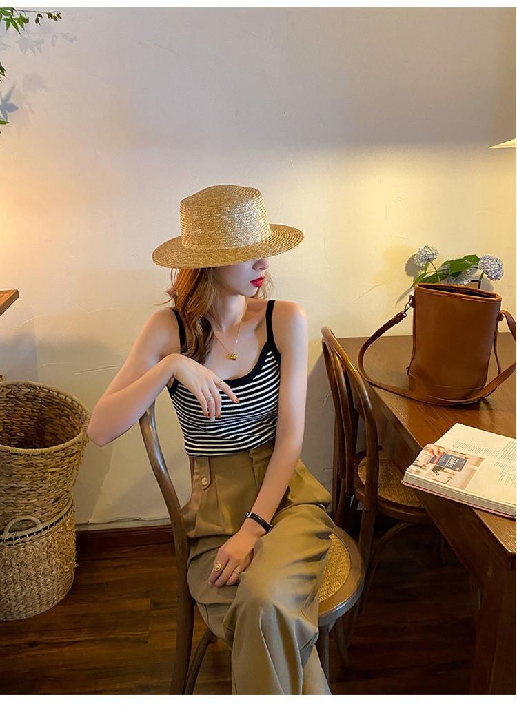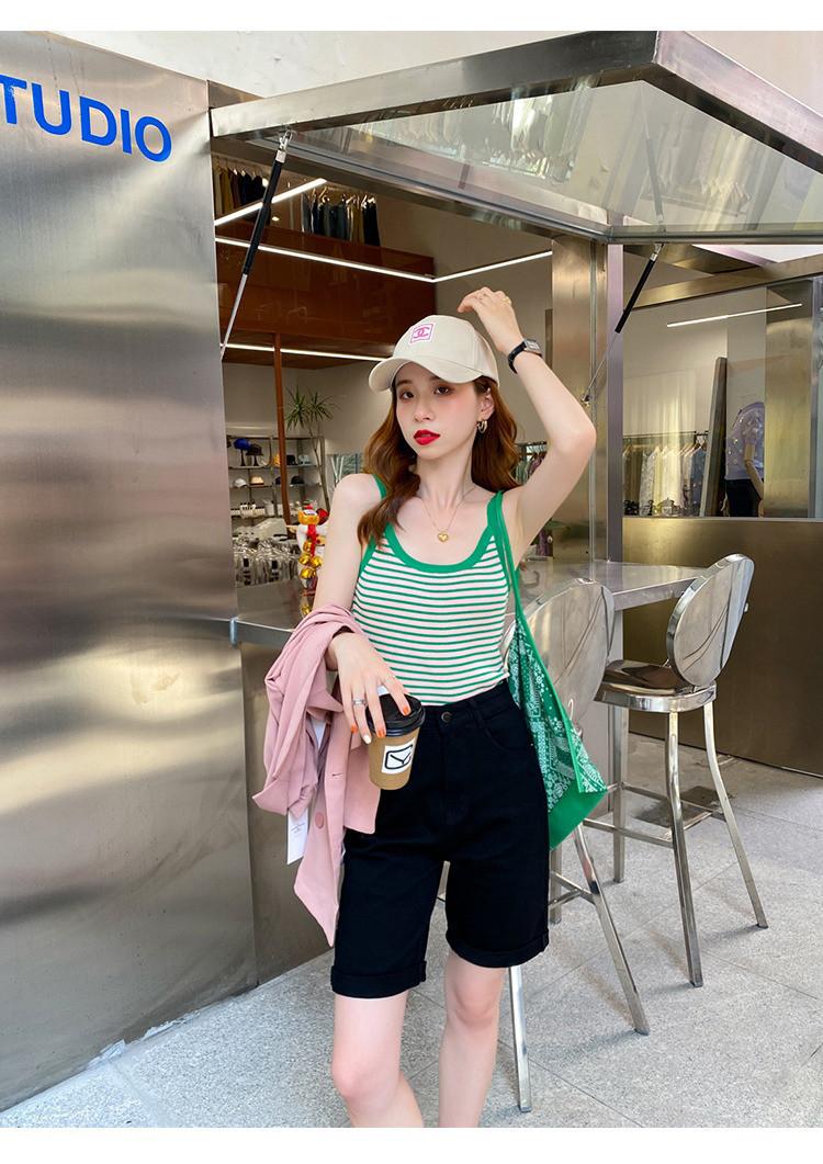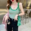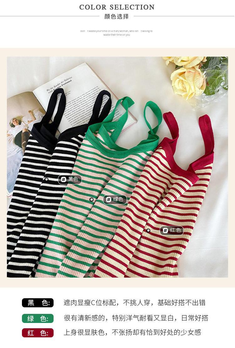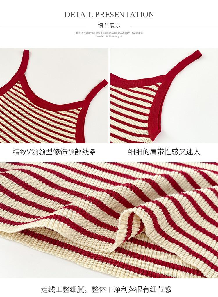 Chaleco exterior corto de seda de hielo de punto a rayas con tirantes pequeños para mujer, base interior de verano, corte entallado, sin mangas, estilo picante.