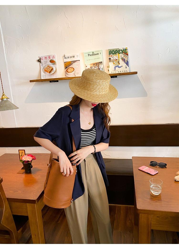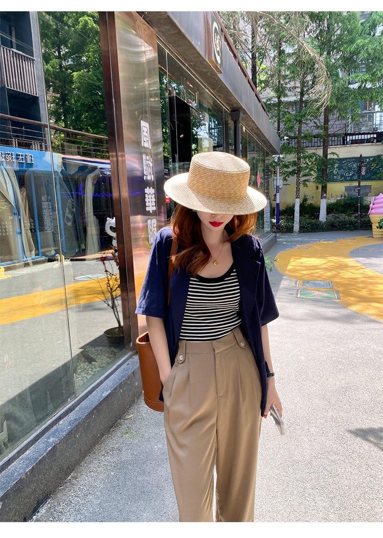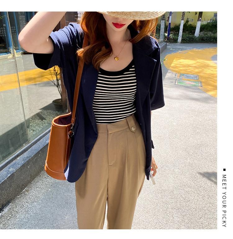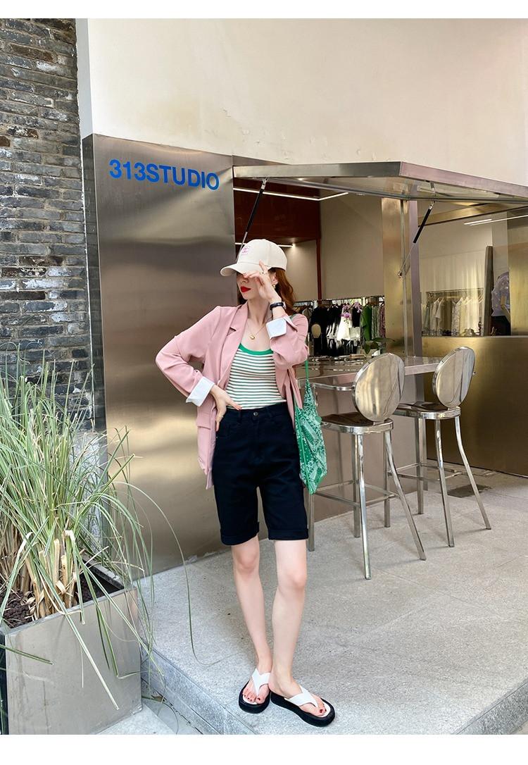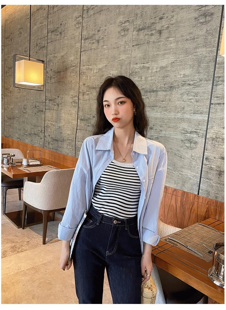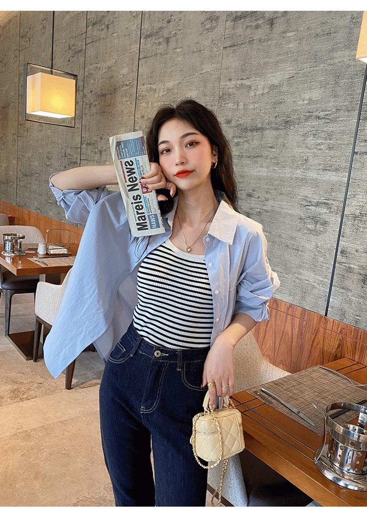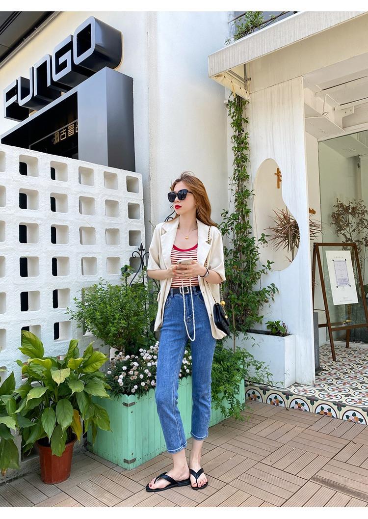 Chaleco exterior corto de seda de hielo de punto a rayas con tirantes pequeños para mujer, base interior de verano, corte entallado, sin mangas, estilo picante.