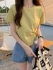 Playera de algodón de manga corta para mujer verano nueva ajuste ceñido versátil diseño adelgazante sentido nicho cintura alta top corto ropa chic