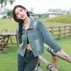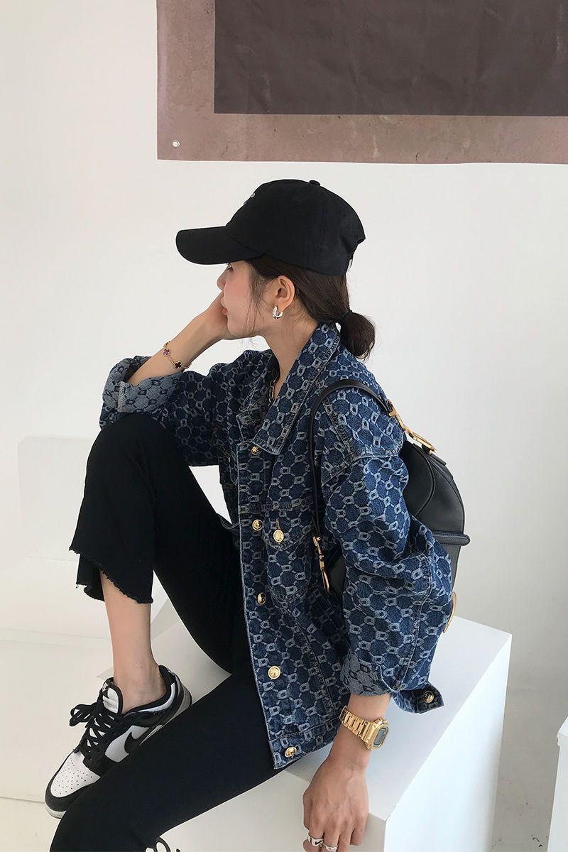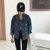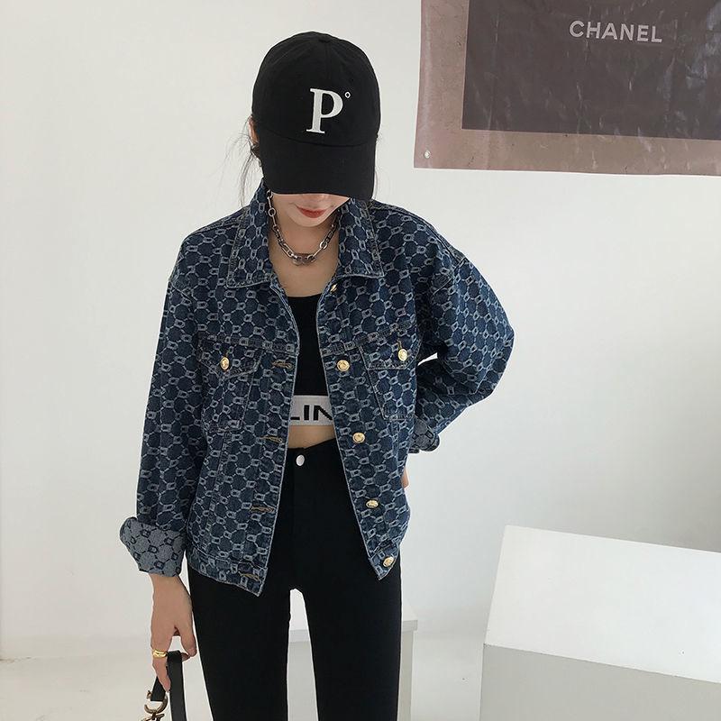 Chamarra de mezclilla de manga larga jacquard integral para mujer estilo coreano holgada 2025 nueva principios de otoño top casual chamarra de mezclilla primavera y otoño