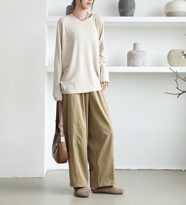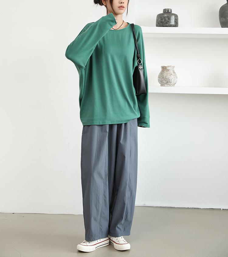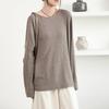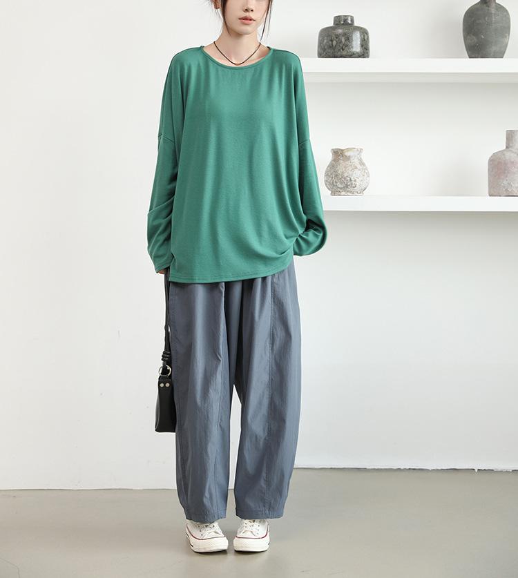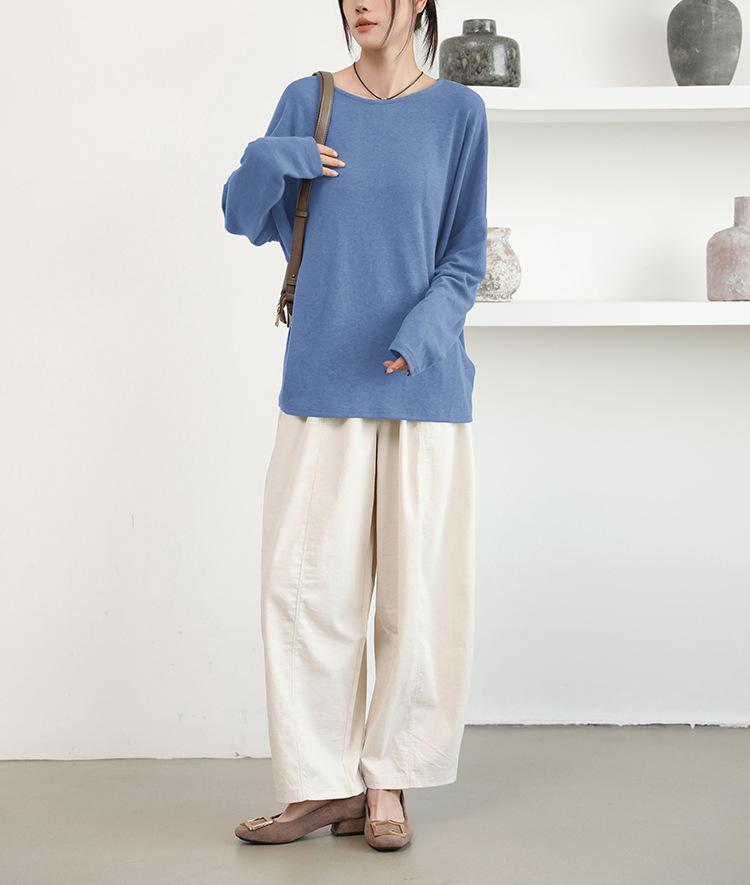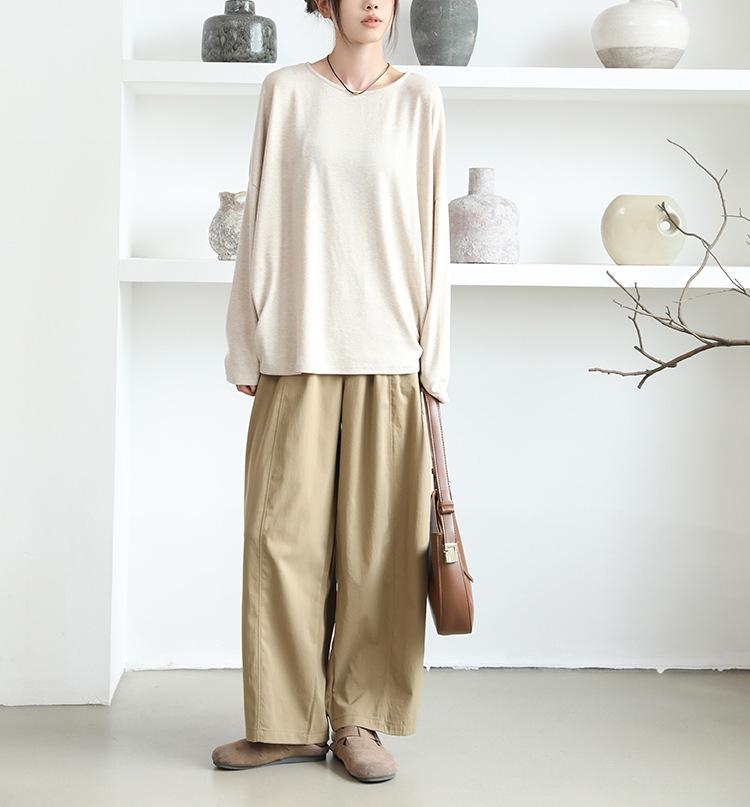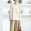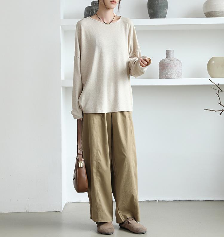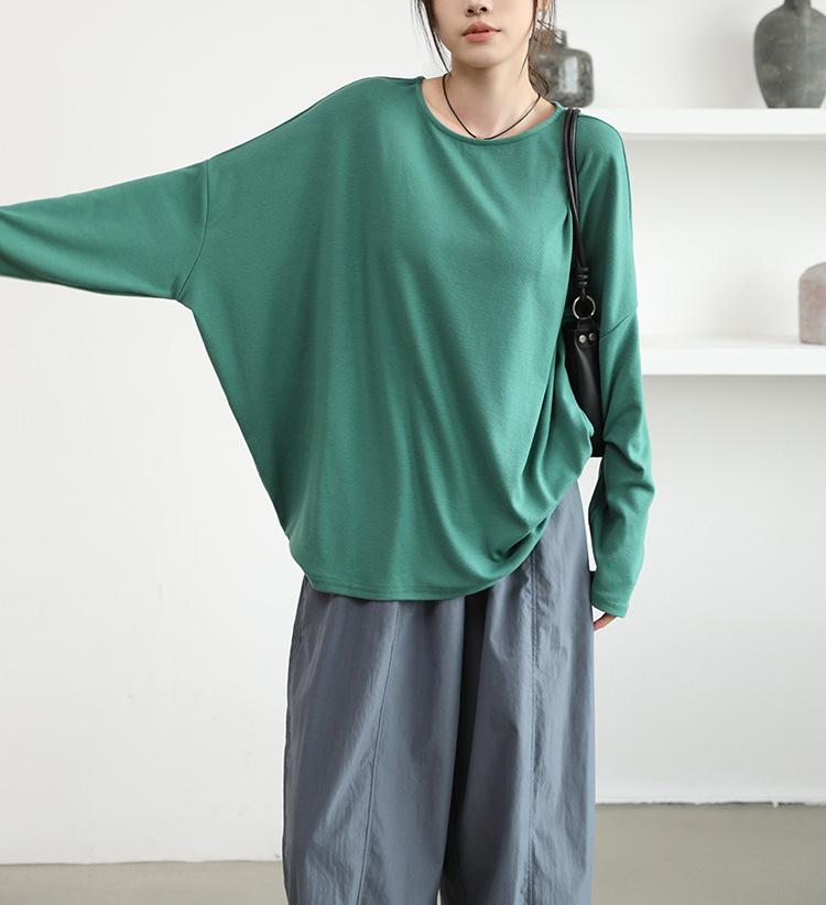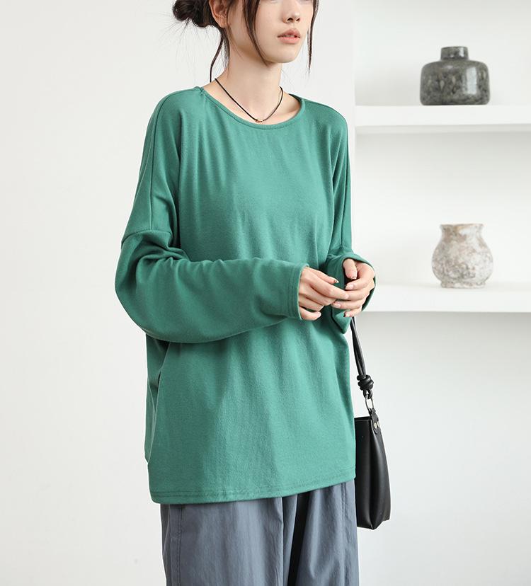 Camiseta japonesa de otoño para mujer, color liso, cuello redondo, manga larga, suelta, básica
