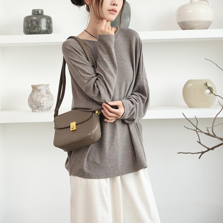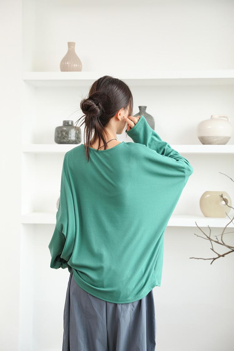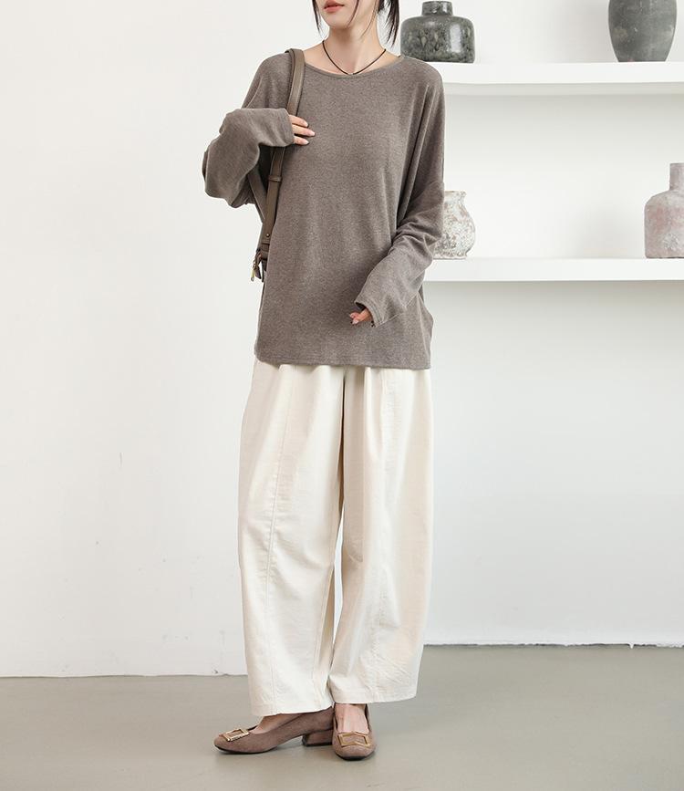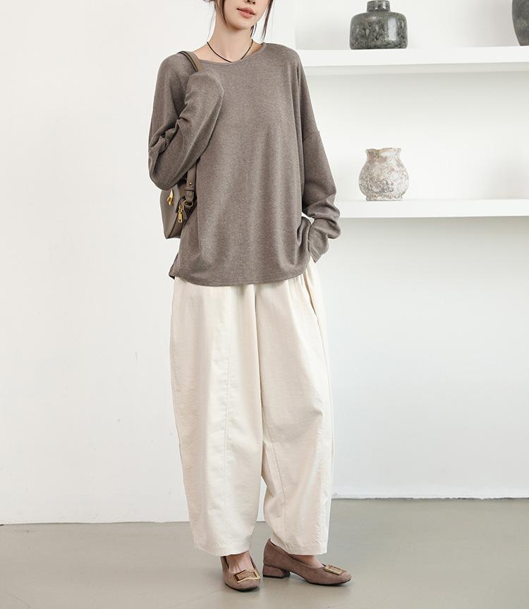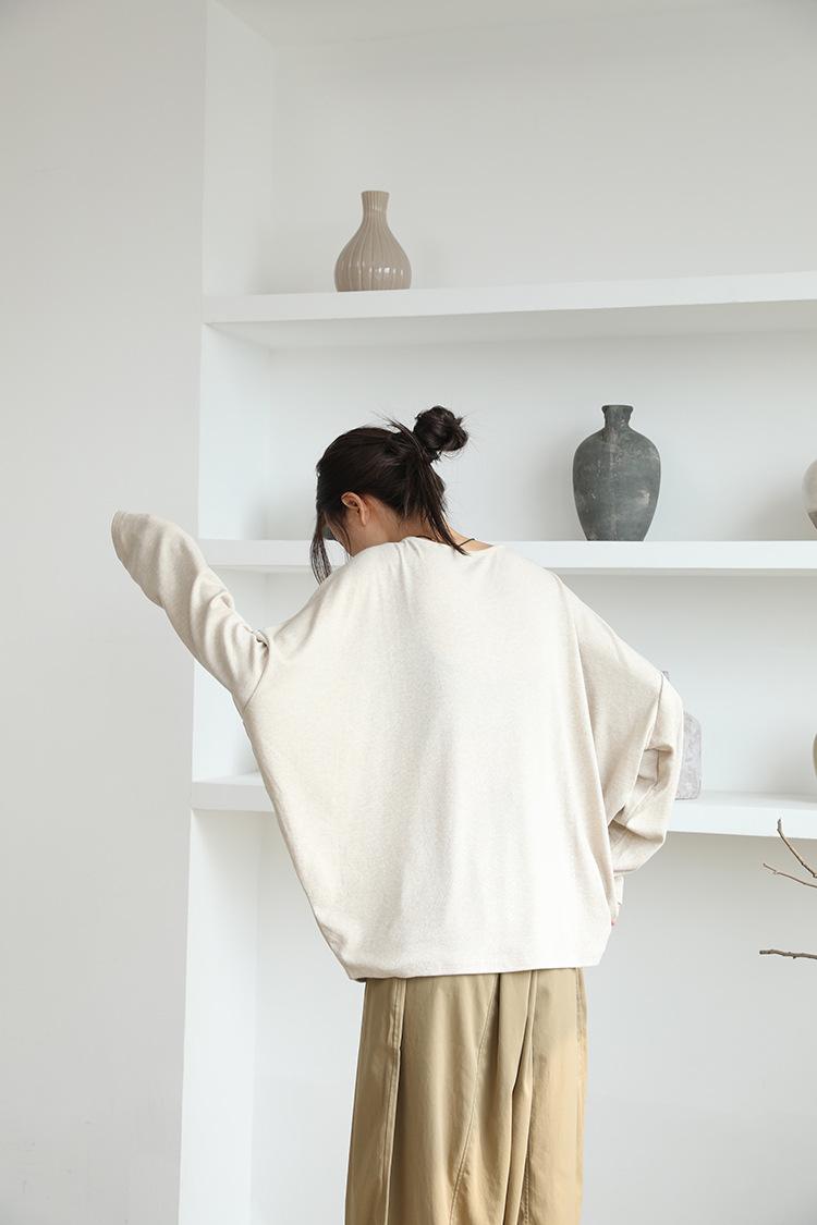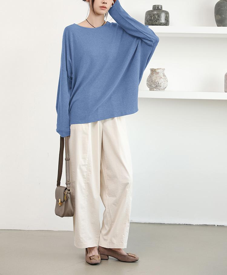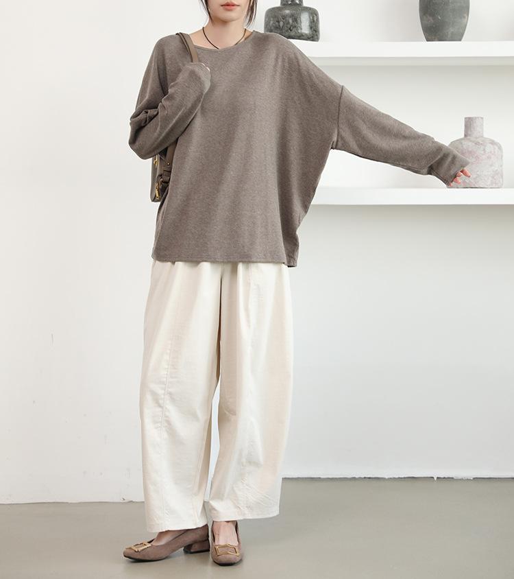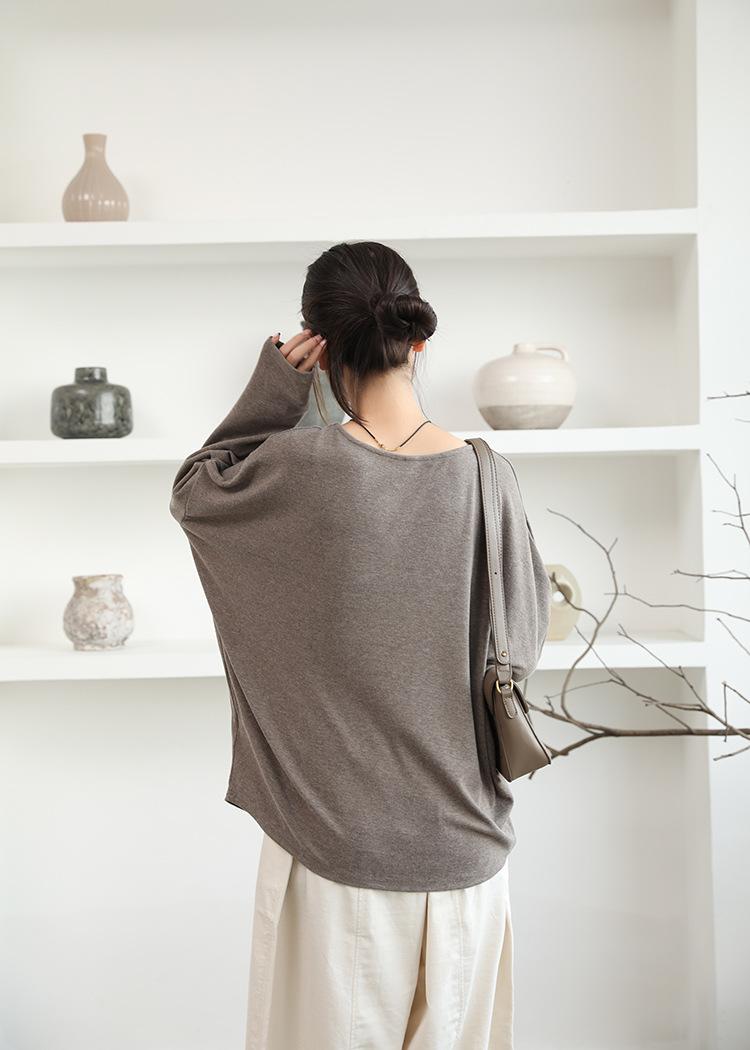 Camiseta japonesa de otoño para mujer, color liso, cuello redondo, manga larga, suelta, básica
