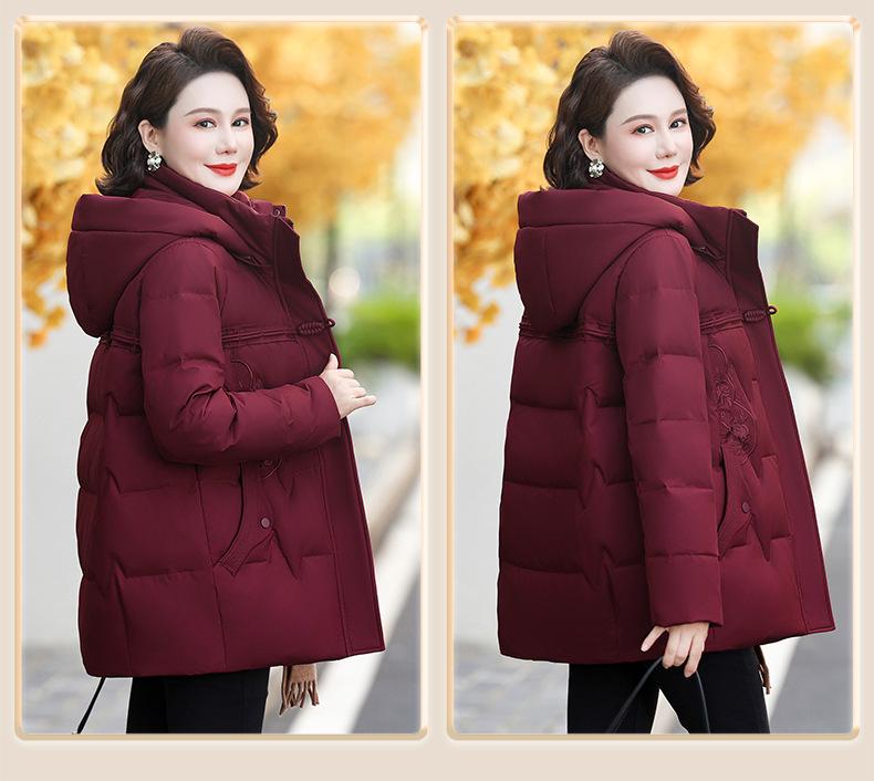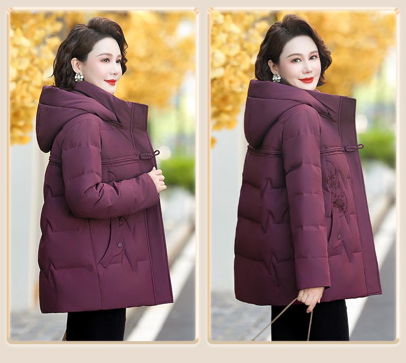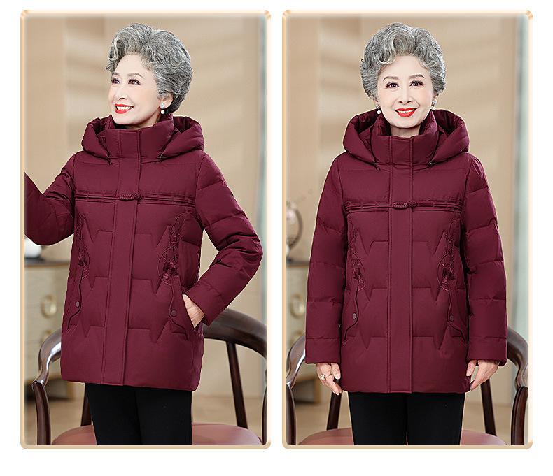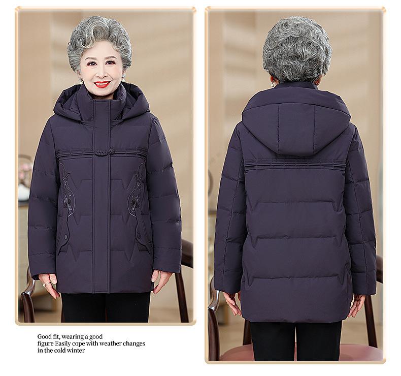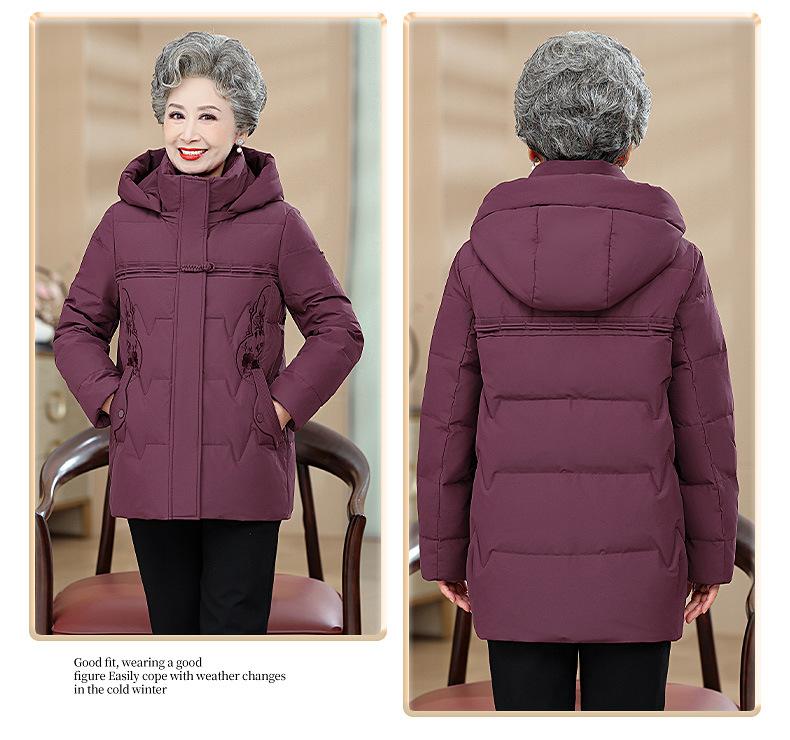 Chamarra de Plumas para Mujer Invierno Nuevo de Madre 2024 Engrosada con Capucha para Mujeres de Mediana Edad y Adultas Mayores Abrigo a Prueba de Frío de Plumón de Pato para Mujer