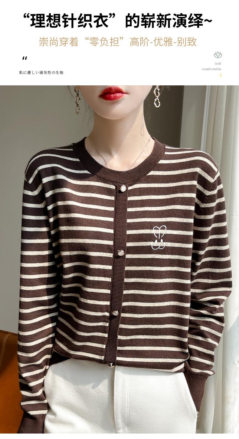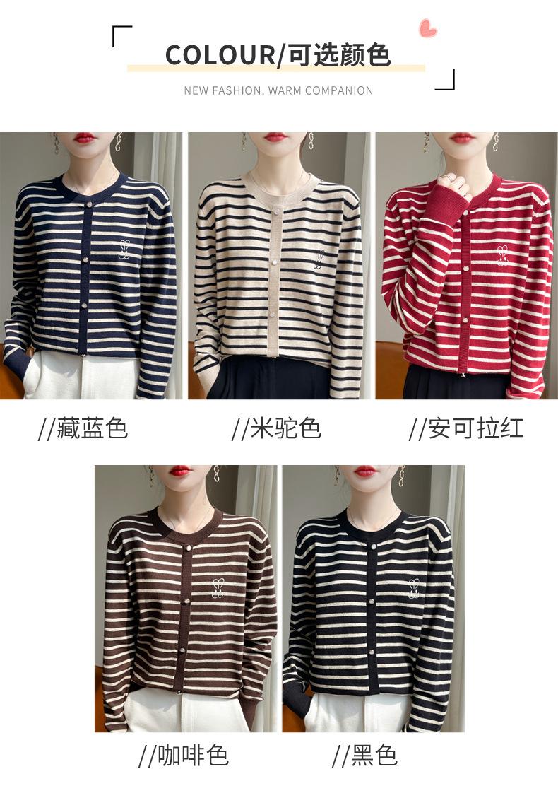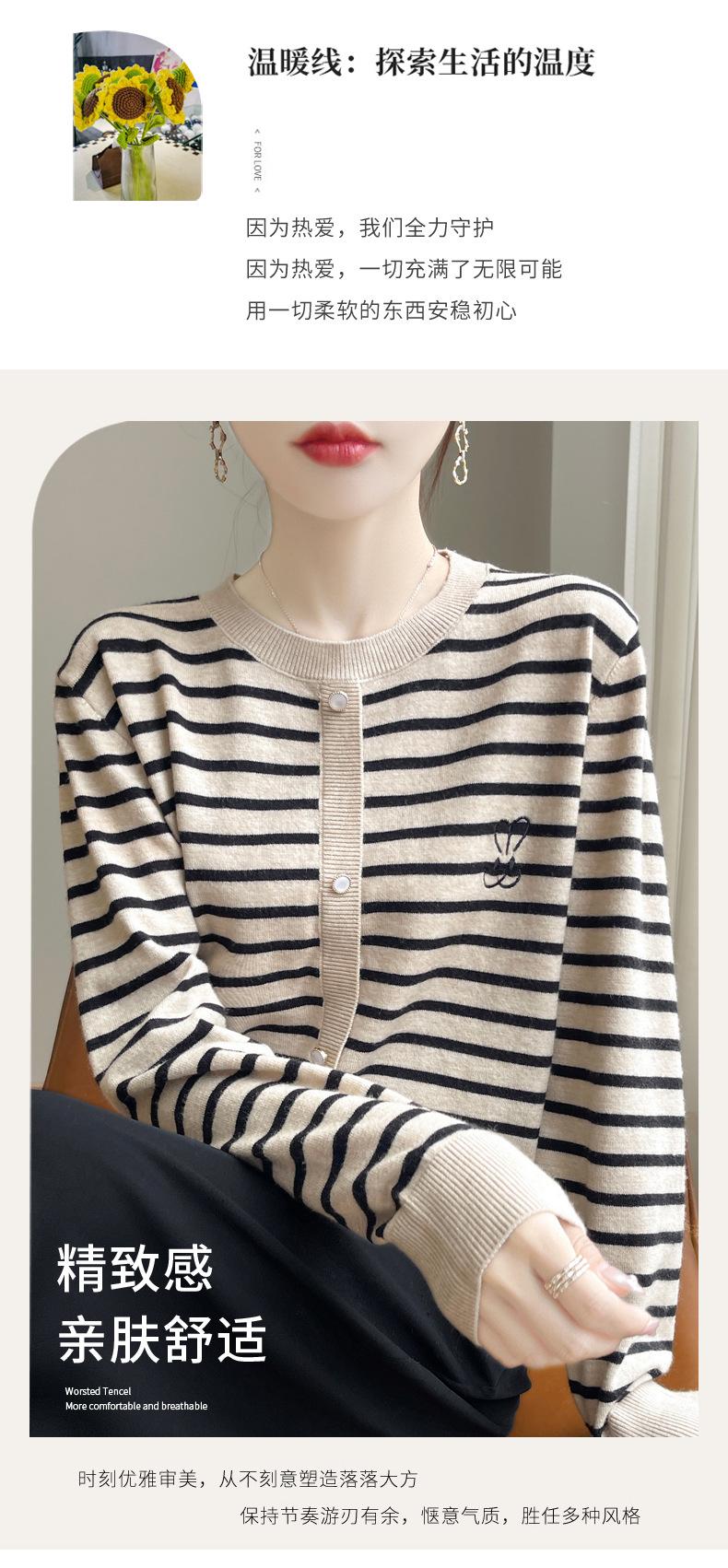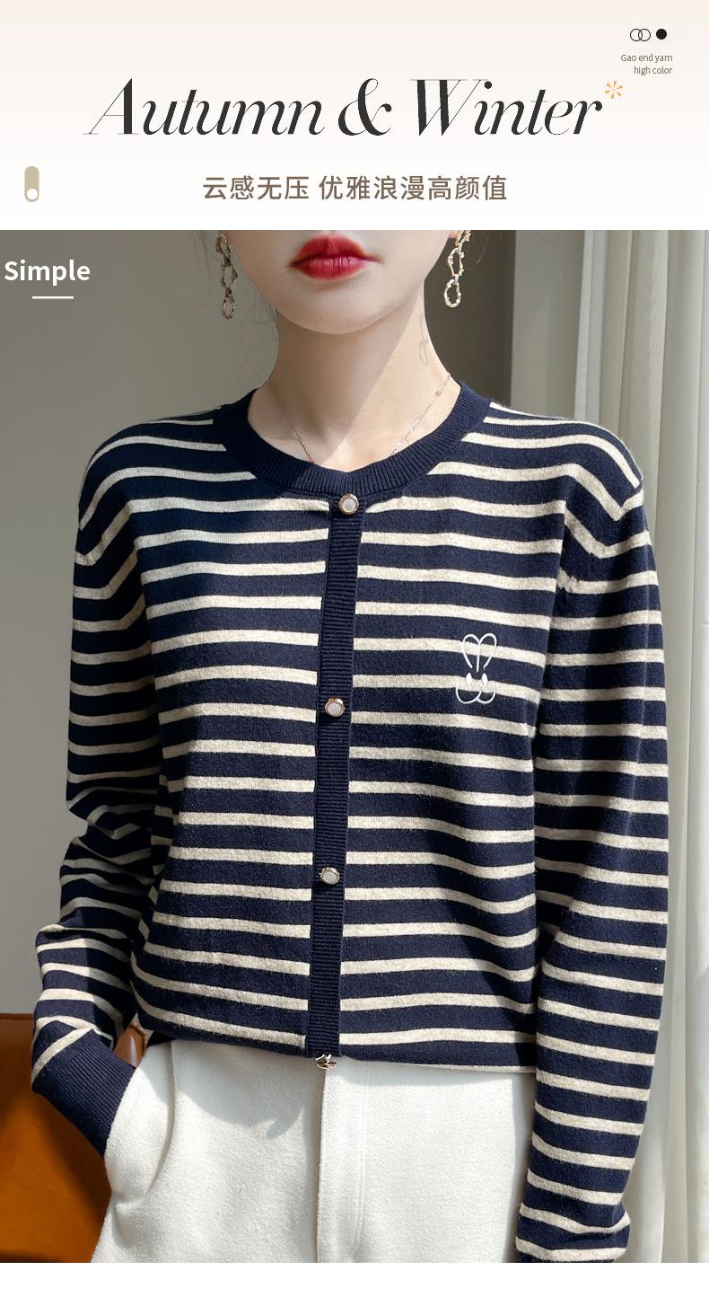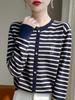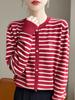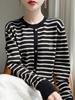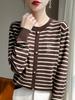 Suéter de punto a rayas para mujer, cárdigan de cuello redondo, informal, holgado, de manga larga y cálido, novedad de 2024