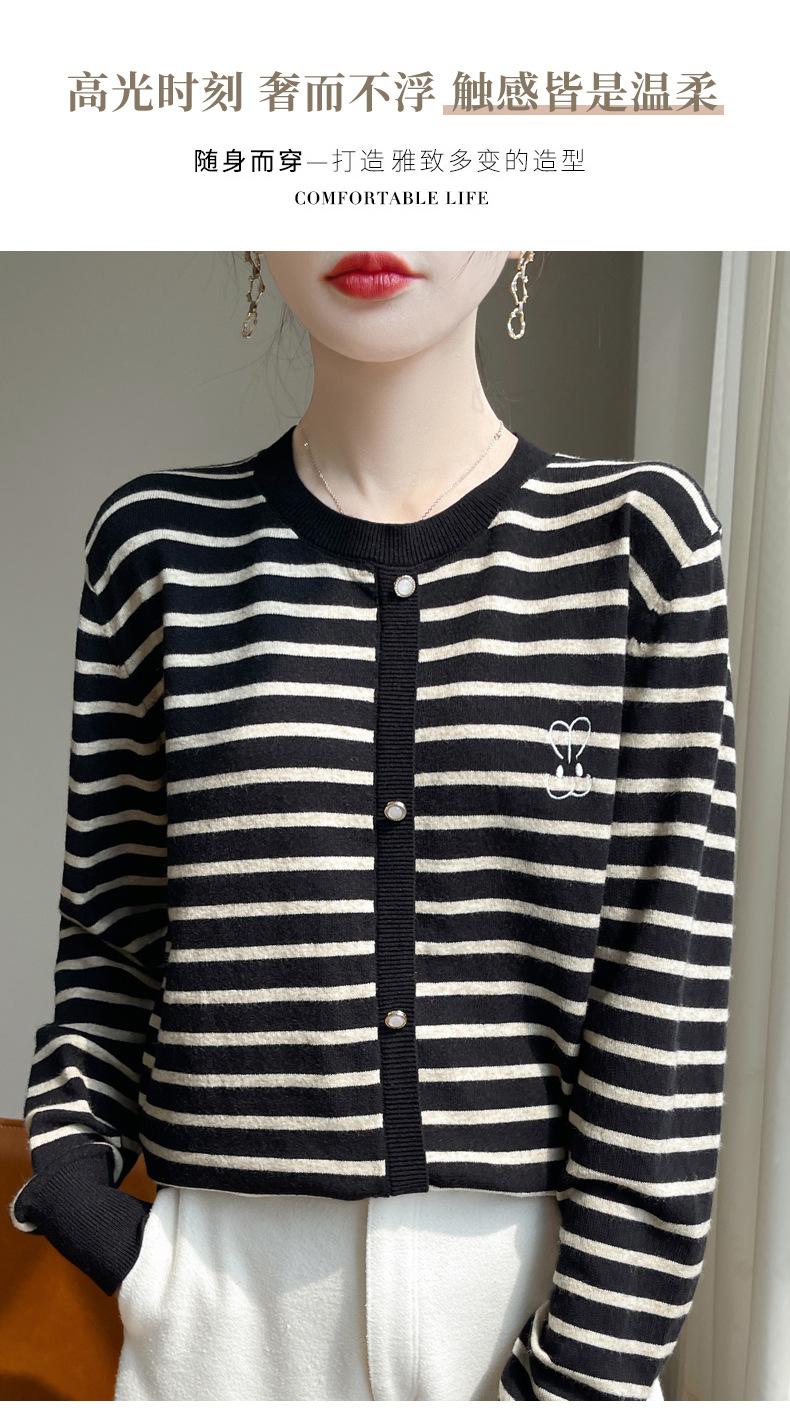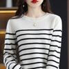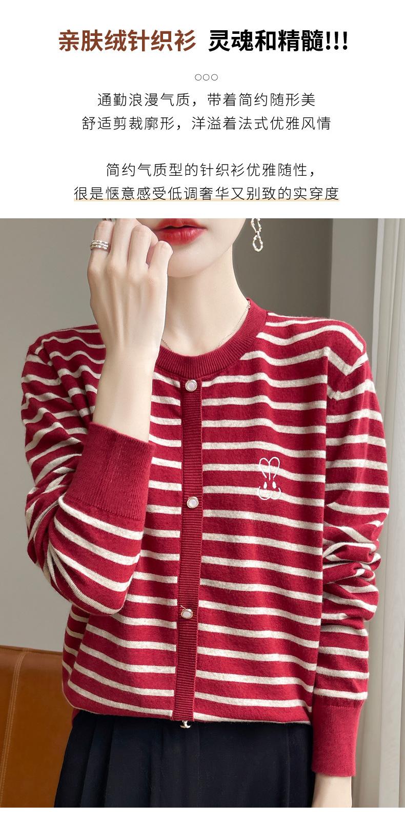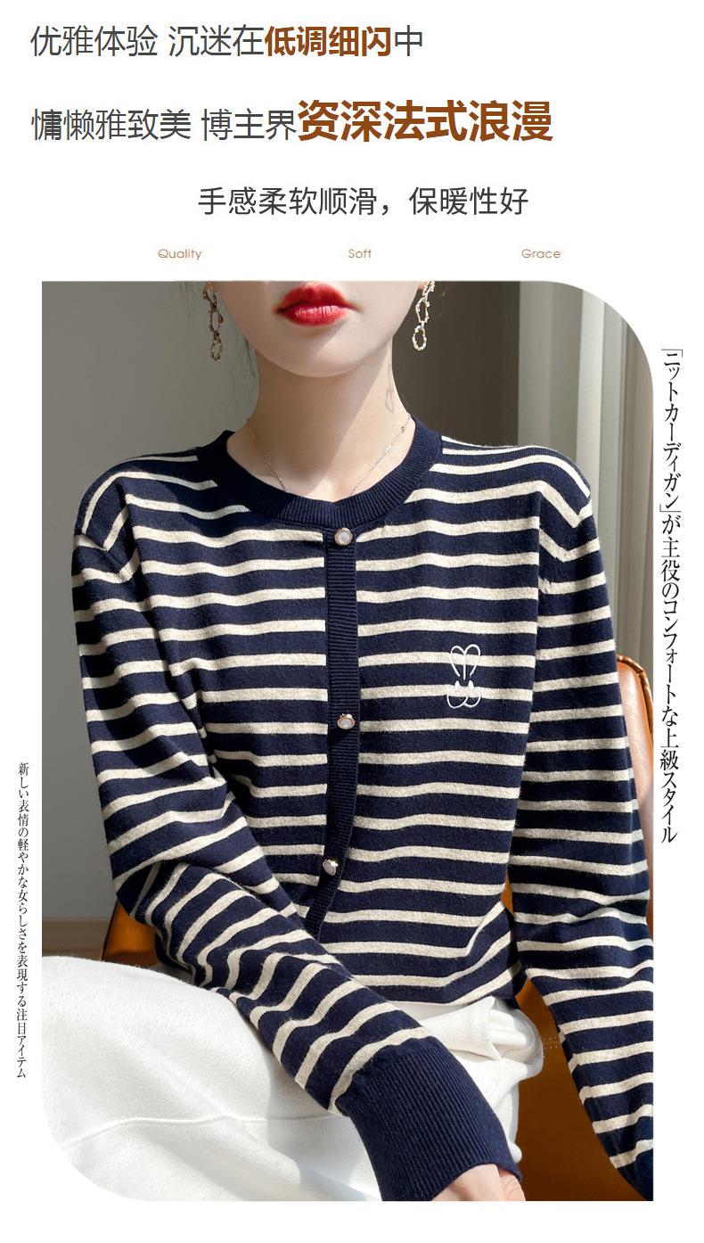 Suéter de punto a rayas para mujer, cárdigan de cuello redondo, informal, holgado, de manga larga y cálido, novedad de 2024