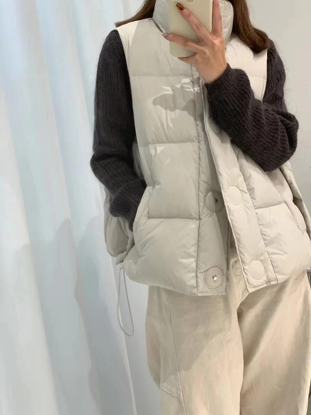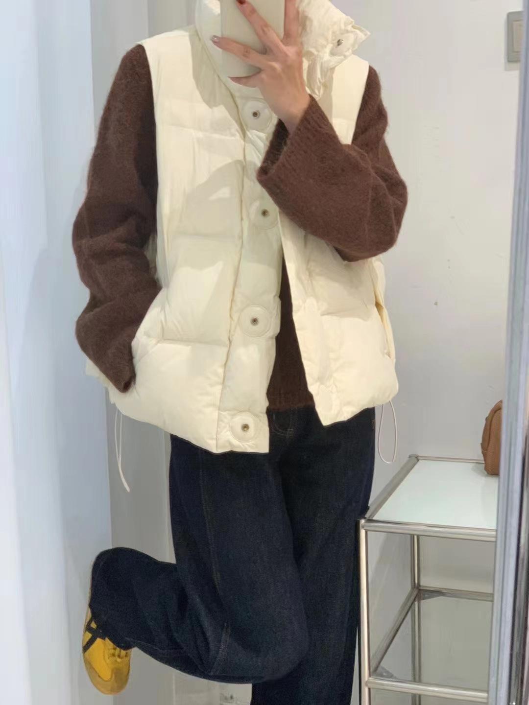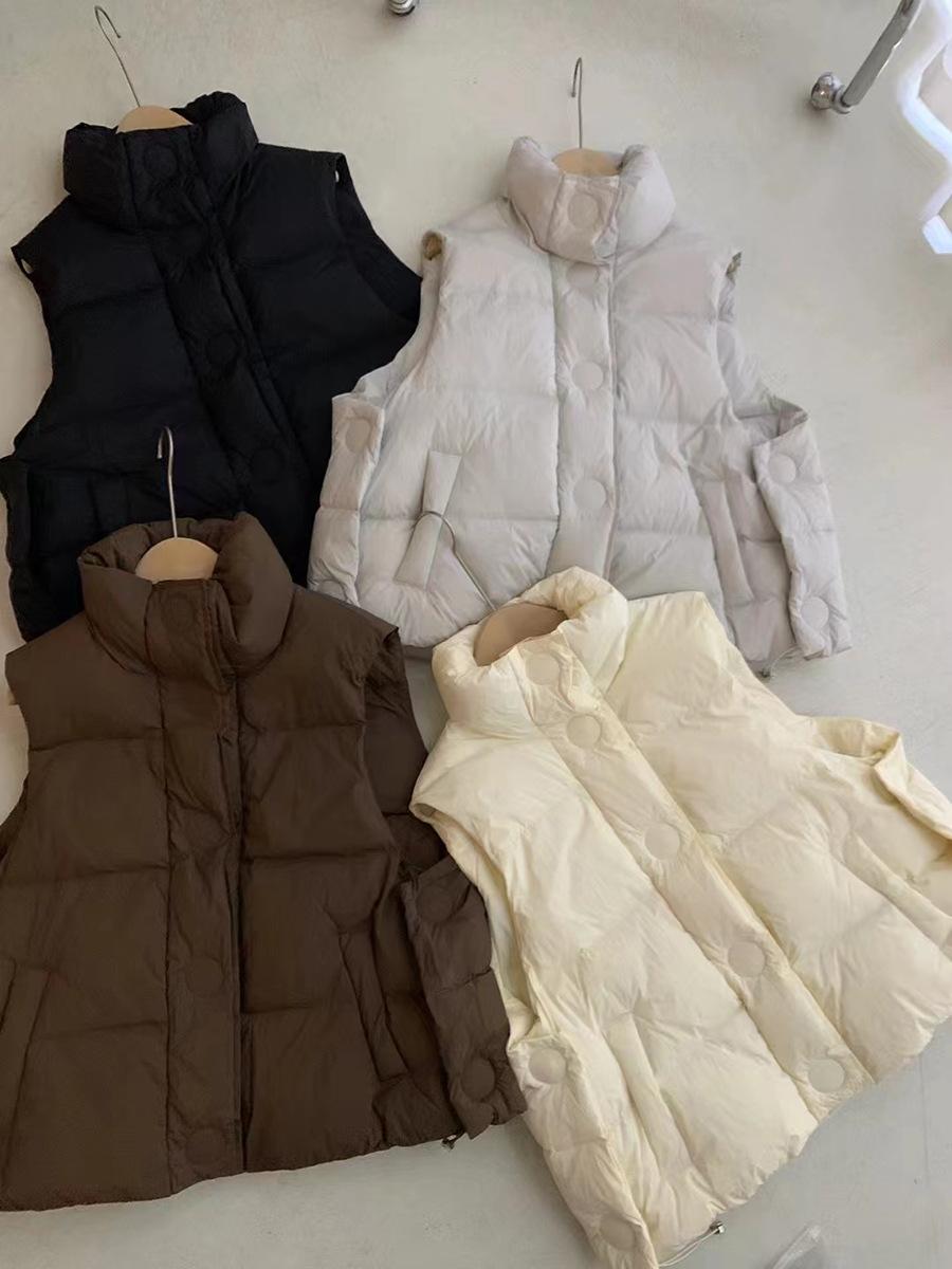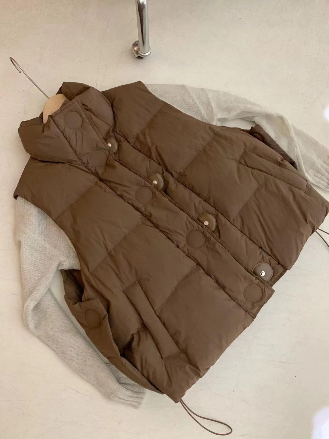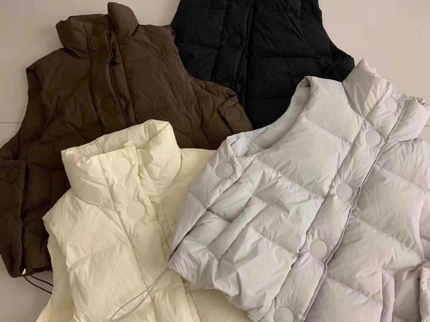 Chaleco de plumón de ganso para mujer 2025 Otoño e Invierno Moda Cuello alto con botón de bolsa Ligero Estilo coreano Ropa exterior pequeña Chaleco elegante