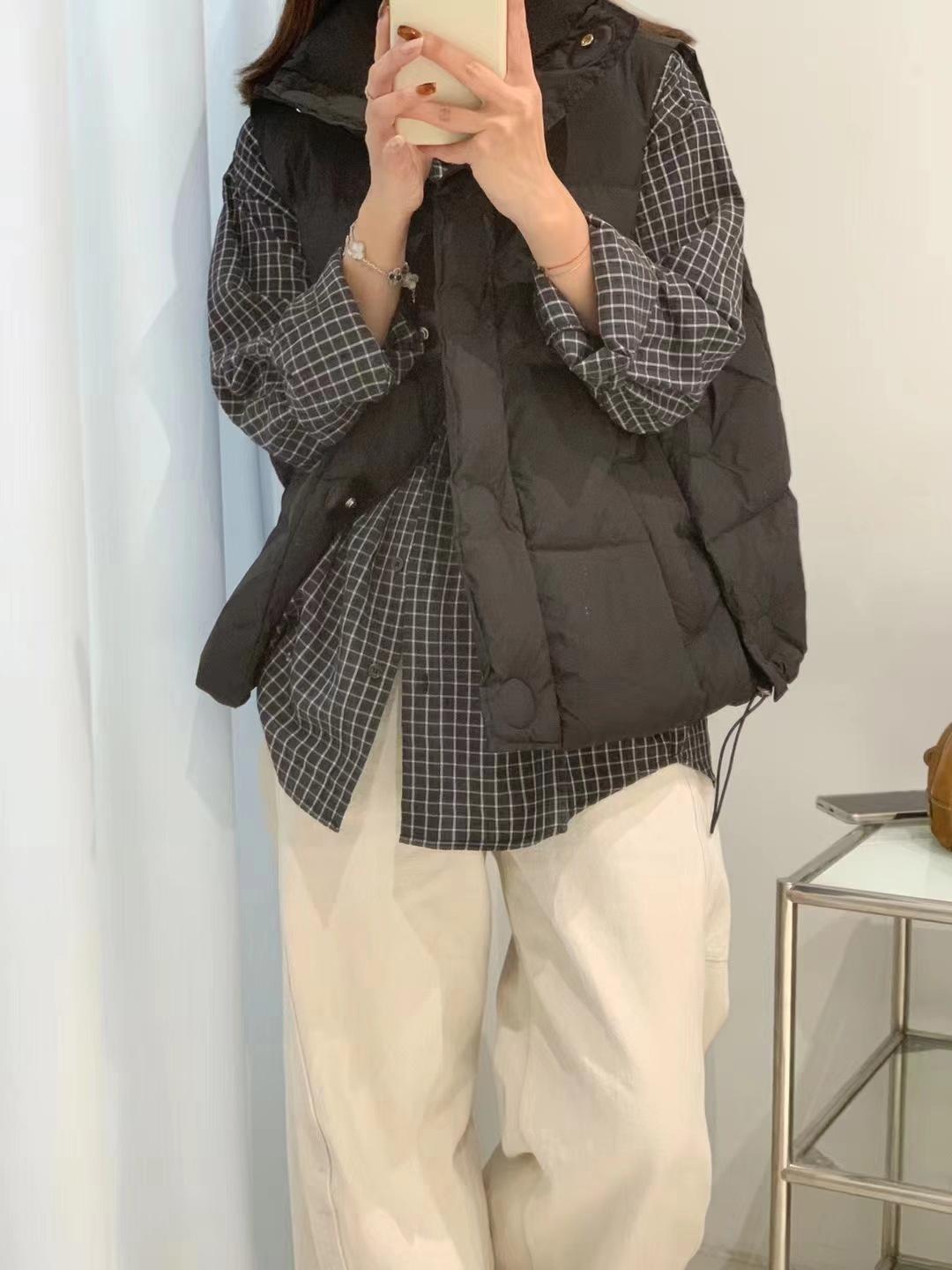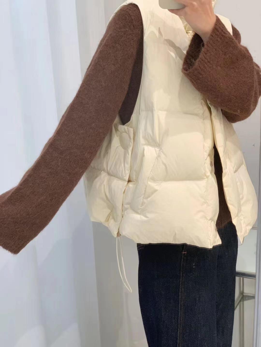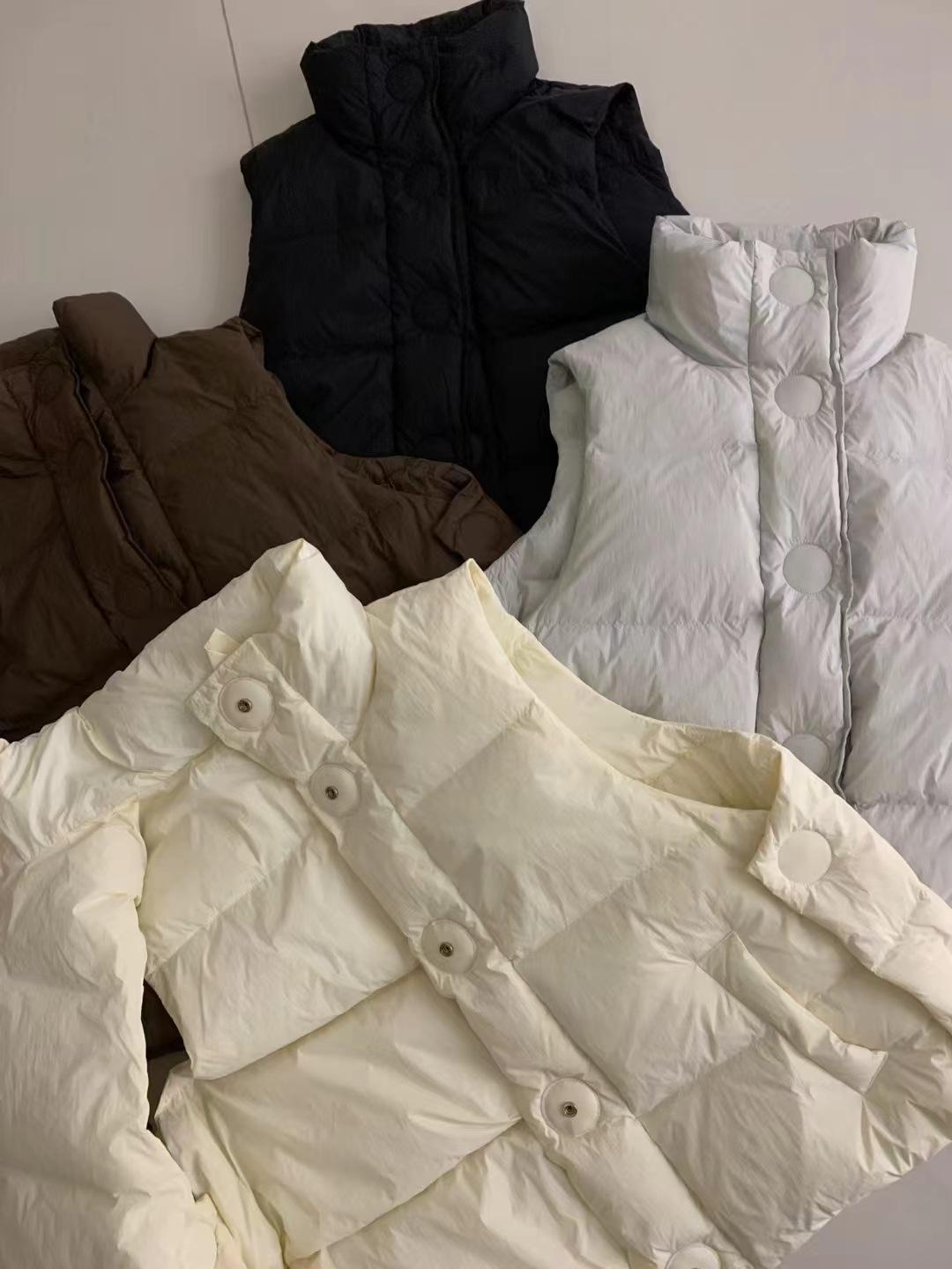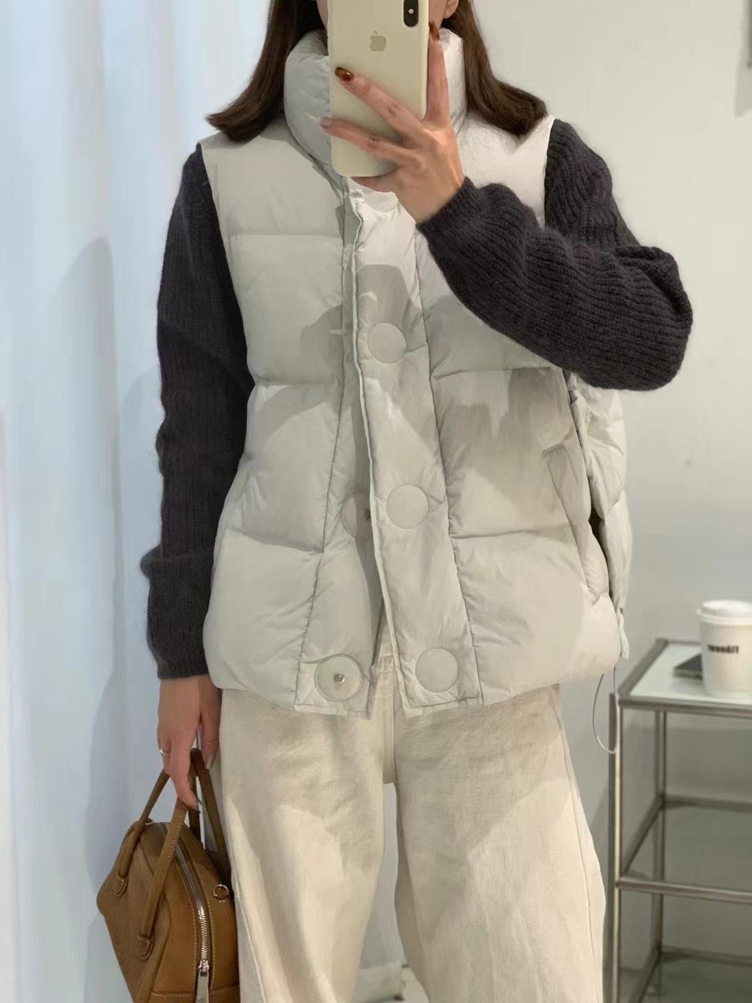 Chaleco de plumón de ganso para mujer 2025 Otoño e Invierno Moda Cuello alto con botón de bolsa Ligero Estilo coreano Ropa exterior pequeña Chaleco elegante