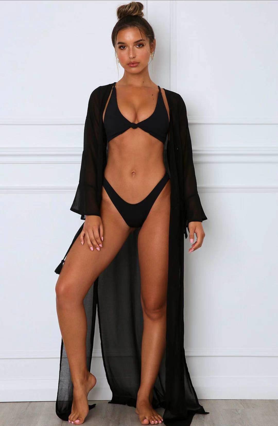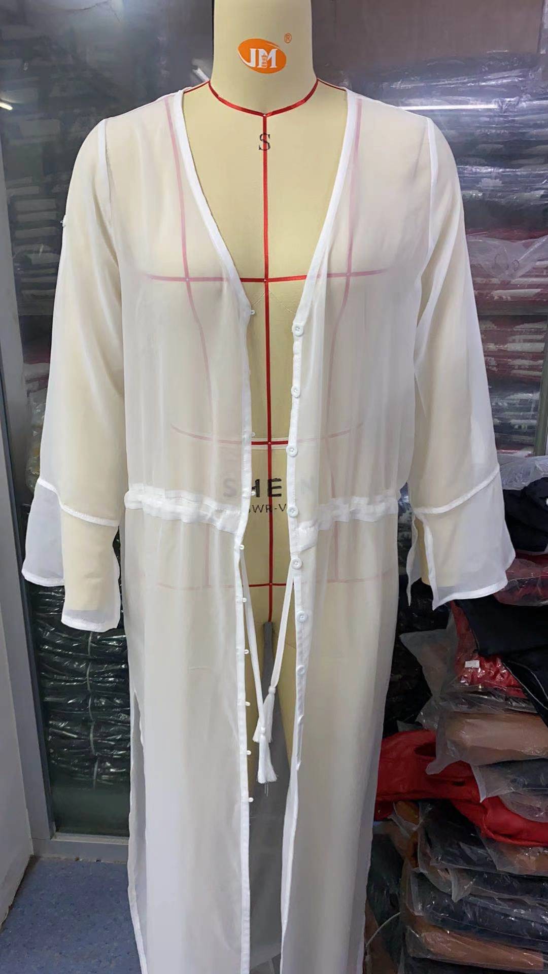 Cárdigan de gasa con botones arrugados y protector solar, estilo europeo y americano, blusa de bikini, traje de baño, chaqueta de playa exterior, falda de vacaciones para mujer