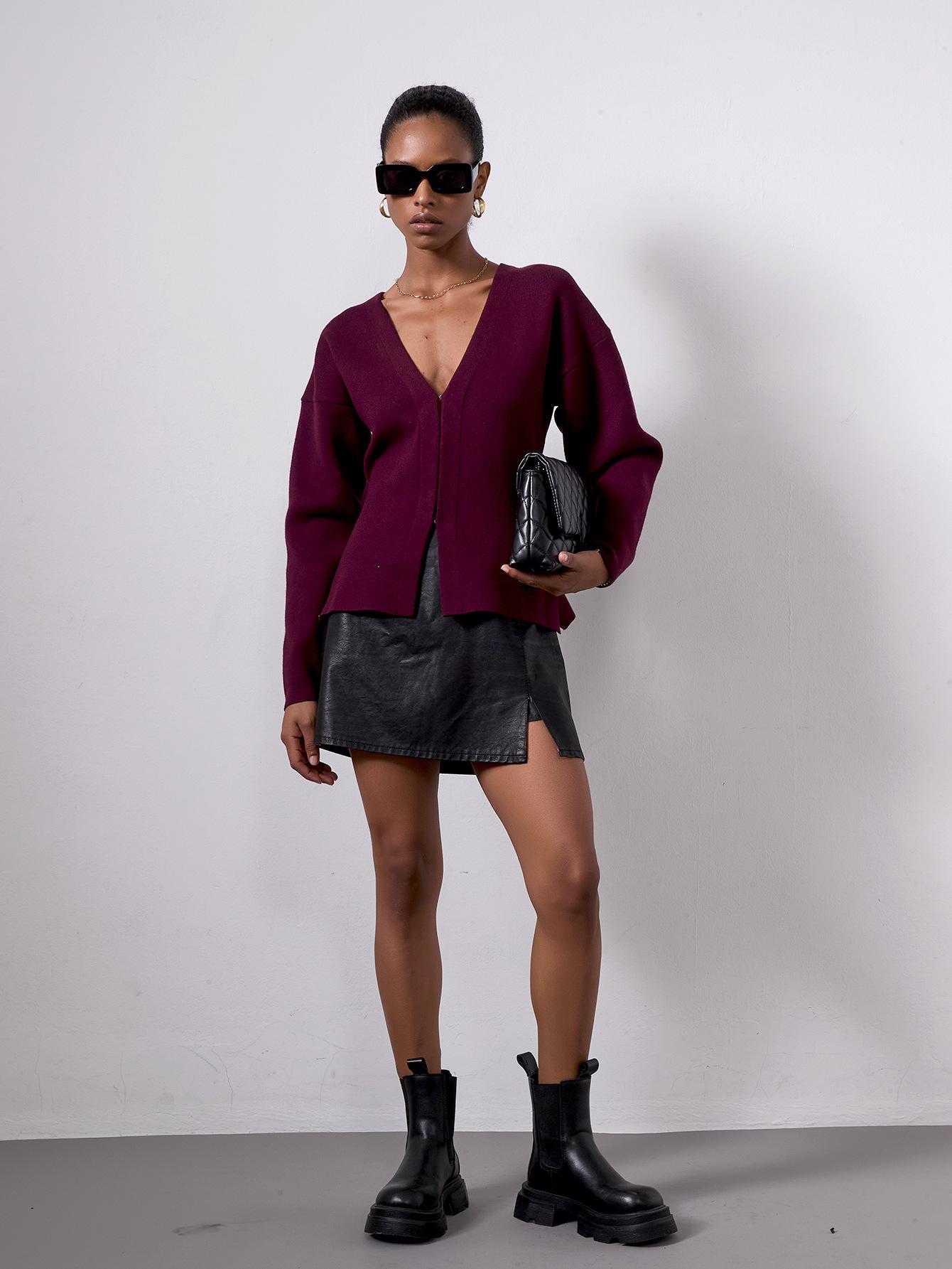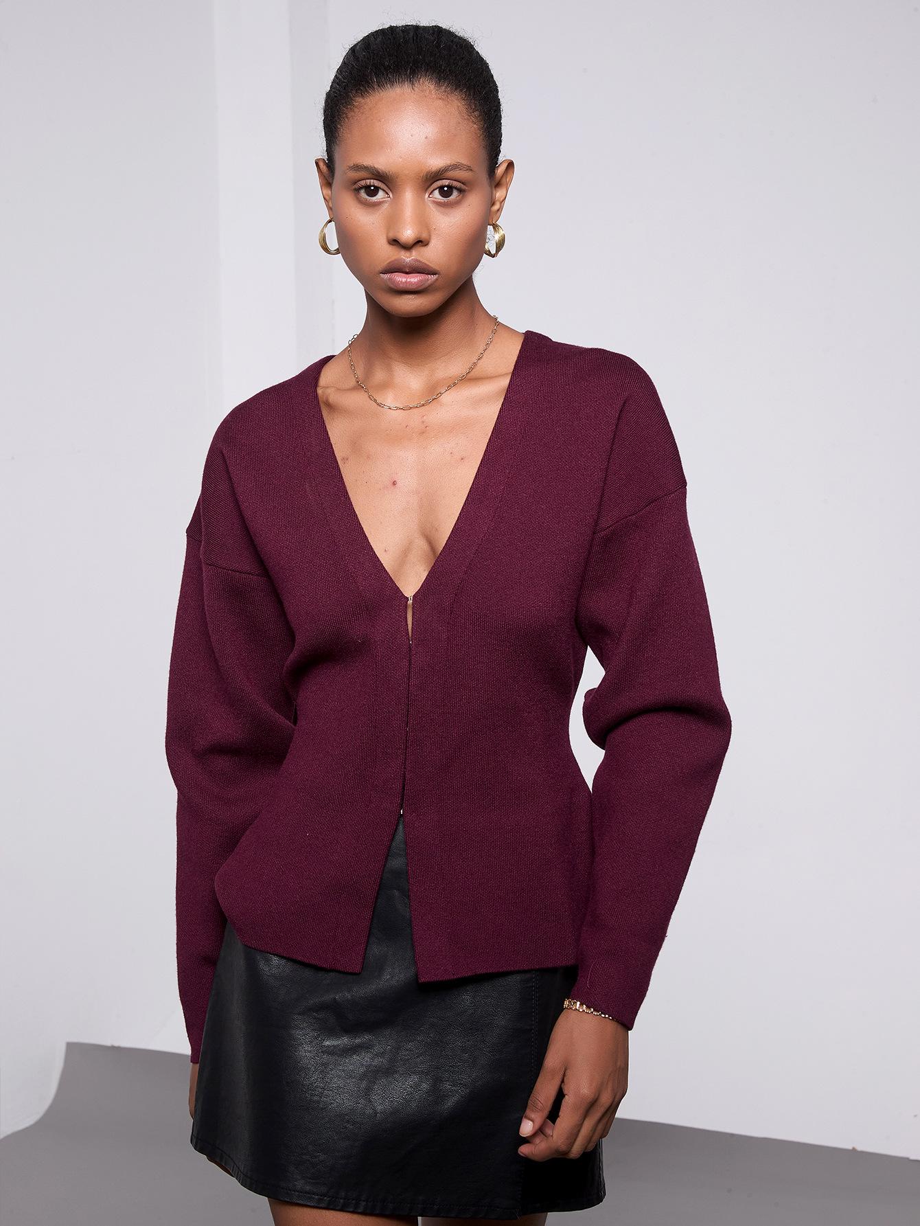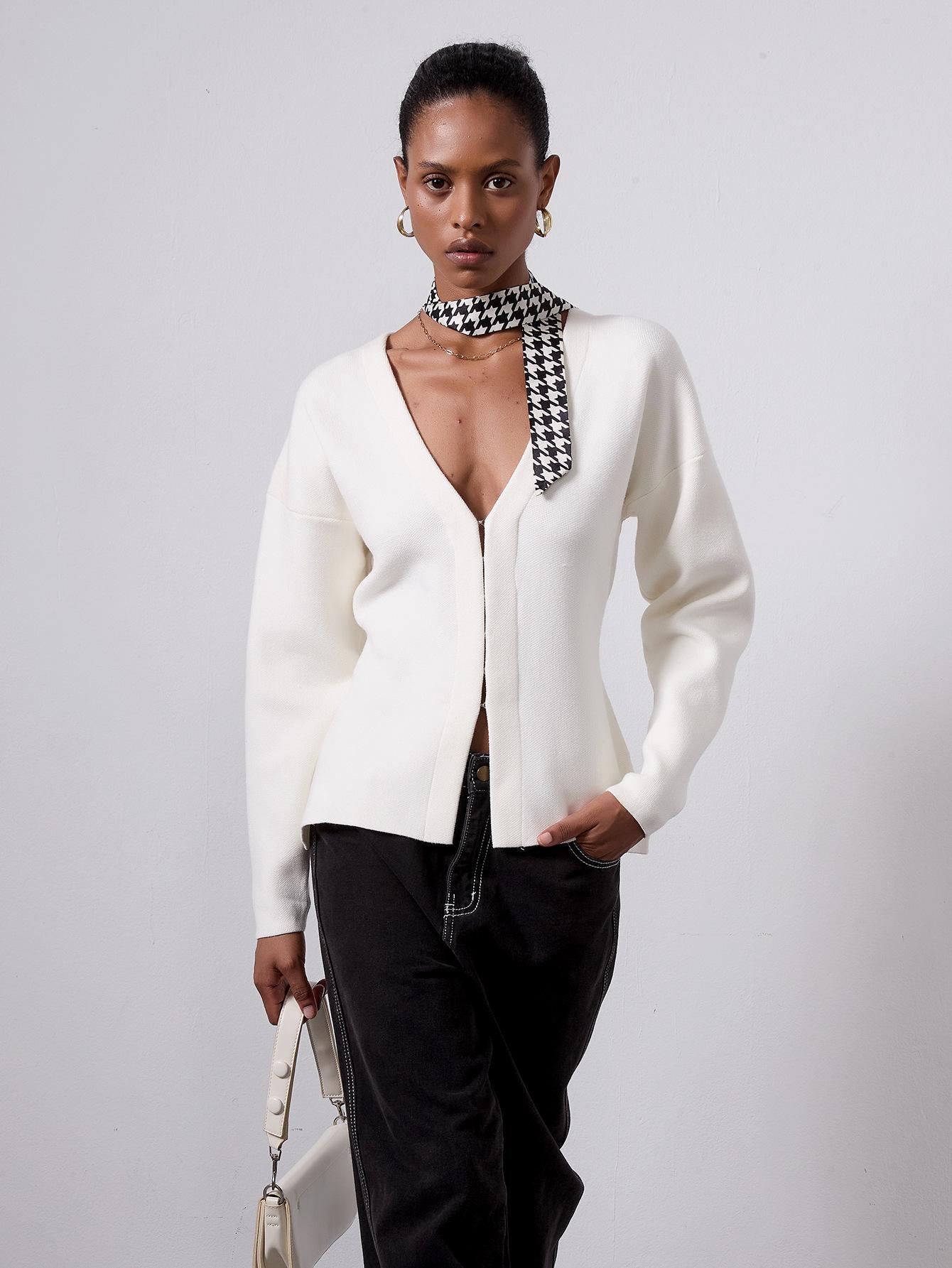 Comercio electrónico transfronterizo de ropa de mujer al por mayor, cárdigan de punto de moda europea y americana, abrigo de suéter adelgazante con cuello en V y cintura de otoño
