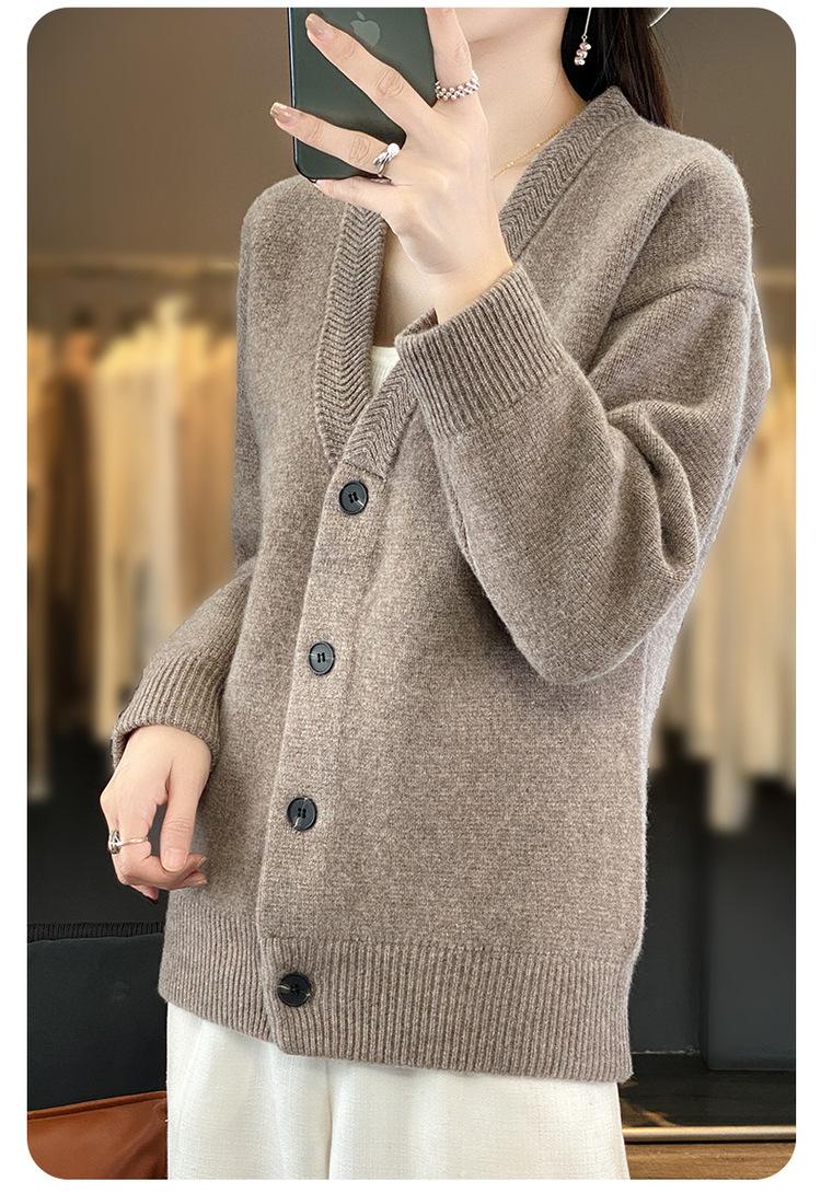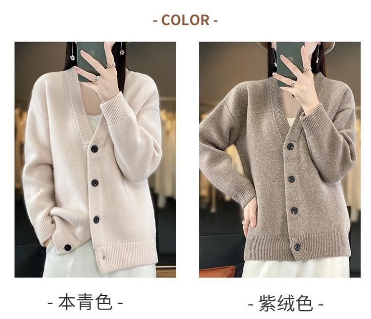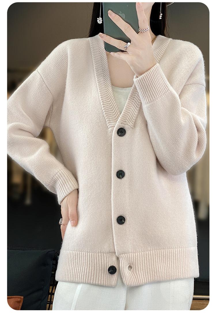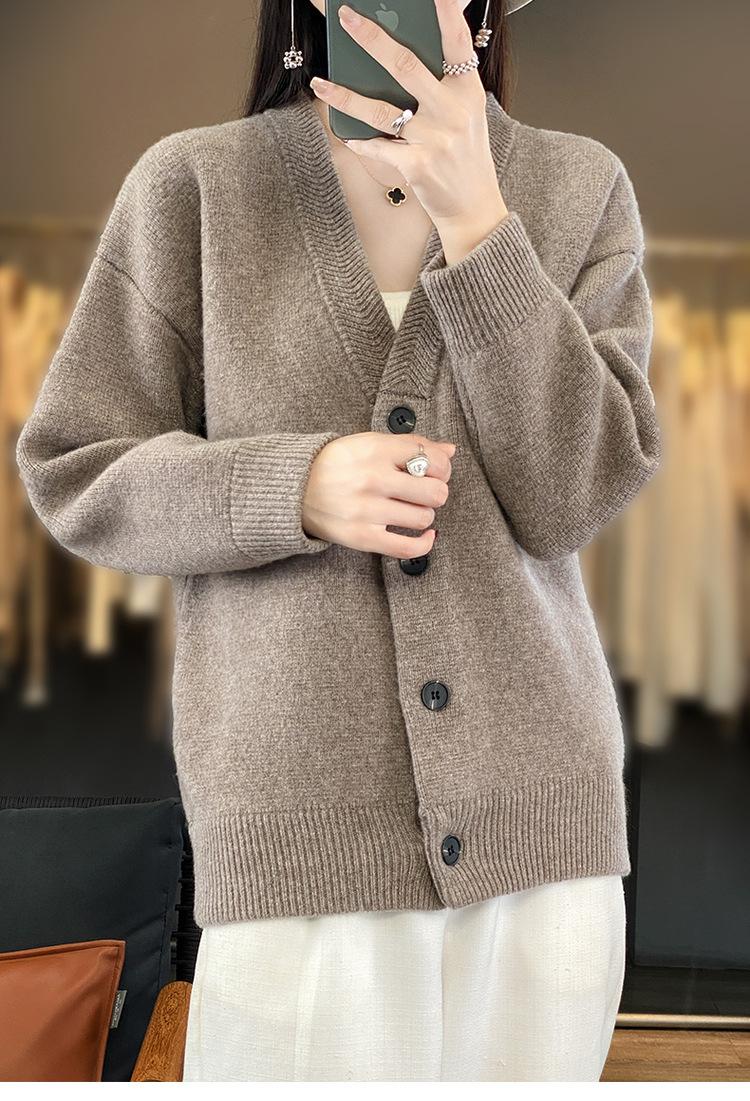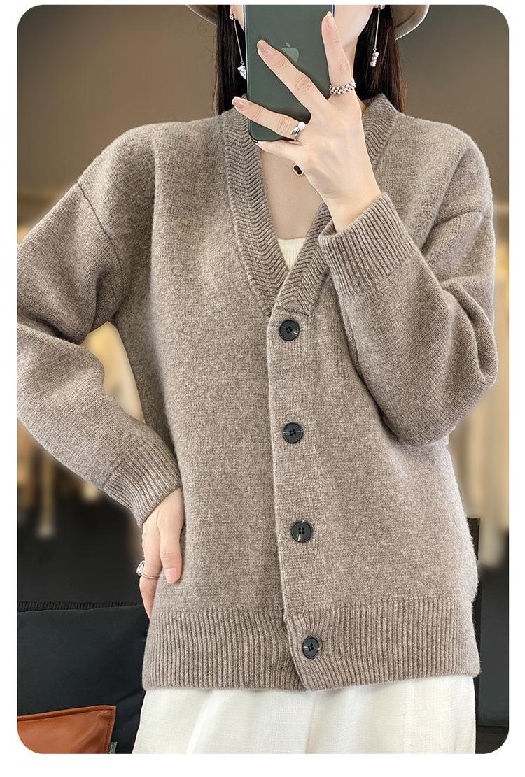 Cárdigan de lana de color liso, chaqueta holgada de punto grueso para mujer, top holgado que combina con todo, suéter 2024