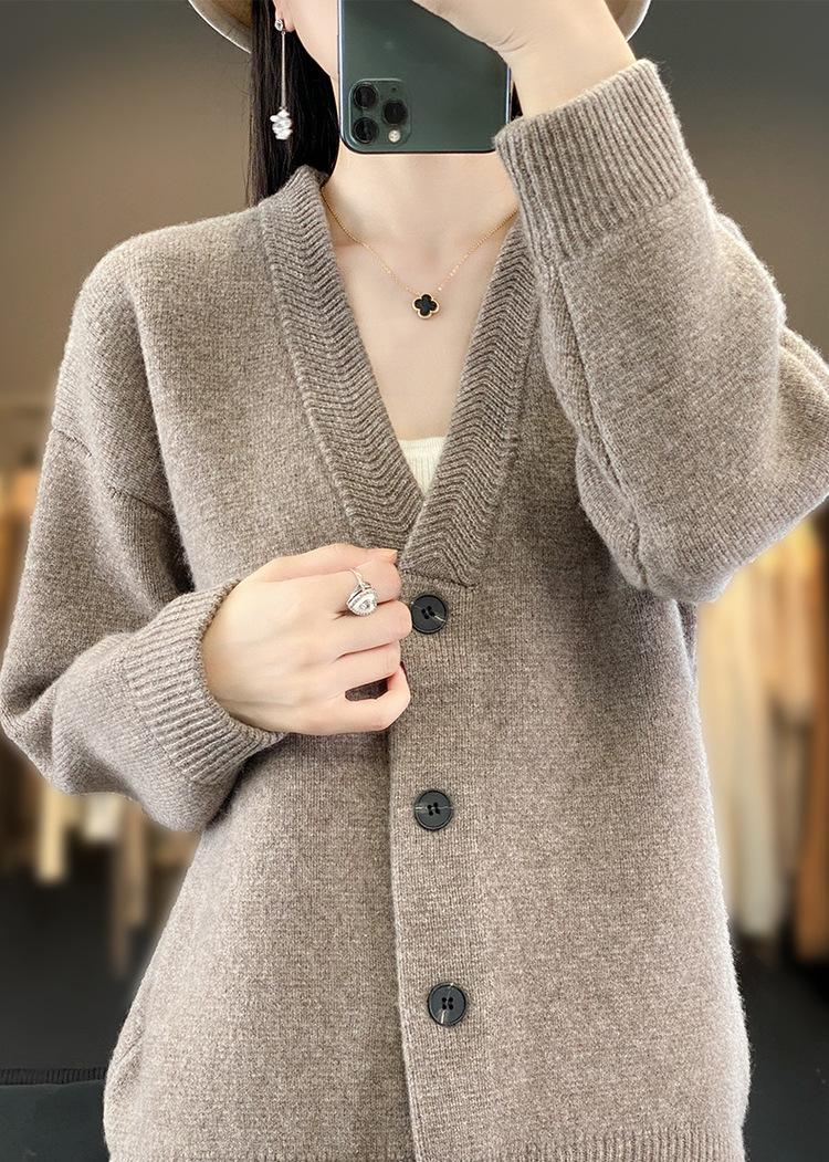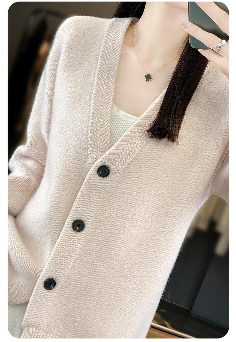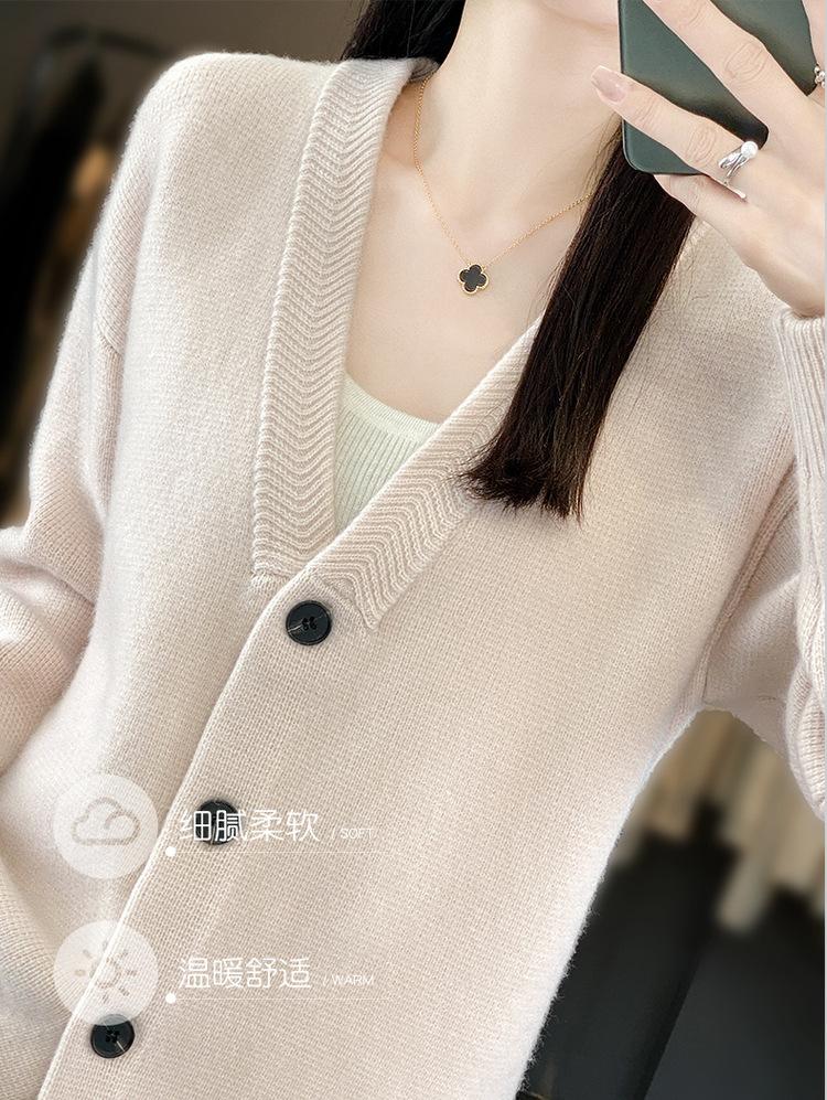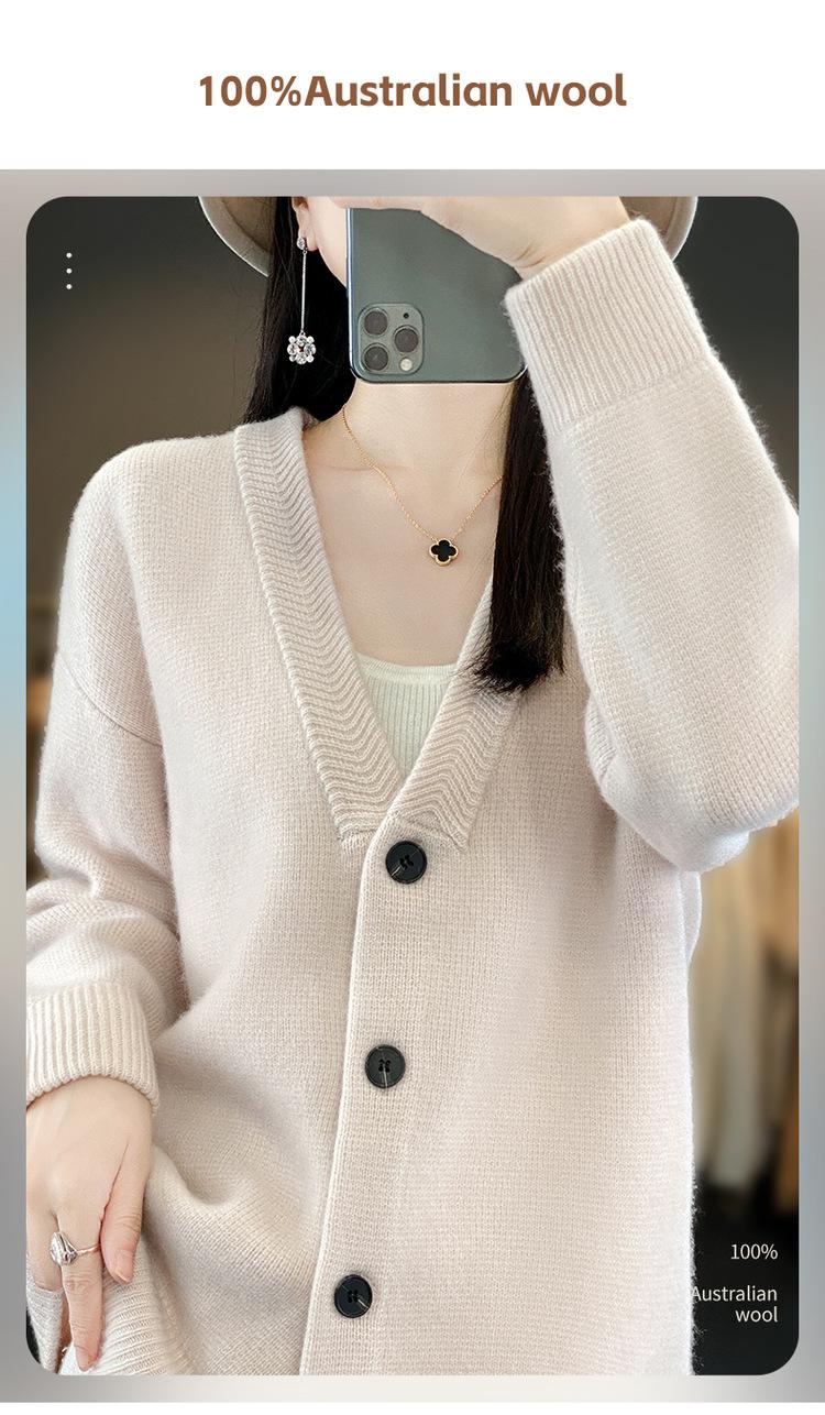 Cárdigan de lana de color liso, chaqueta holgada de punto grueso para mujer, top holgado que combina con todo, suéter 2024
