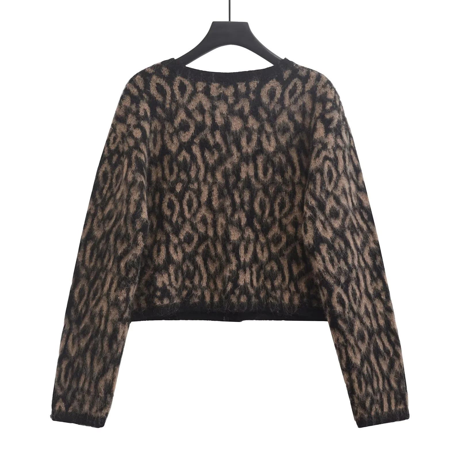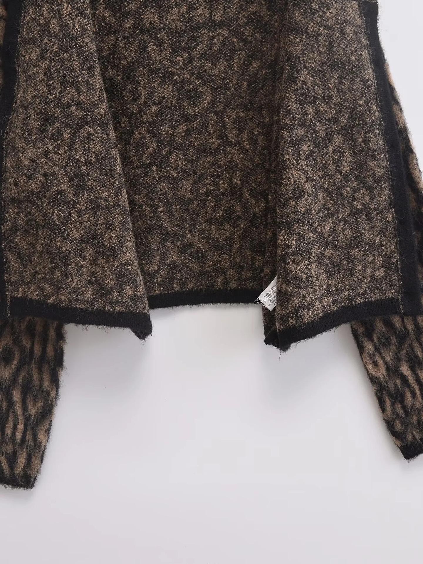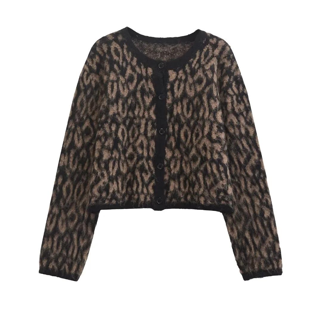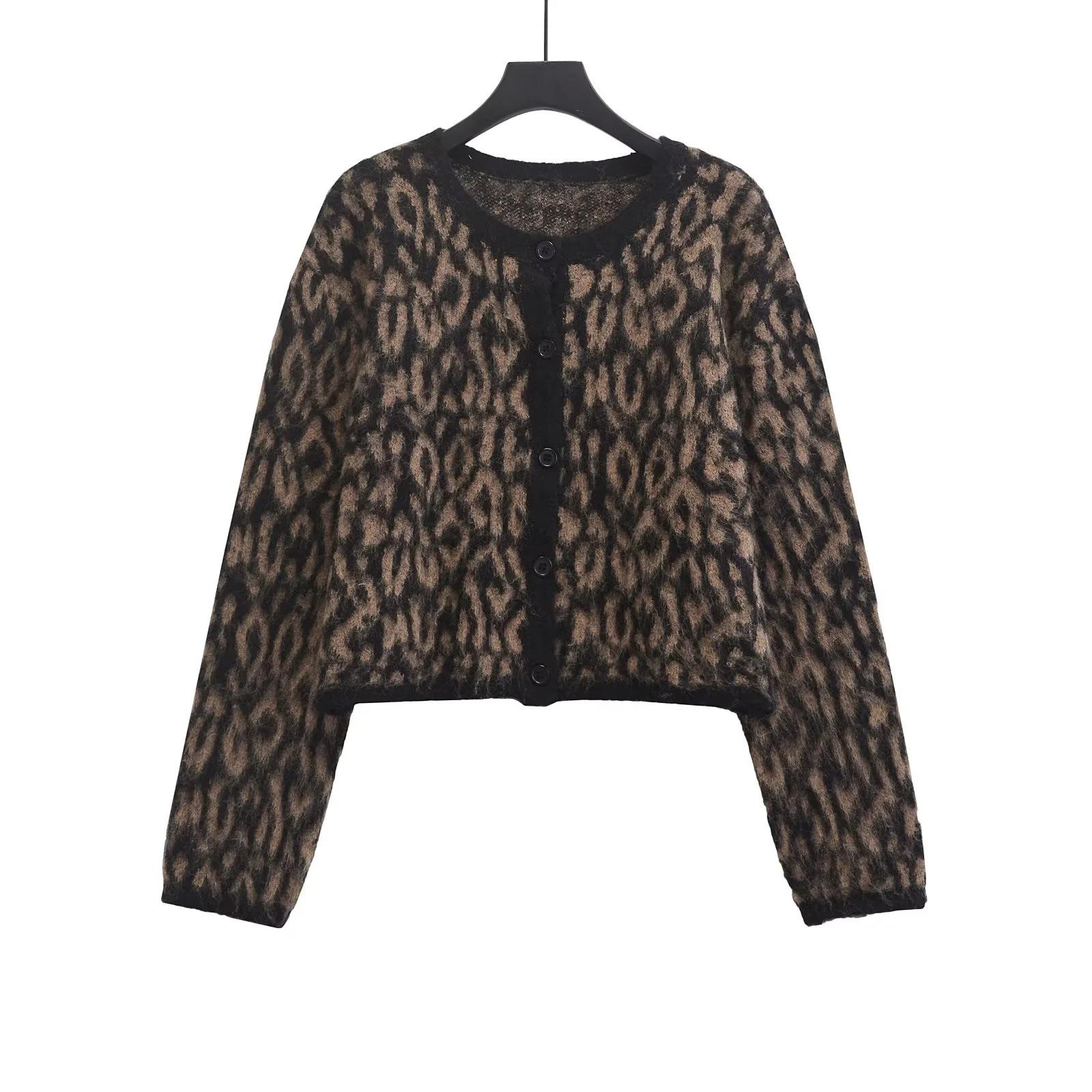 Ropa Europea y Americana Transfronteriza, Cárdigan de Punto con Estampado de Leopardo Superventas en Aliexpress, Suelto, Adelgazante, Moderno y Versátil
