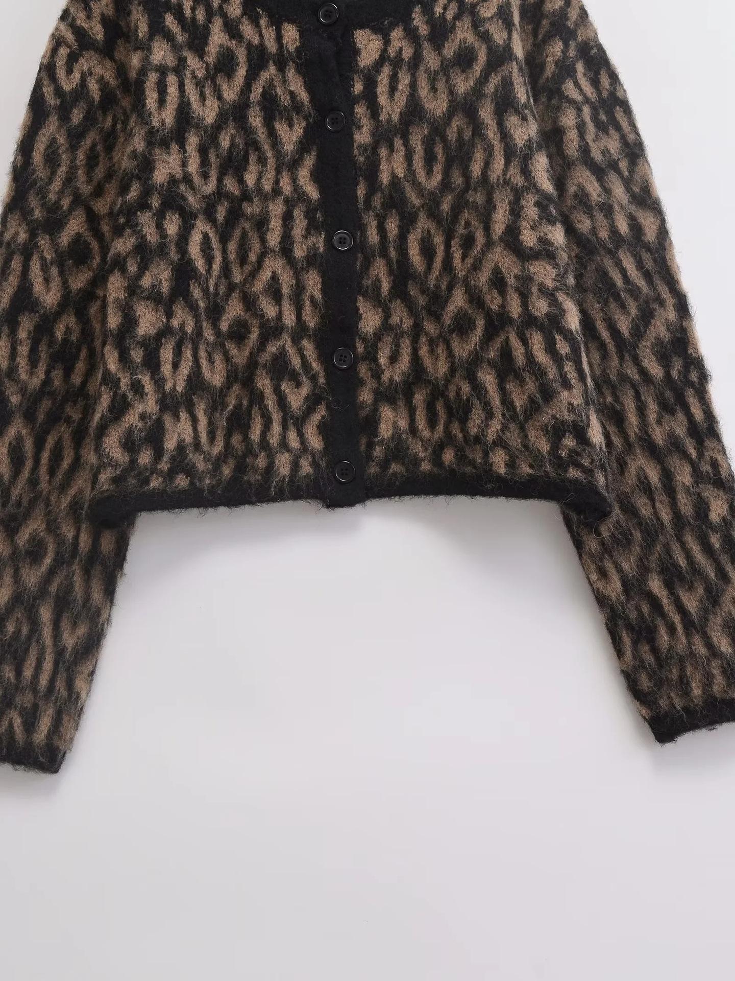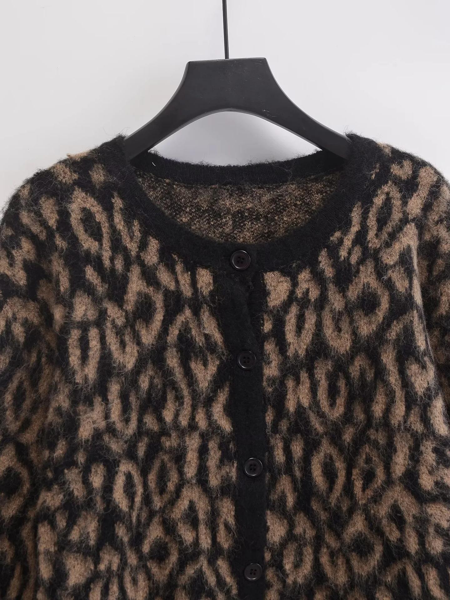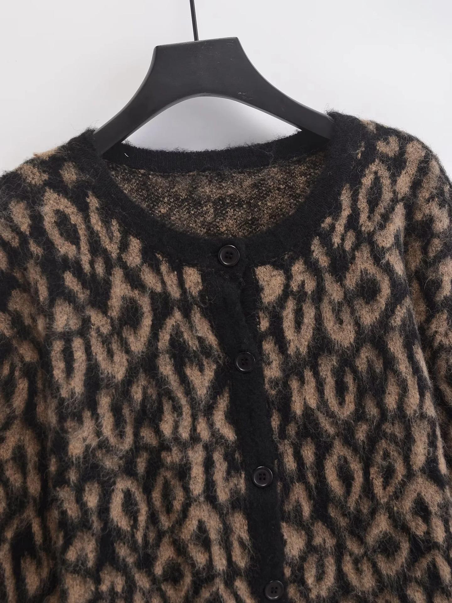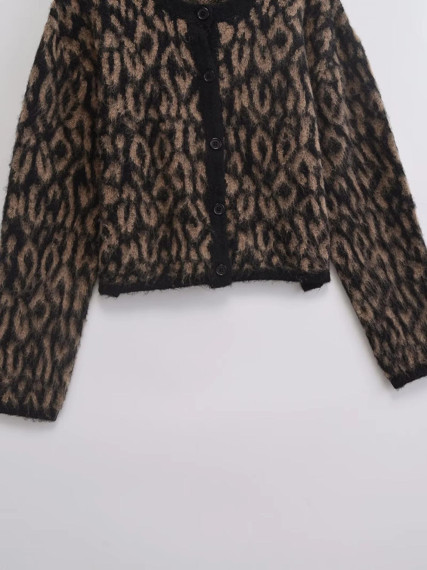 Ropa Europea y Americana Transfronteriza, Cárdigan de Punto con Estampado de Leopardo Superventas en Aliexpress, Suelto, Adelgazante, Moderno y Versátil