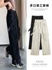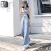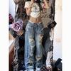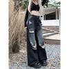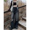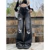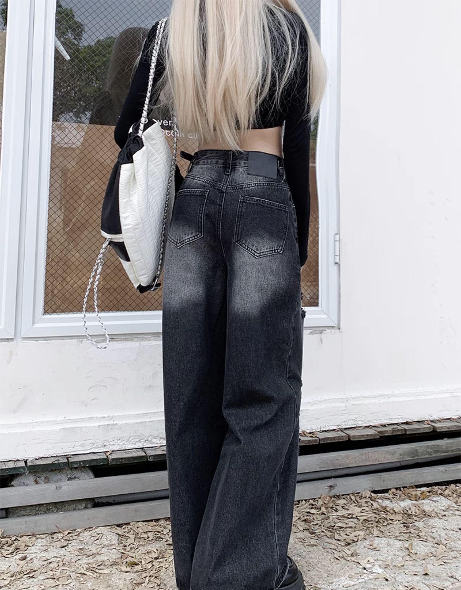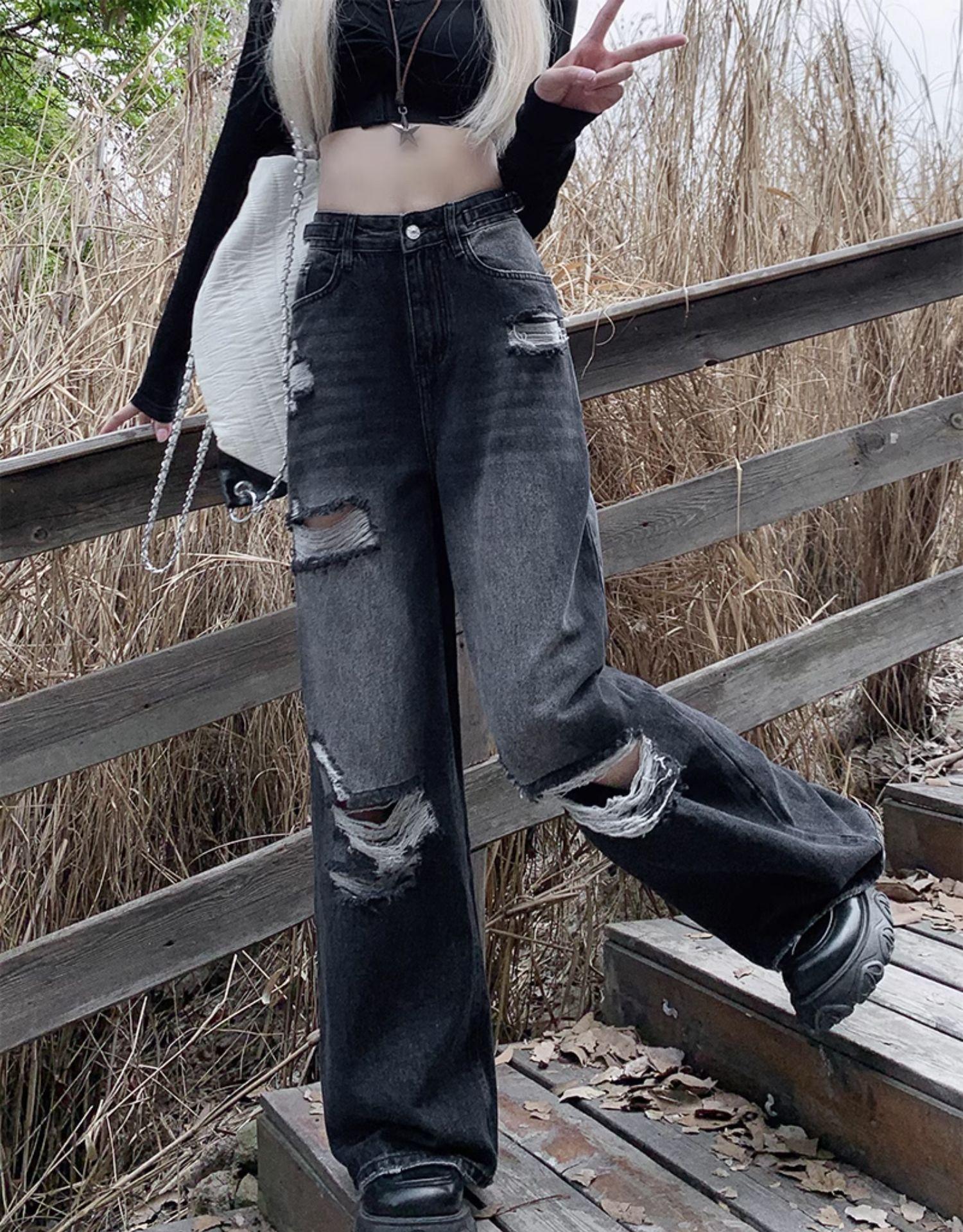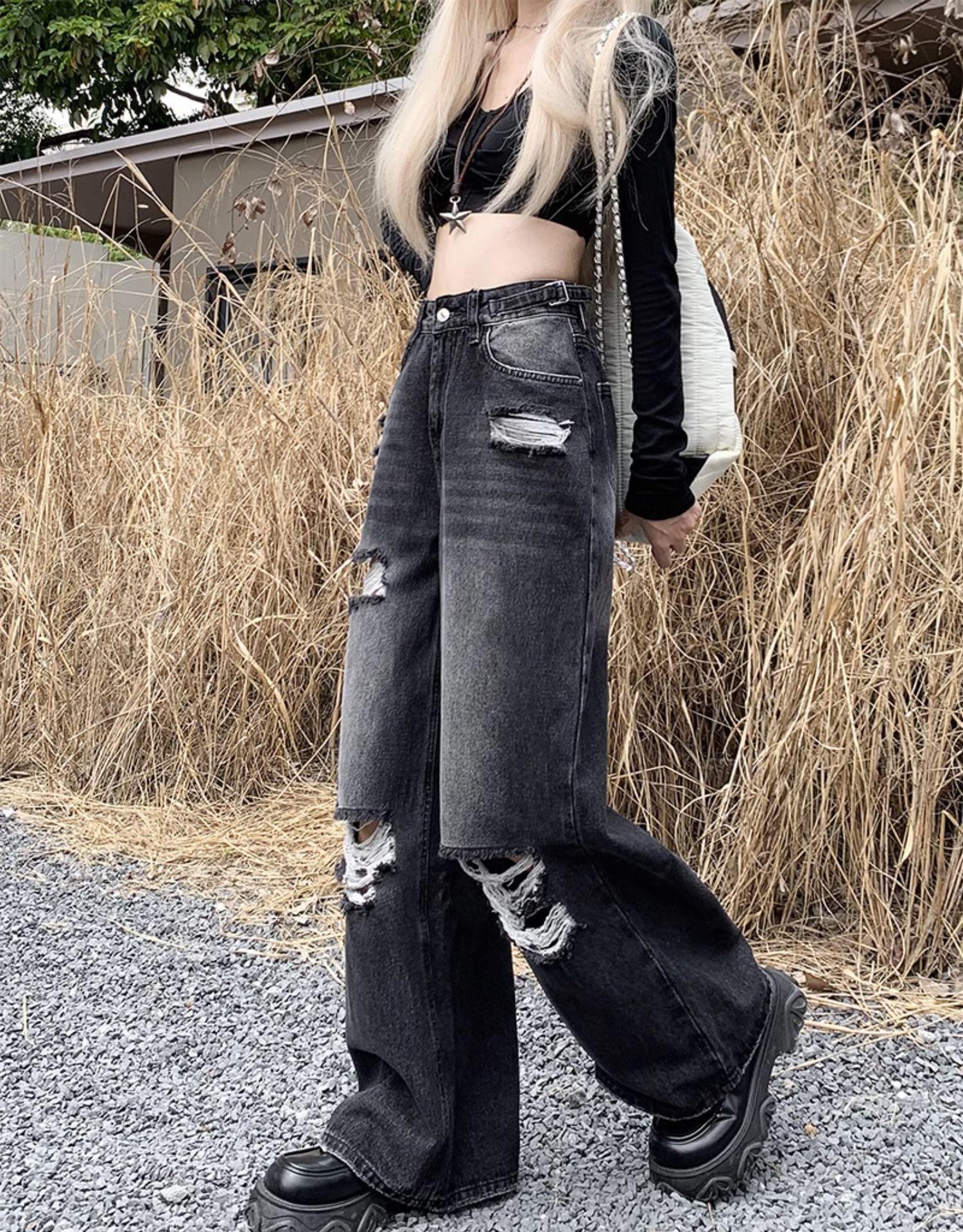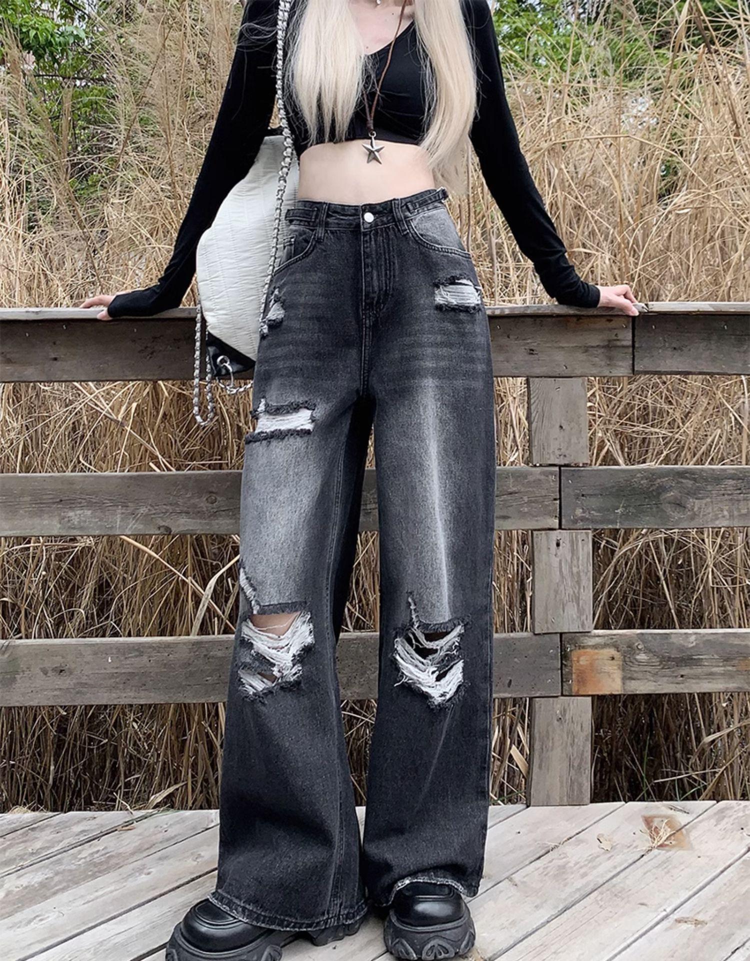 Talla Grande Figura en Forma de Pera Jeans Negros Rotos de Verano para Mujer Cintura Alta Rectos Sueltos Look Slim Pantalones Pierna Ancha
