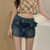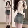Falda vaquera retro de estilo americano con cintura alta para mujer, fina, de corte A, para verano de 2024, para chica atractiva.