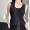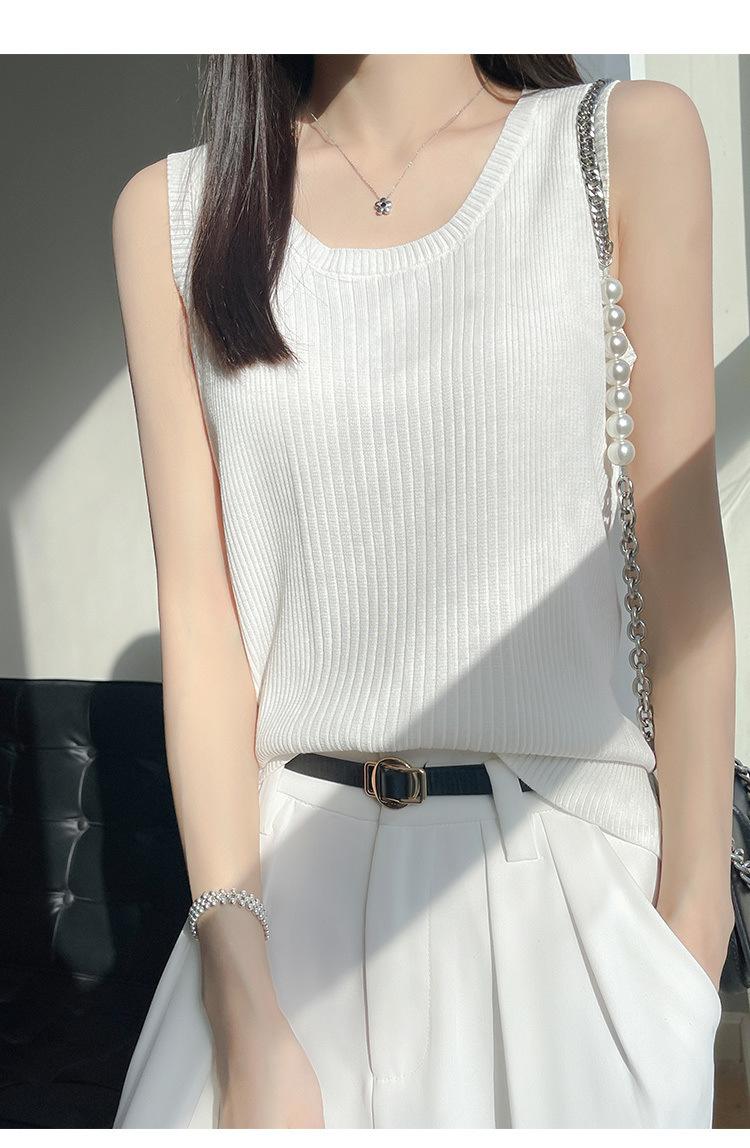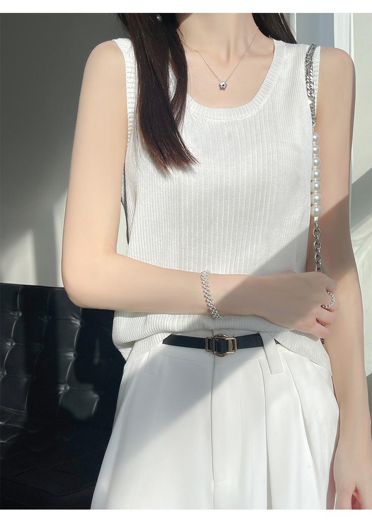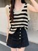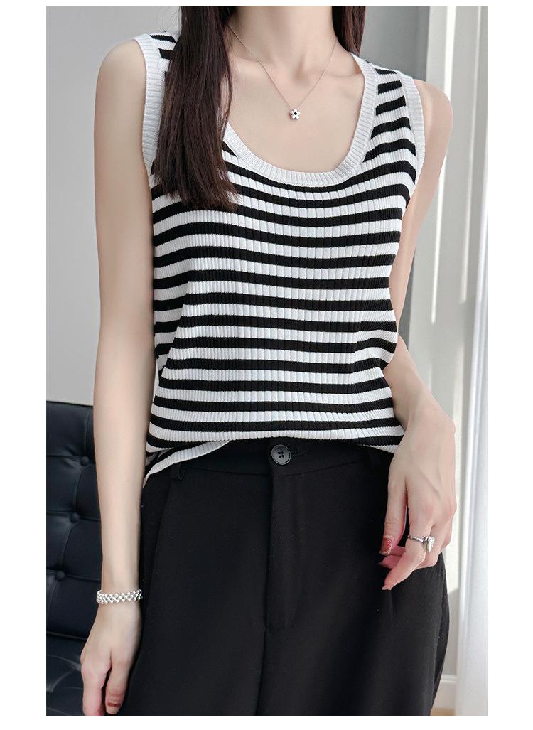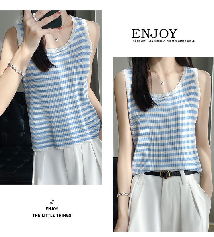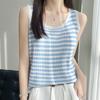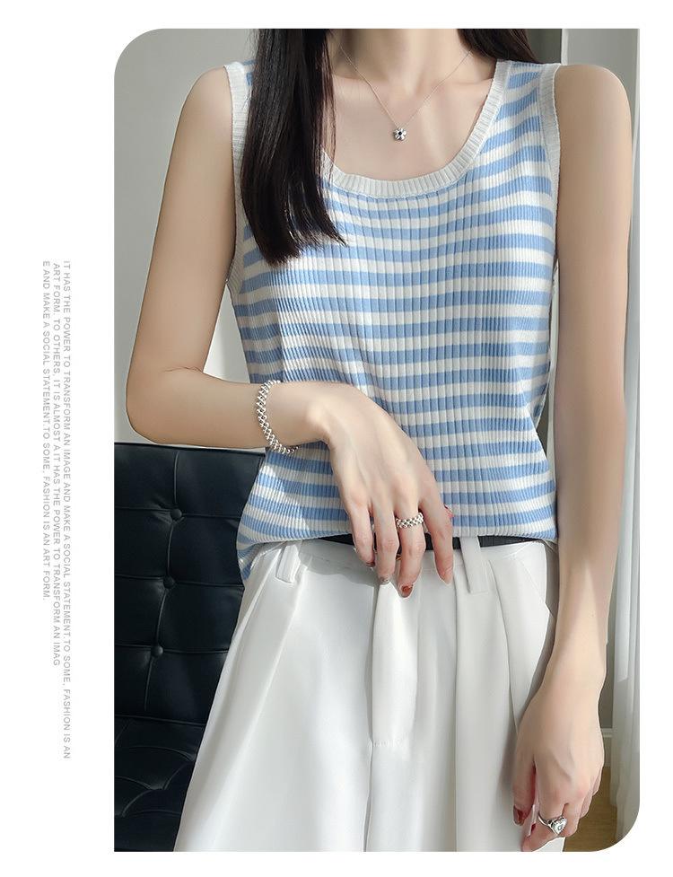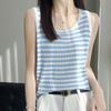 Camisola de punto a rayas europea para mujer, ropa interior de verano, estilo coreano, holgada, informal, de seda helada, sin mangas