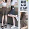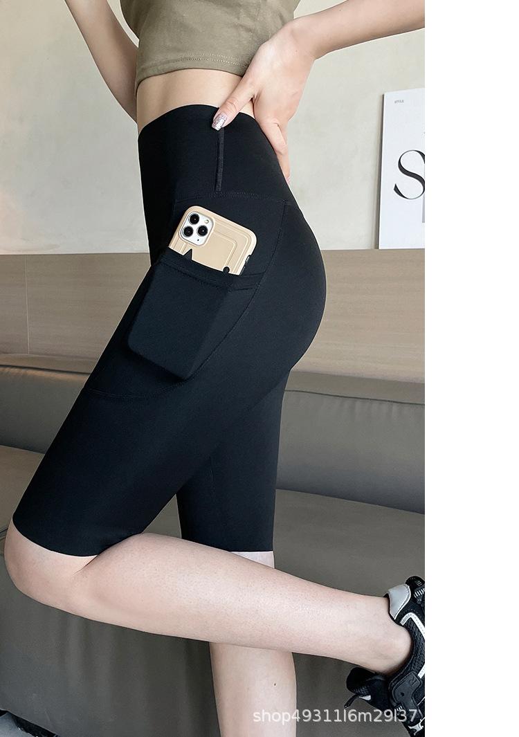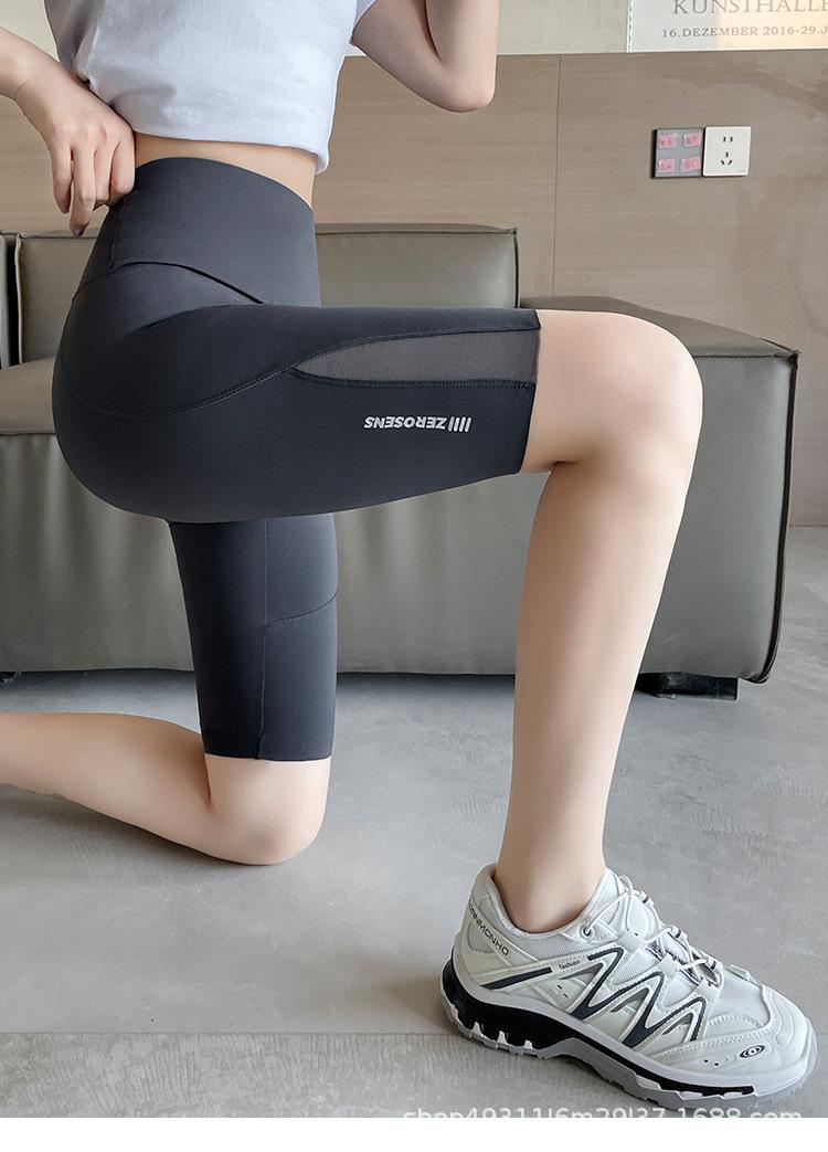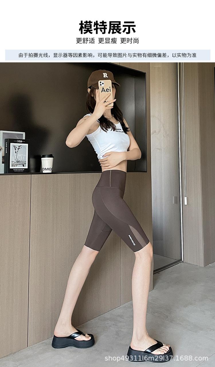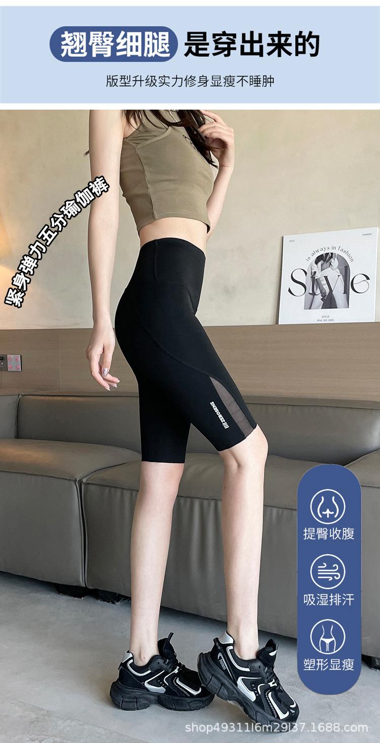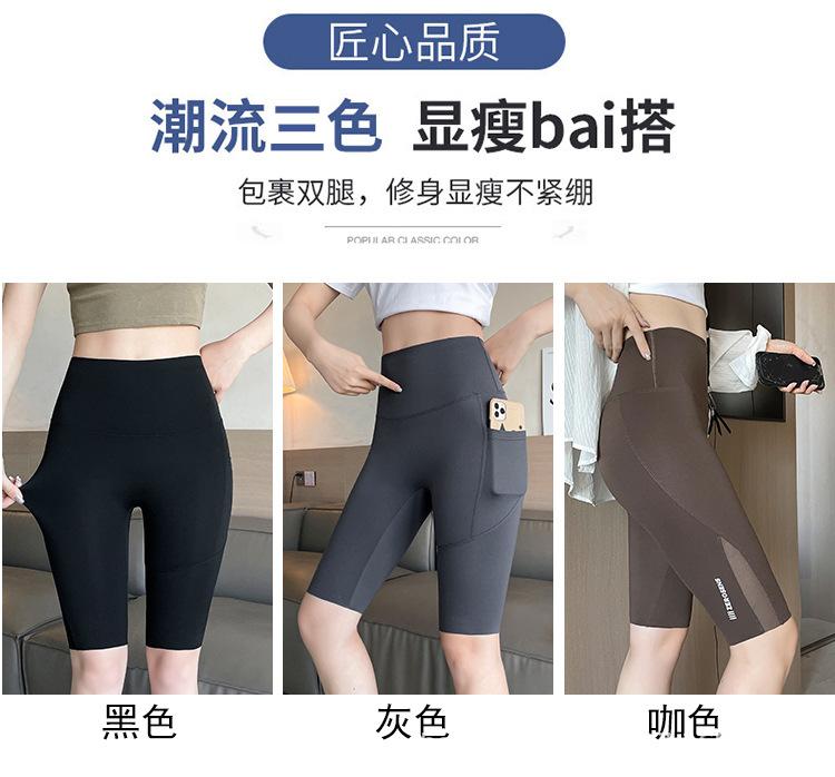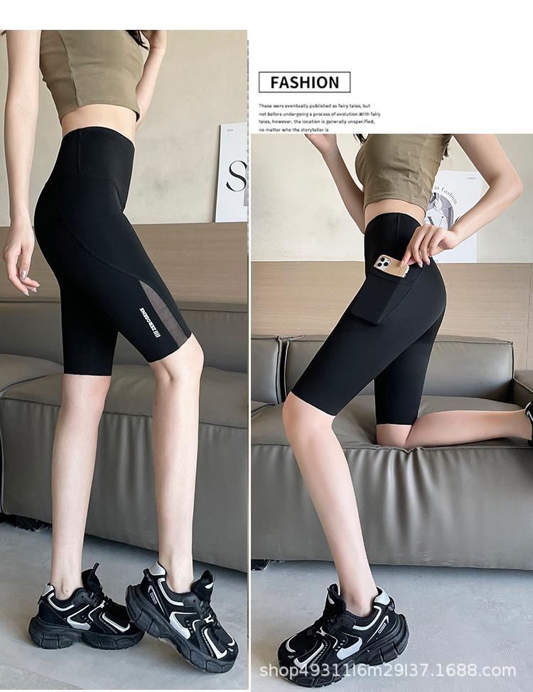 Pantalones de malla con bolsillo y medio tiburón para mujer, ropa exterior de verano, leggings finos que levantan la cadera, pantalones de yoga elásticos Barbie
