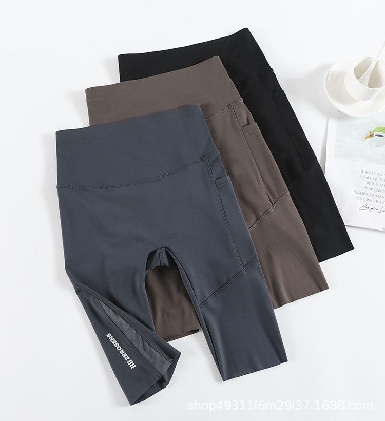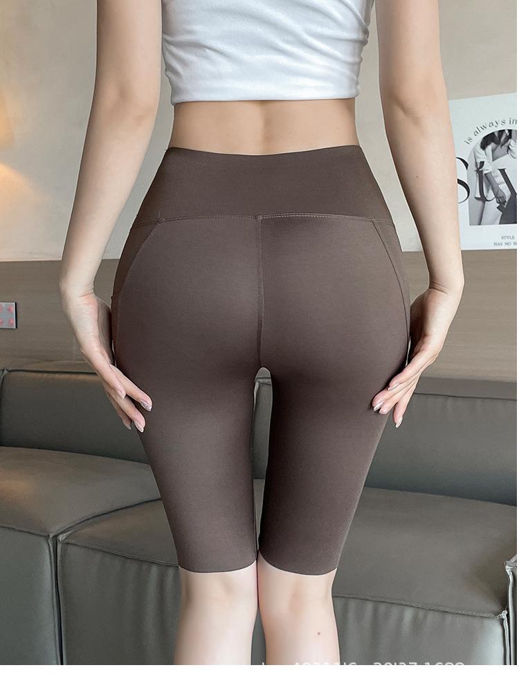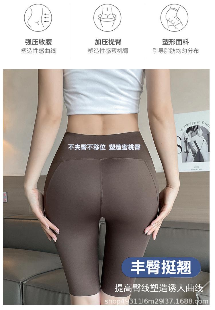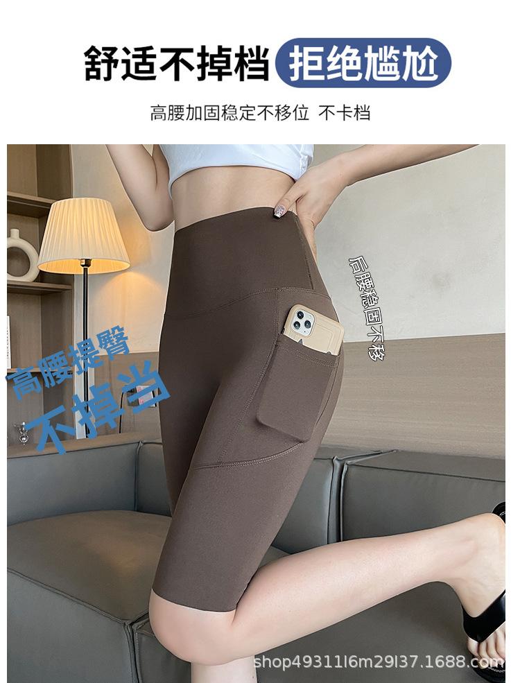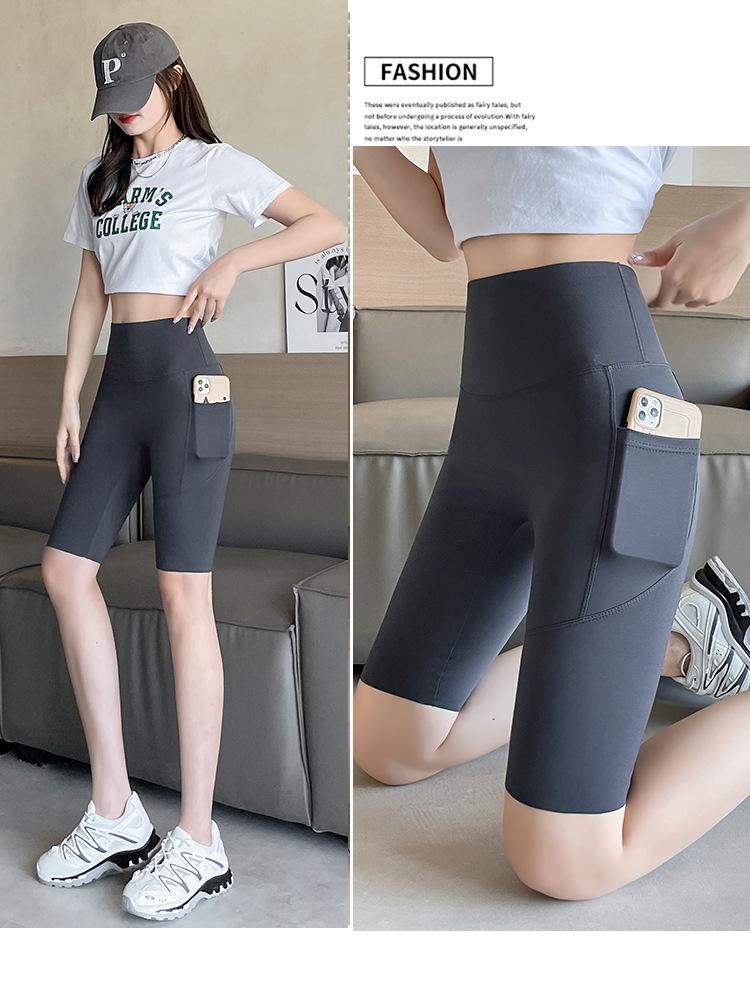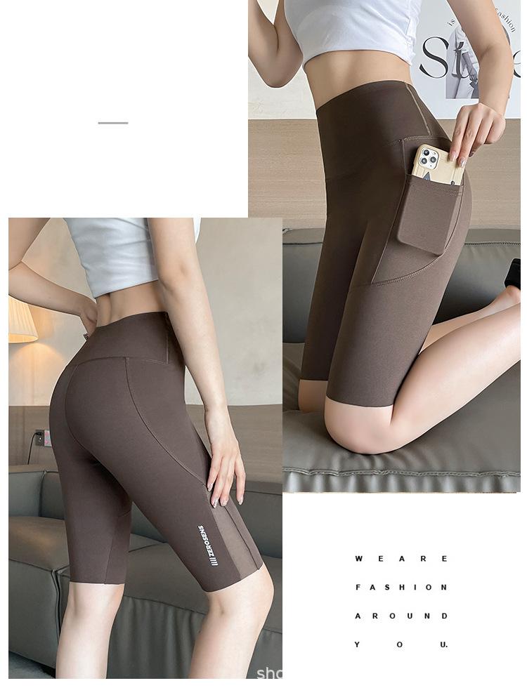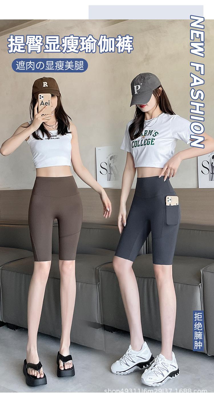 Pantalones de malla con bolsillo y medio tiburón para mujer, ropa exterior de verano, leggings finos que levantan la cadera, pantalones de yoga elásticos Barbie