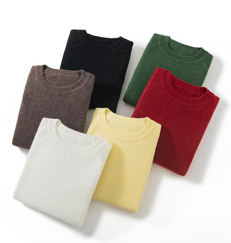 Tejido de Cachemira 100% Pura Gruesa Camiseta Básica de Cachemira para Mujer 2024 Nuevo Otoño e Invierno para Mujer Tejido de Punto de Cuello Redondo para Mujer